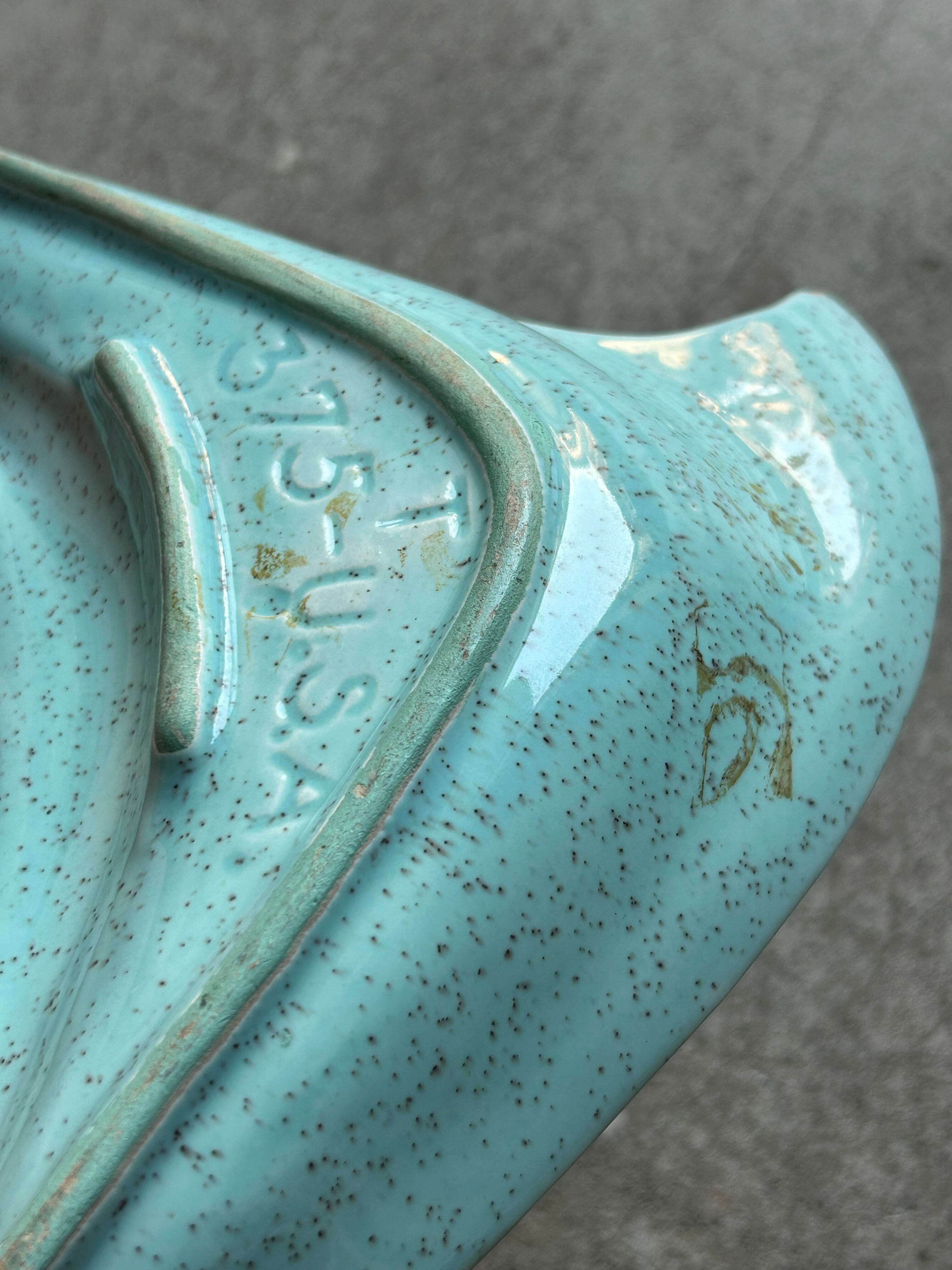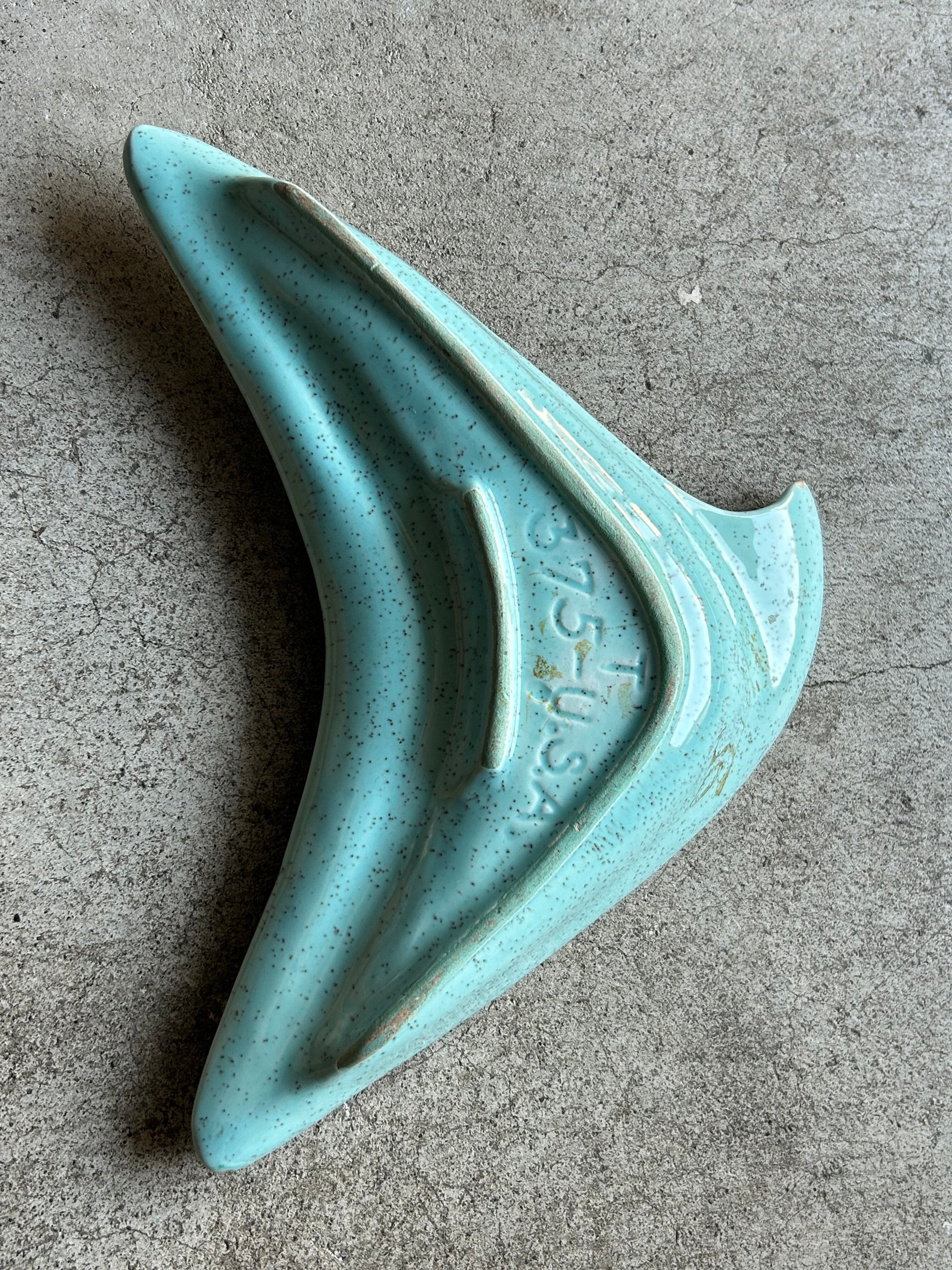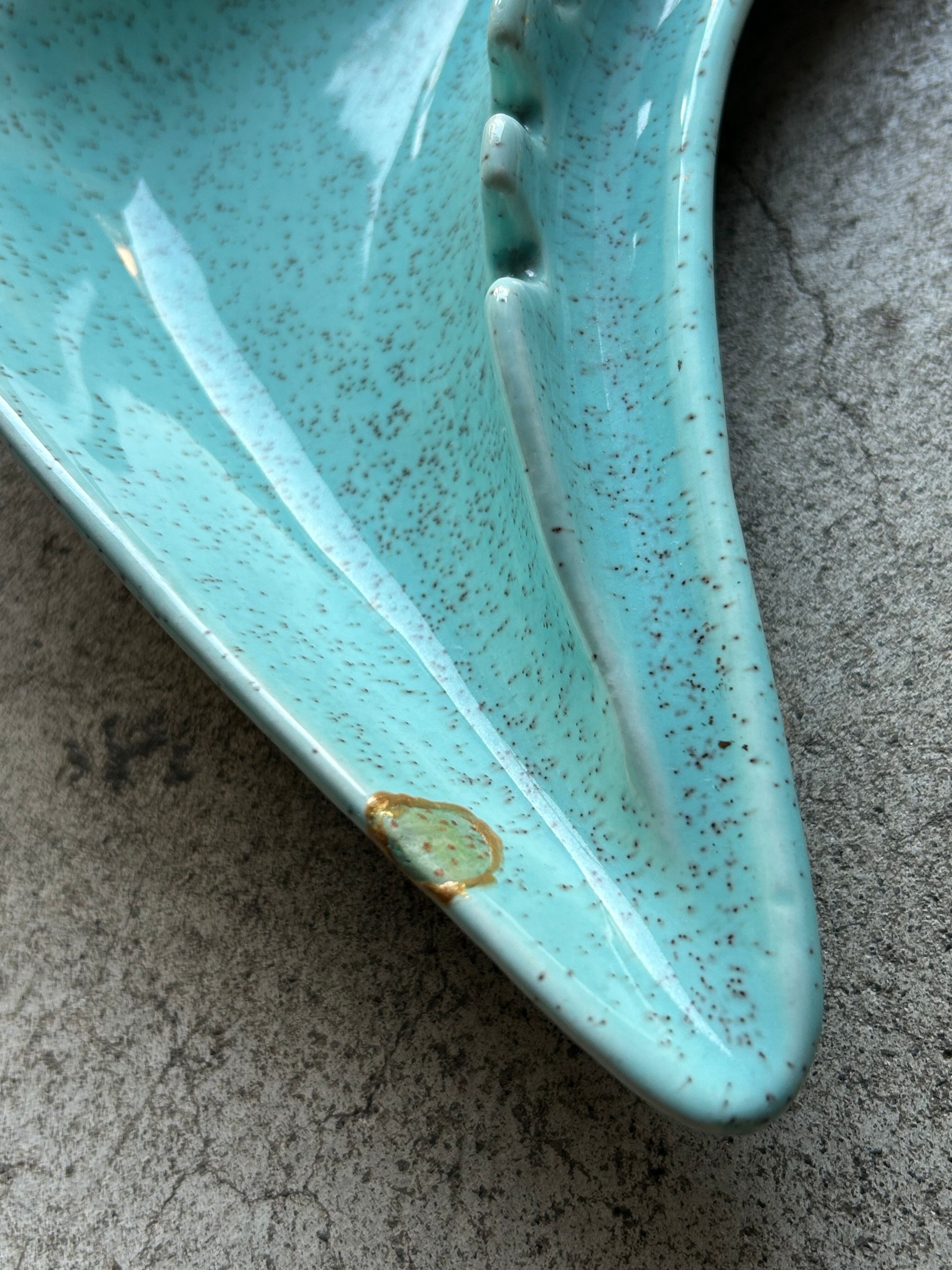 ターコイズブルーに細かなスプラッター模様、ブーメランのように伸びやかな曲線が特徴で、1950〜60年代らしいアトミックデザインの一品です。