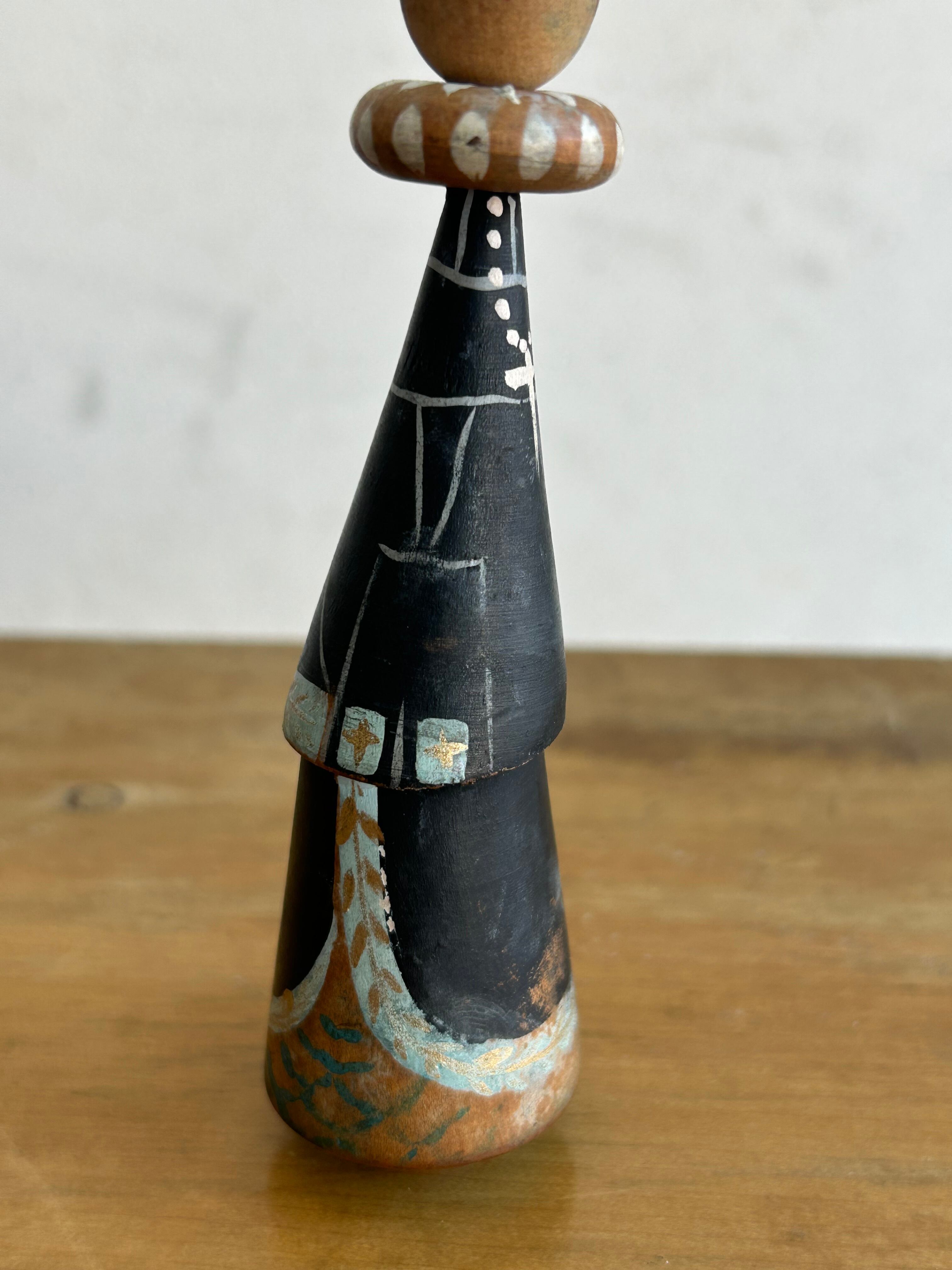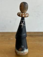 素朴な木肌に手描きの表情が映える、修道女モチーフの木製人形です。