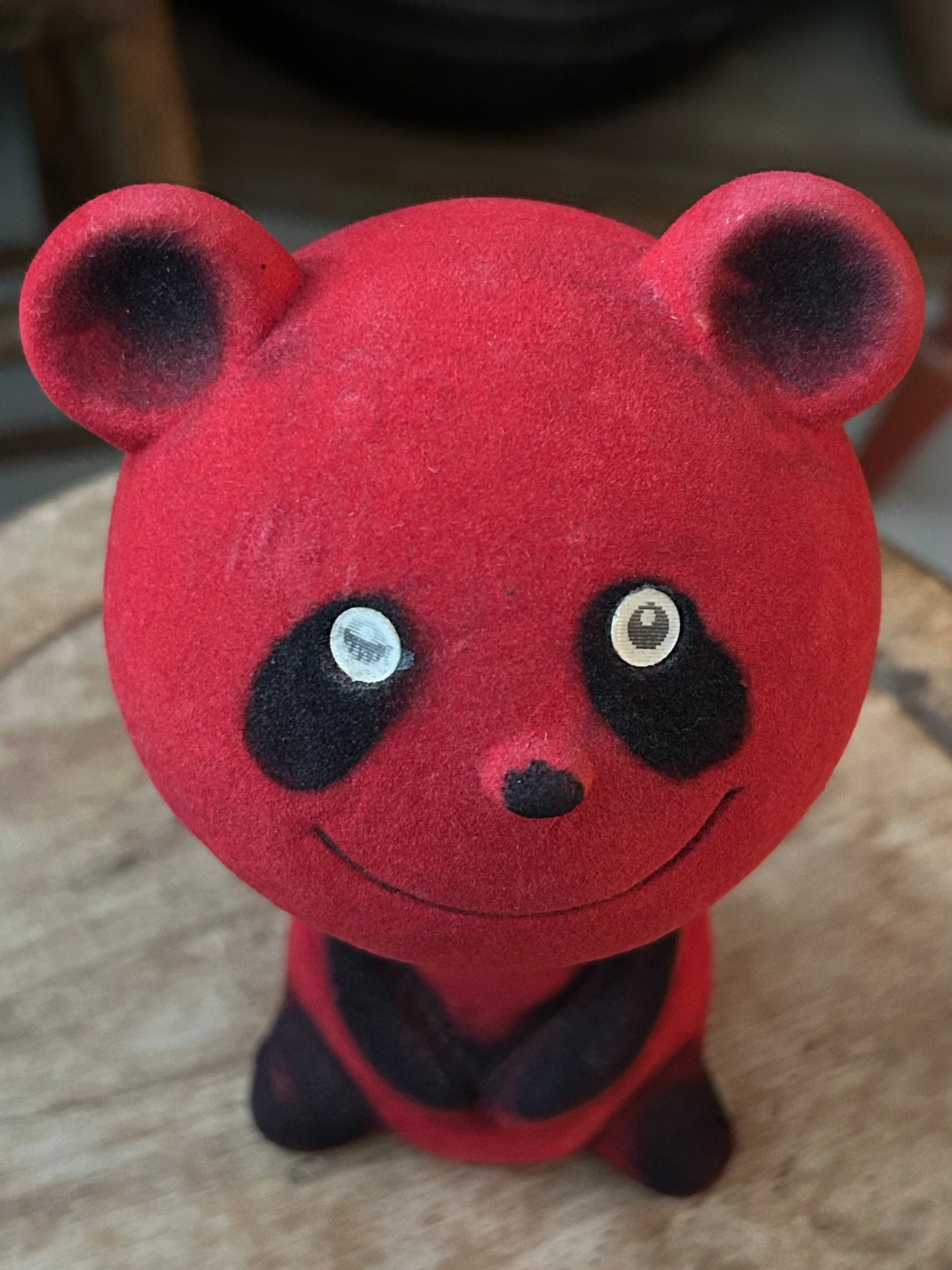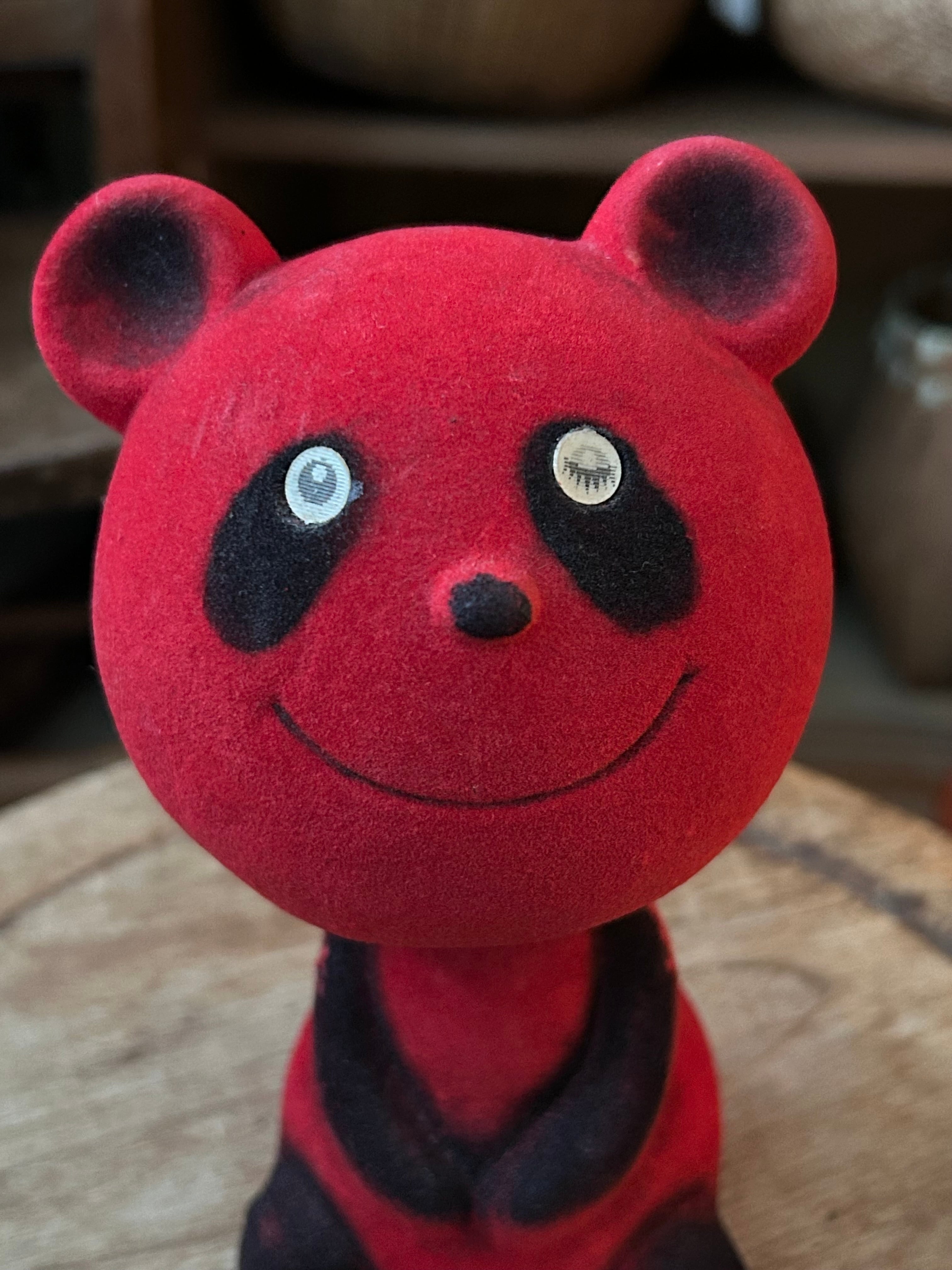 ちょこんと愛らしい、赤いパンダちゃんのフロッキー貯金箱です。