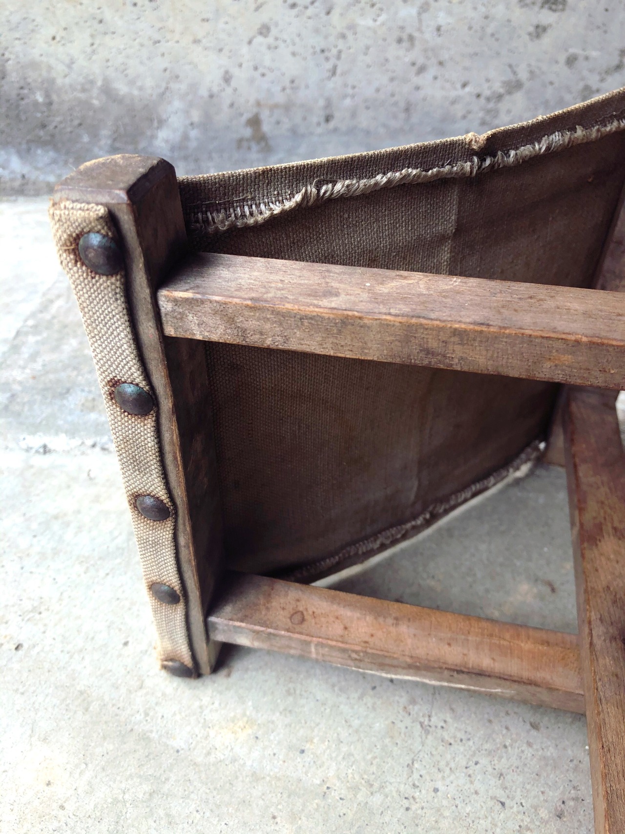 古いちいさな折りたたみ木製スツール 帆布 椅子 ミニチェア キャンバス地 飾り台 古道具 レトロ