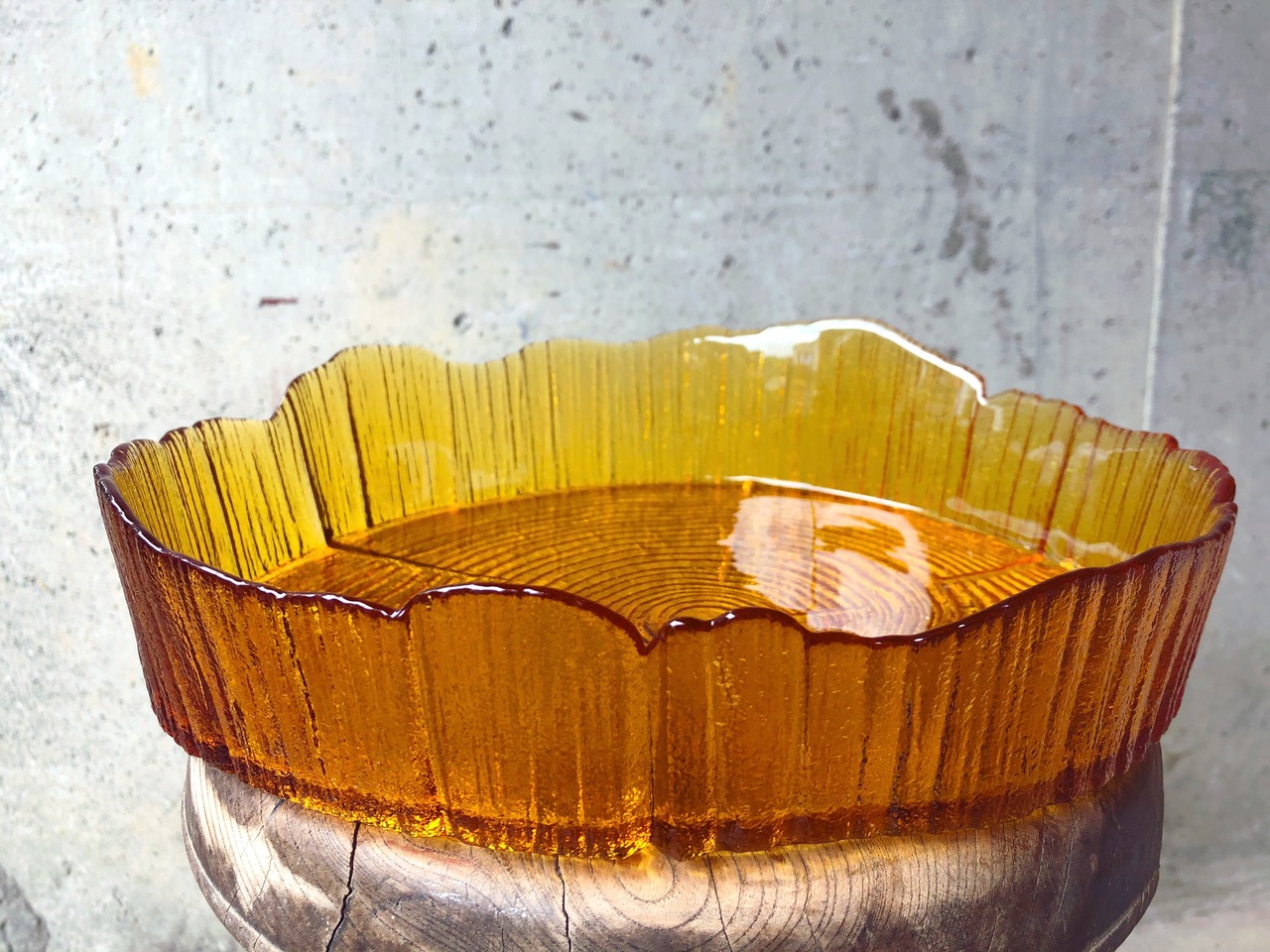昭和レトロ食器 硝子 大きな切り株の器 ガラス お皿 年輪模様