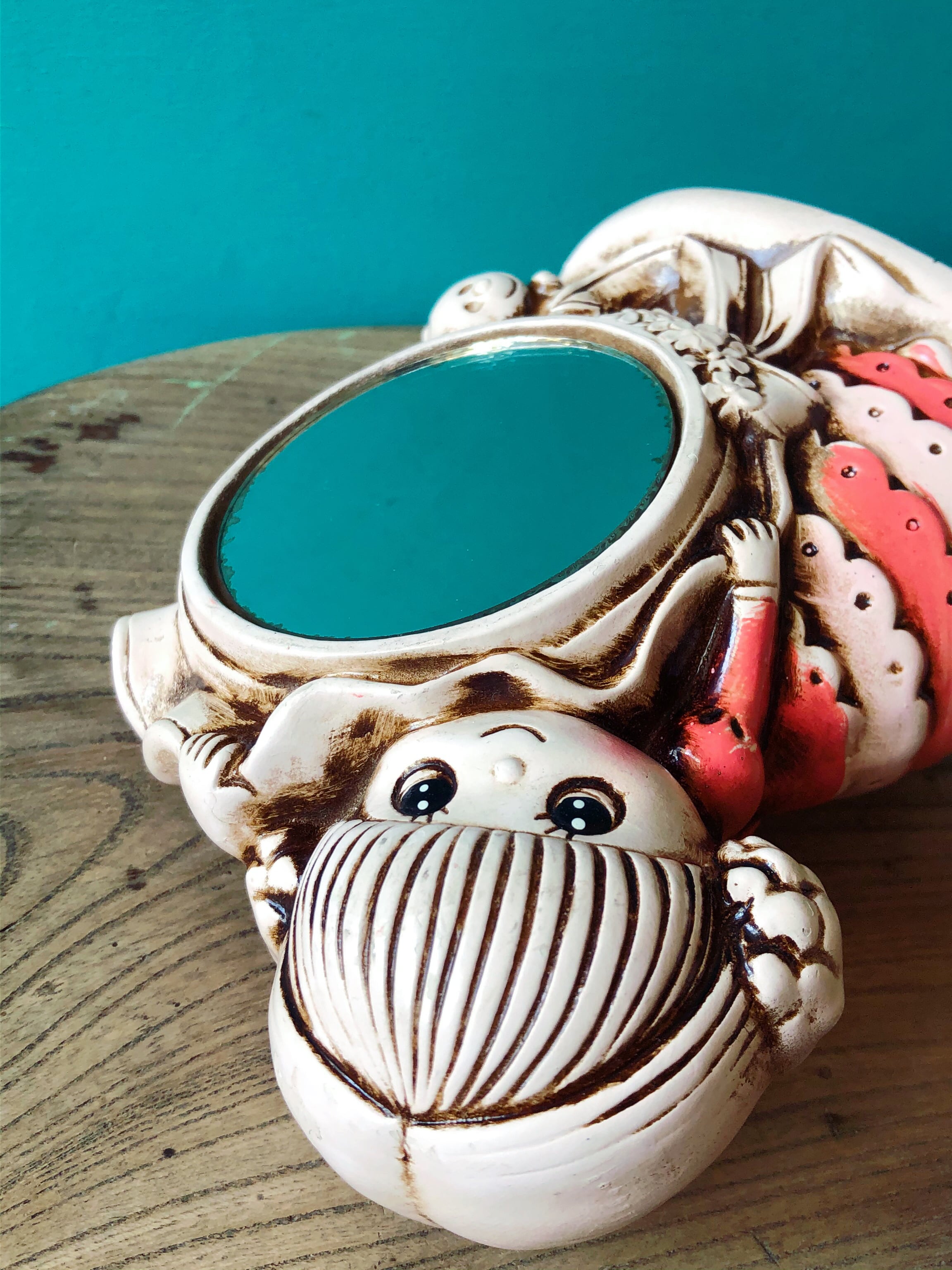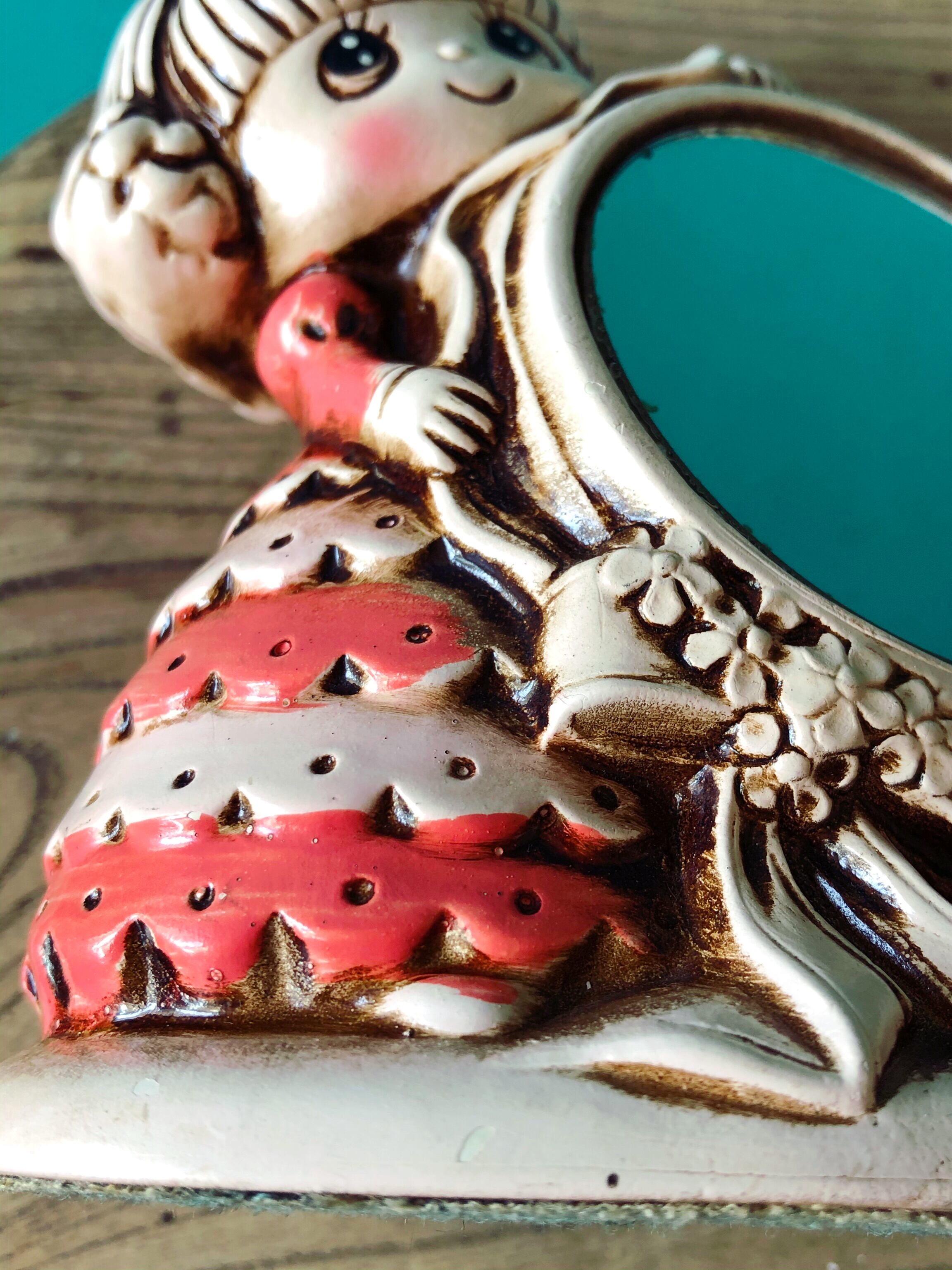 昭和レトロ 可愛い女の子の貯金箱 陶器製 鏡付き ARI 阿里 ヤングインテリア 置物 ファンシー