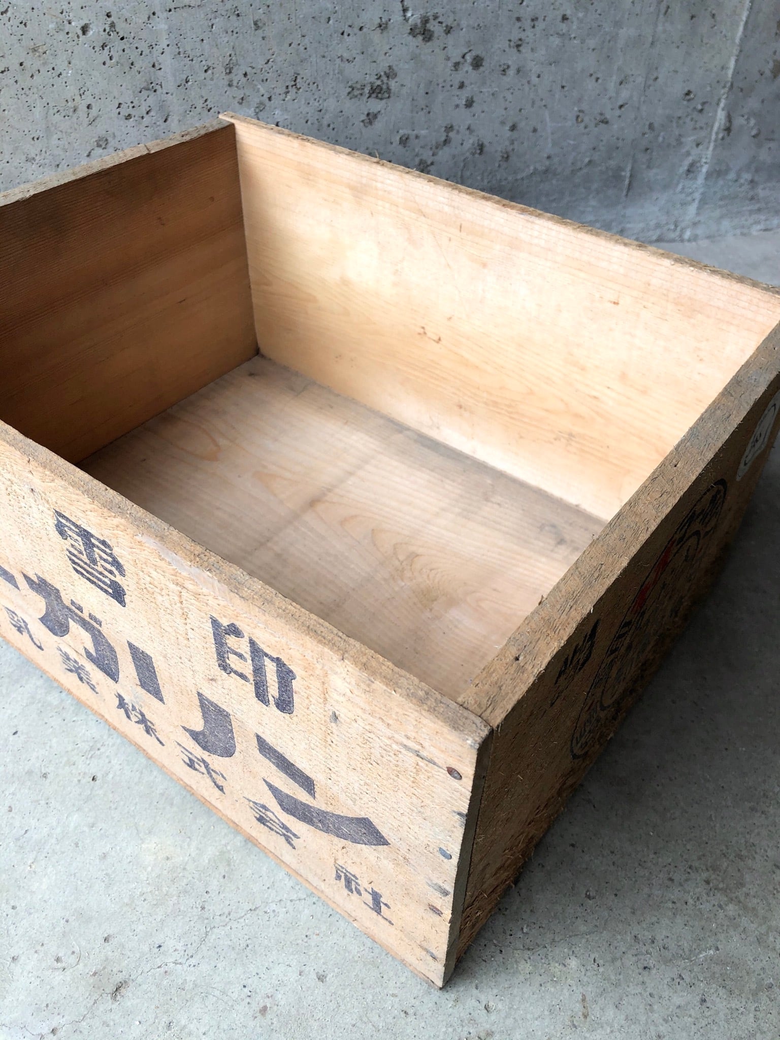古びた無塗装の木と、社名と商品名のロゴスタンプがなかなか良い感じ。