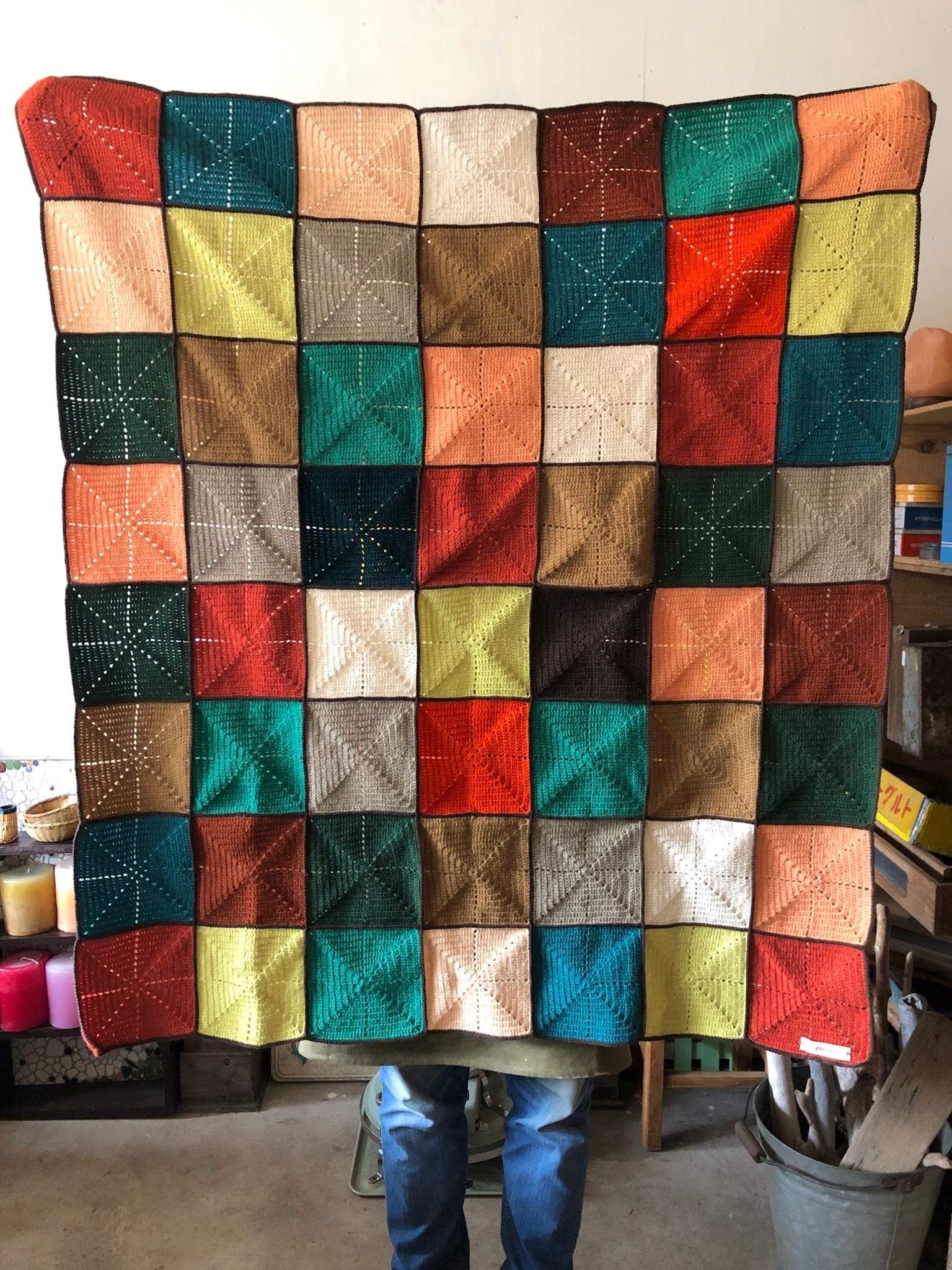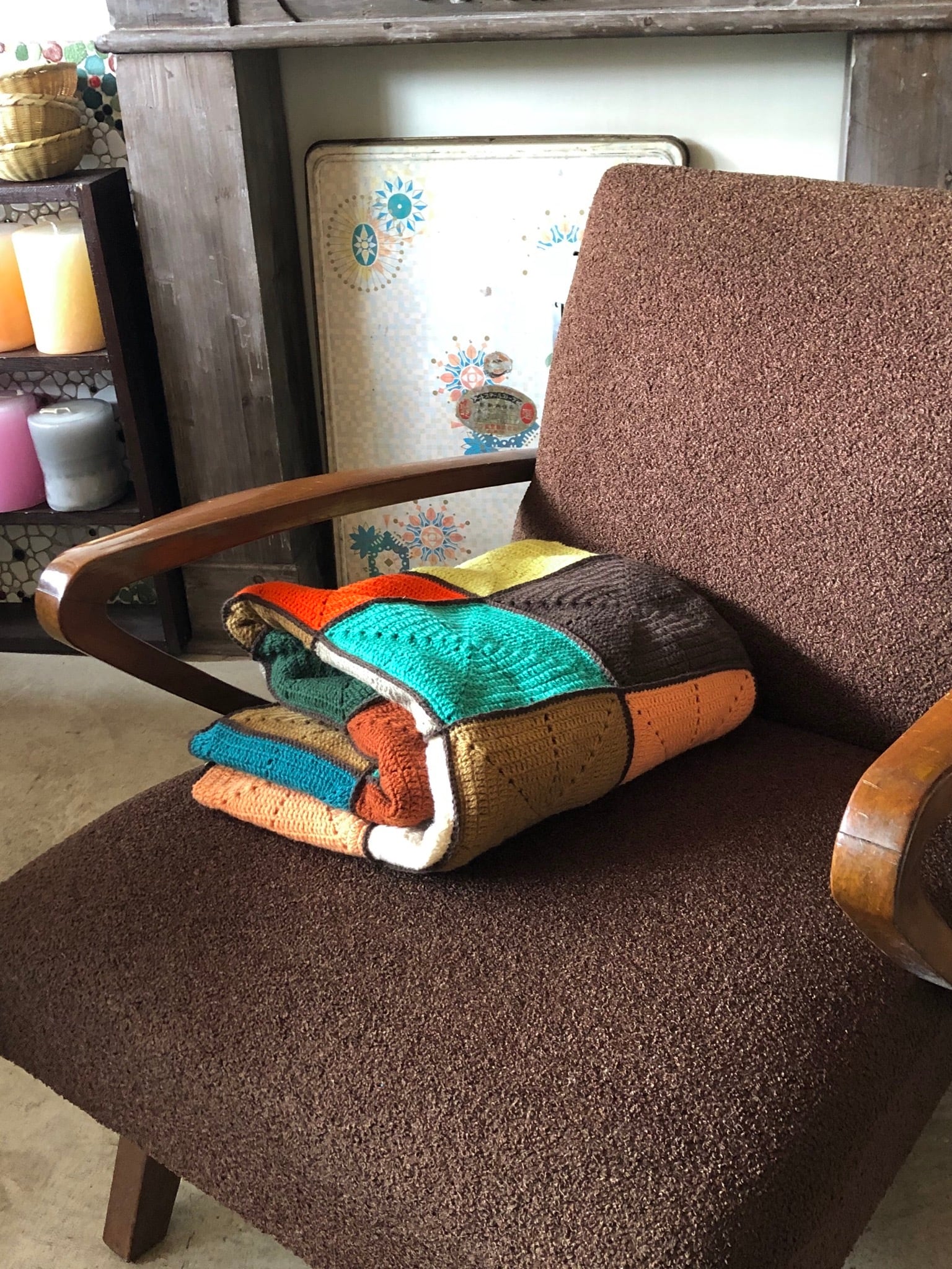 ハンドメイド 手編みのブランケット 秋色レトロ 編み物 ウール100% 毛布