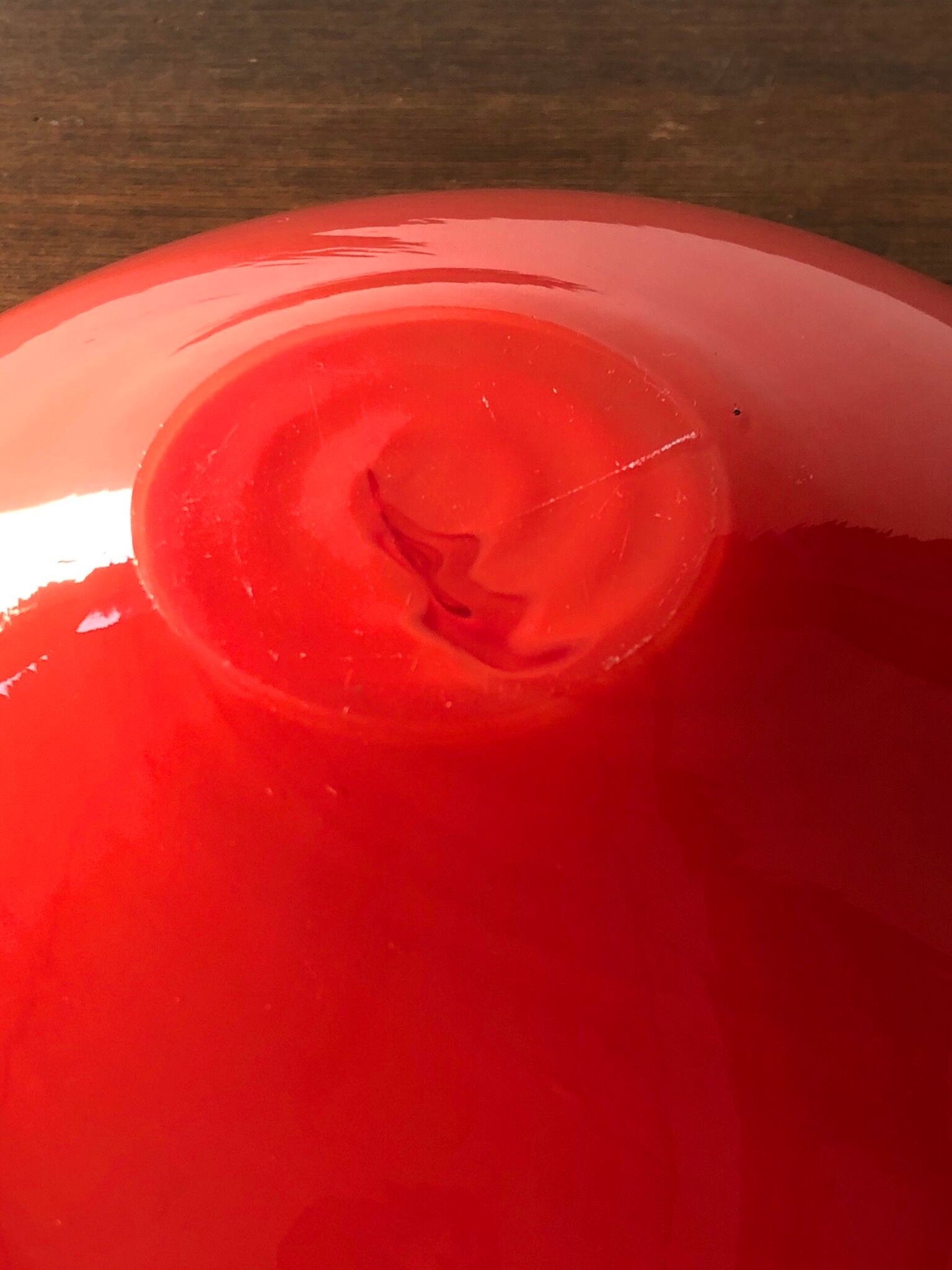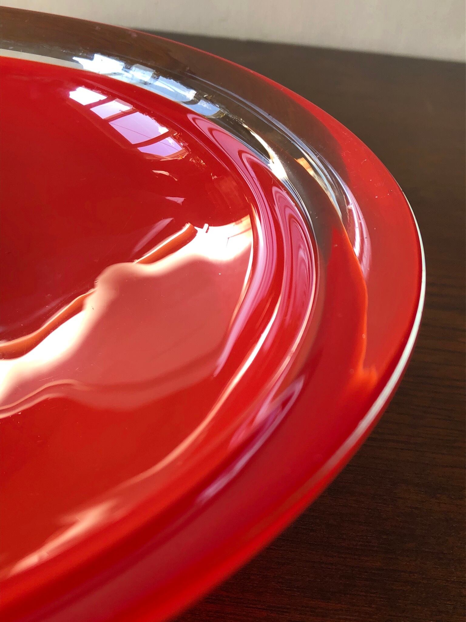 昭和レトロポップ 硝子のお皿 大皿 クラフトガラス 気泡 朱色 小物入れ インテリア