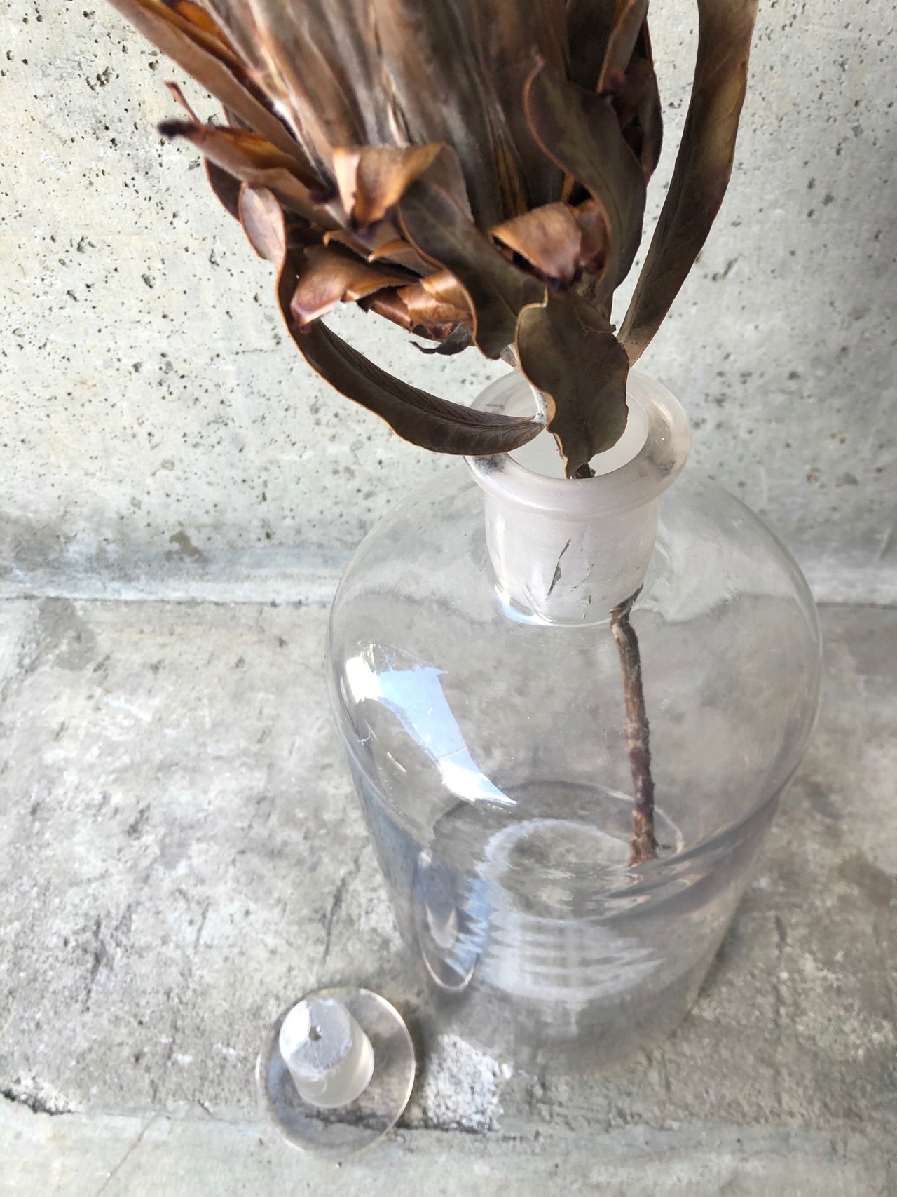 古い硝子瓶 蓋付き 気泡入りガラス 医療系 薬瓶 実験瓶 古道具 昭和レトロ インテリア 花入れ
