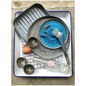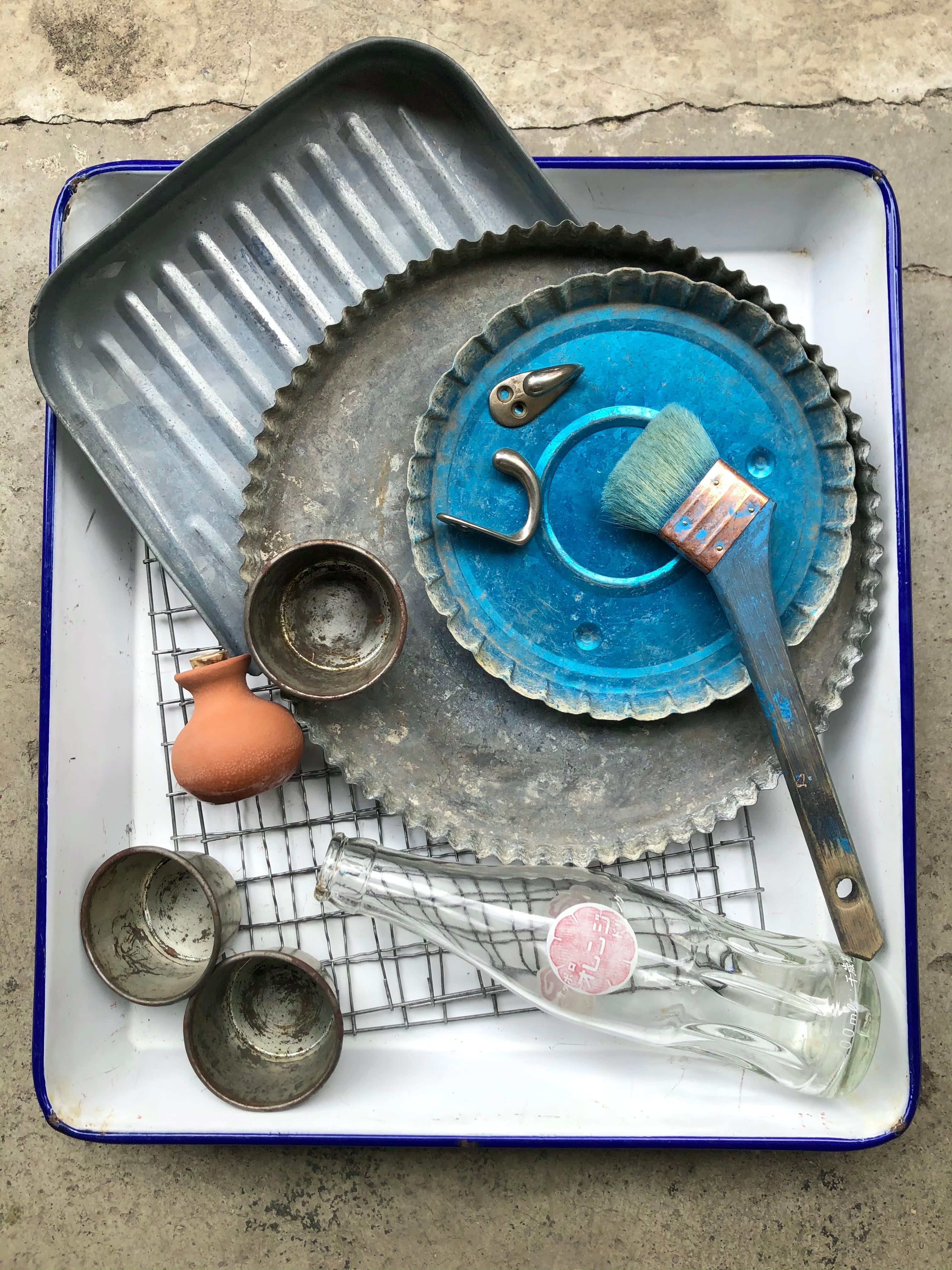 ホーロートレイとがらくたセット① 琺瑯 錆びれたもの ブロカント インダストリアル 昭和レトロ パーツ 古道具