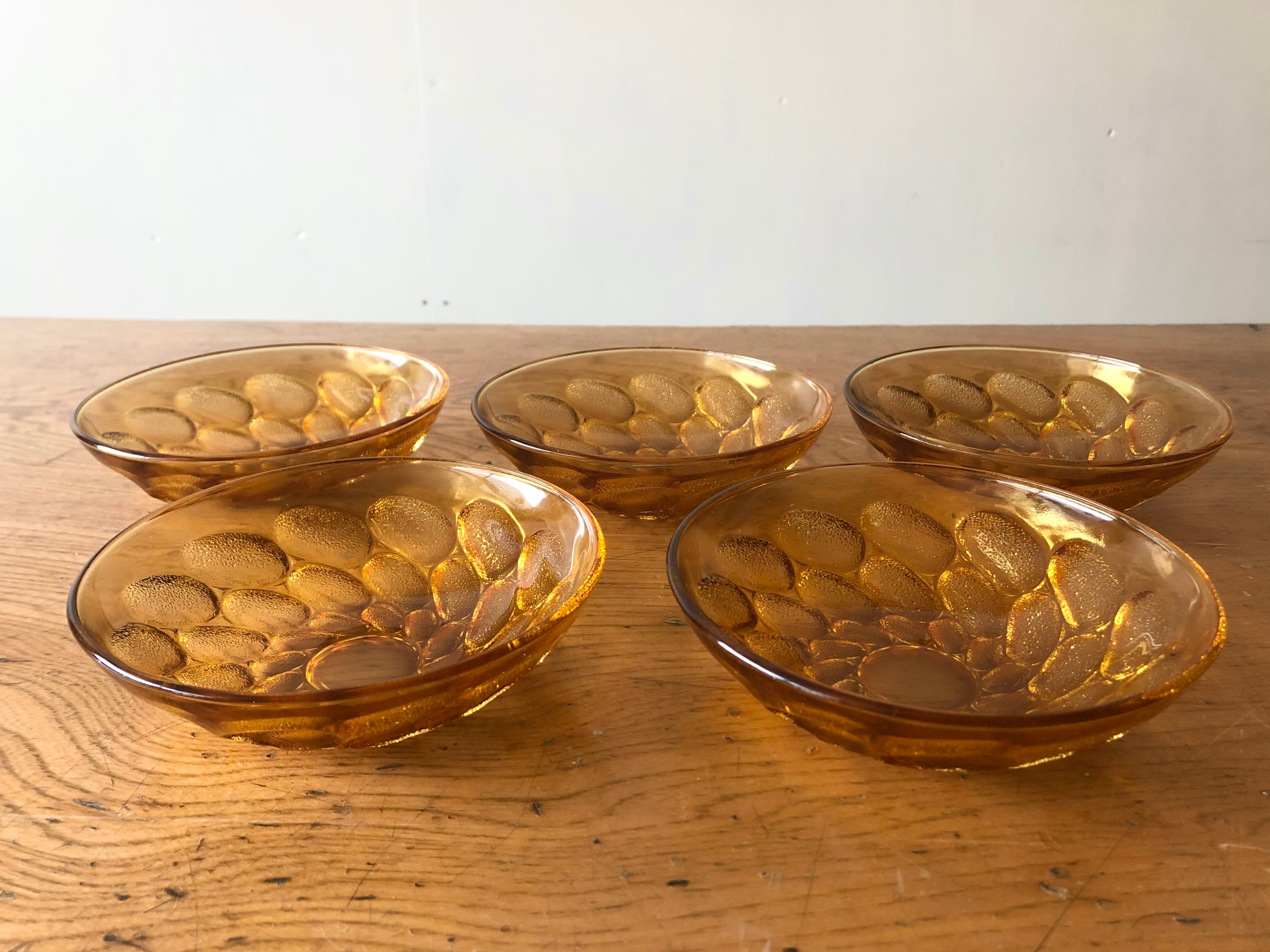 昭和レトロ アンバー ガラス皿 琥珀色 硝子小皿 5枚セット 食器 古道具 当時物 レトロモダン SOGA
