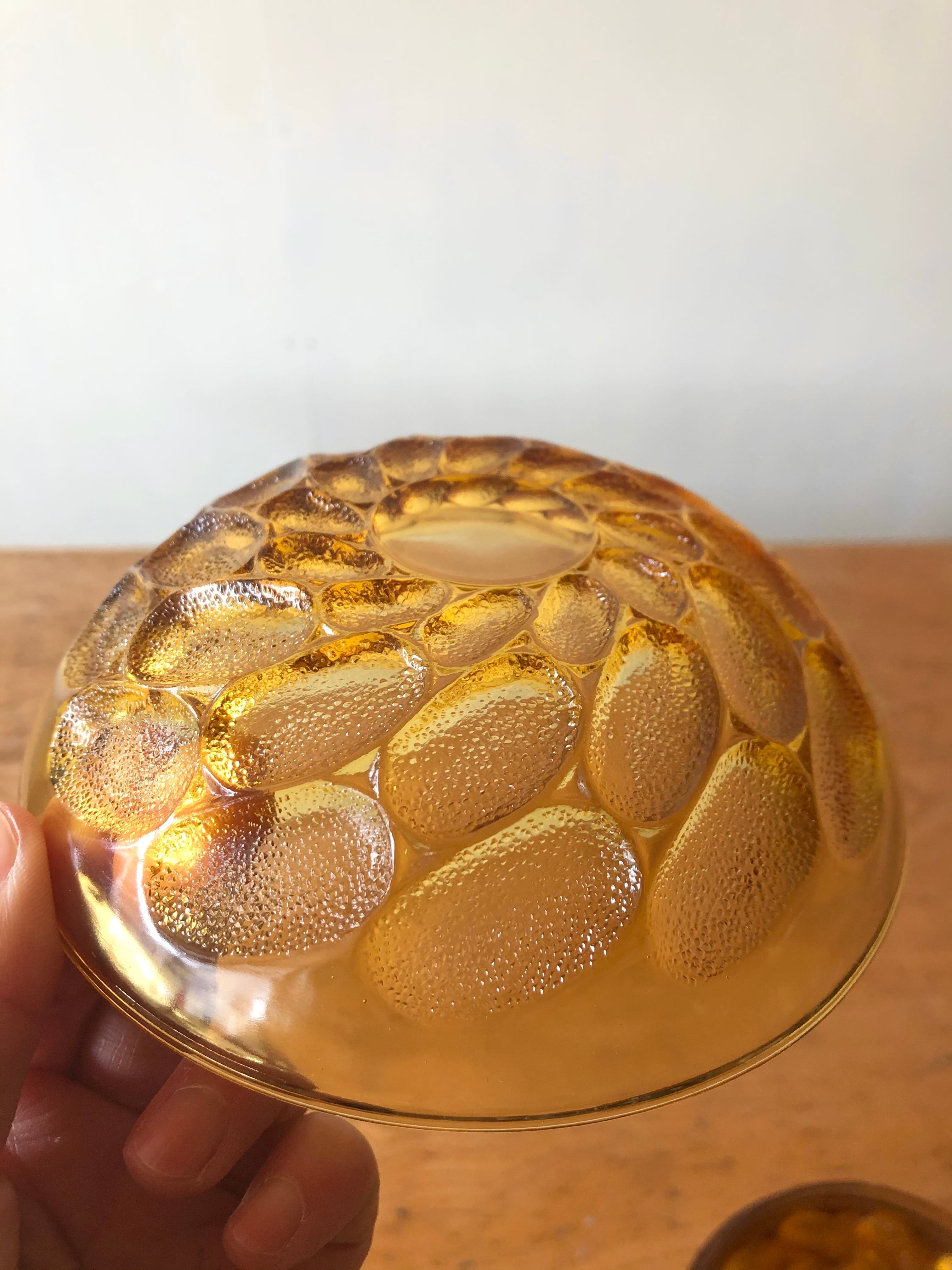 美しい琥珀色と、温かみあるレトロな模様の小皿5枚セット。