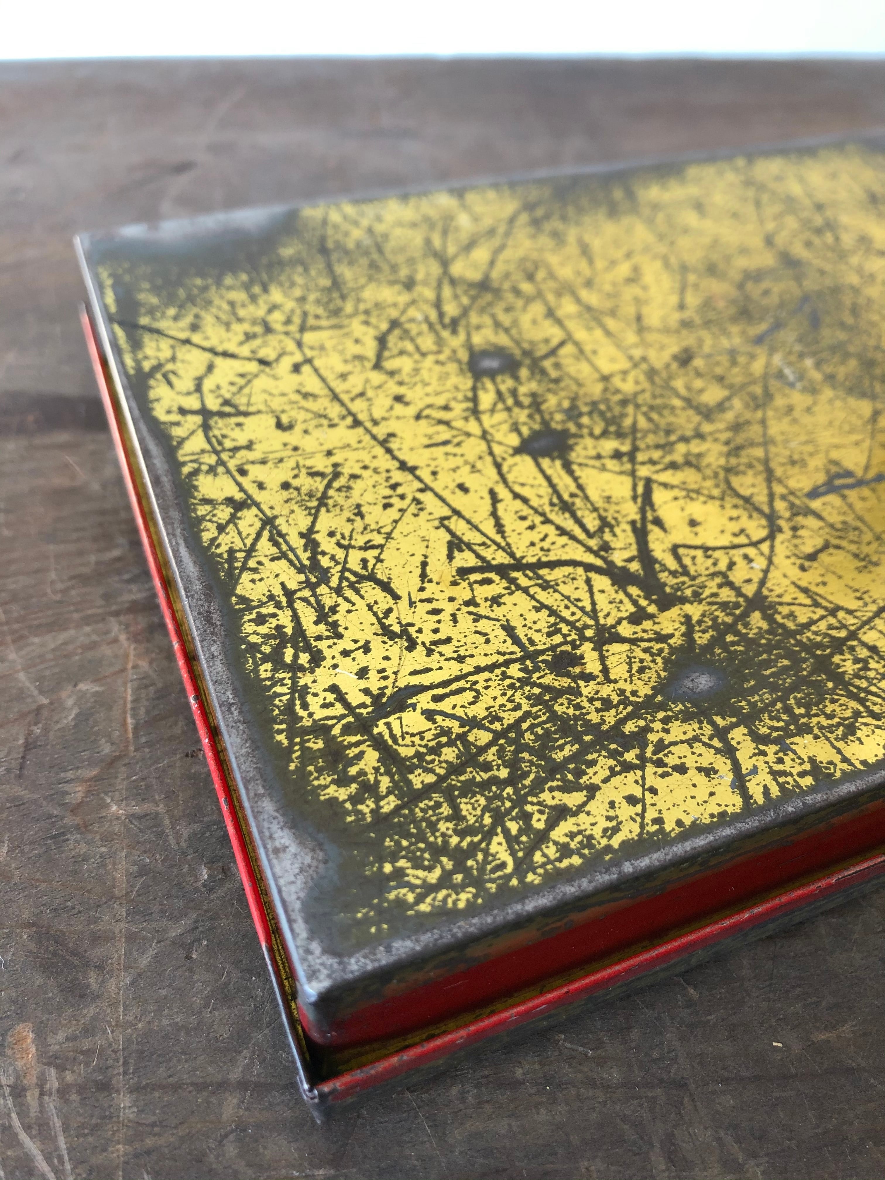 ブリキのケースは全体的に汚れや傷、錆、歪み、文字書き、経年感ございます。
