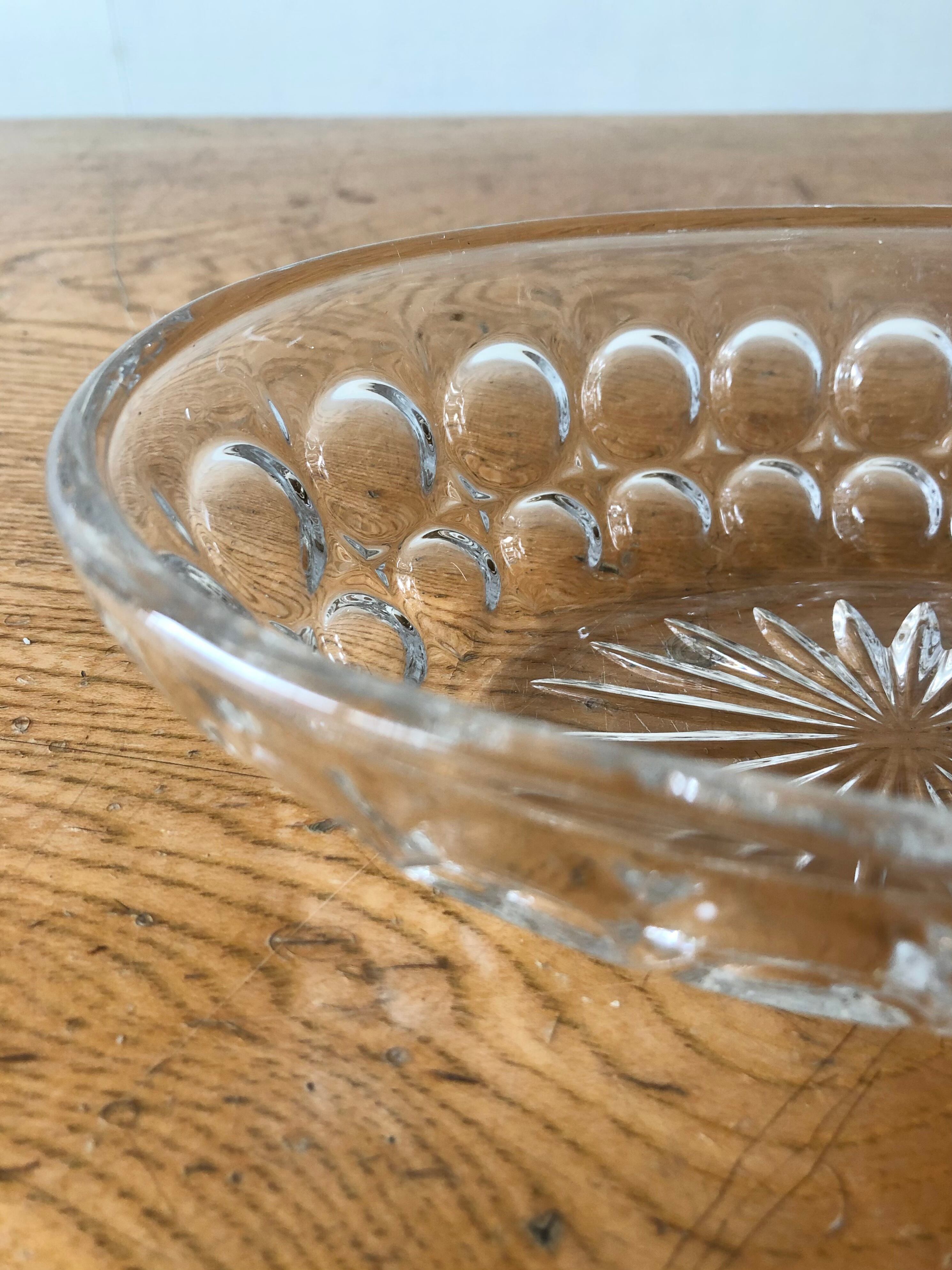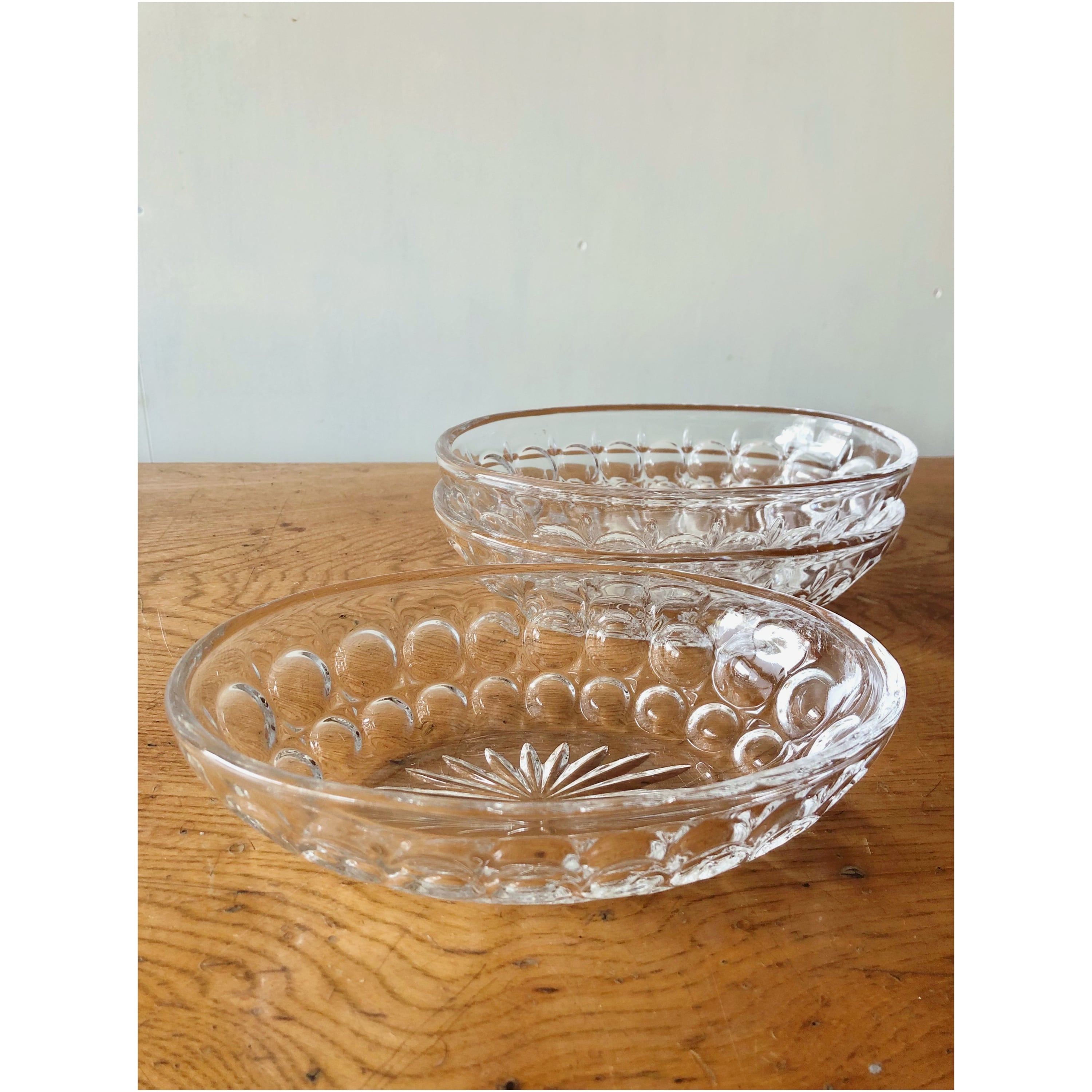 昭和レトロ クリア ガラス皿 硝子 オーバルプレート ボウル 楕円形 3枚セット 食器 古道具 当時物