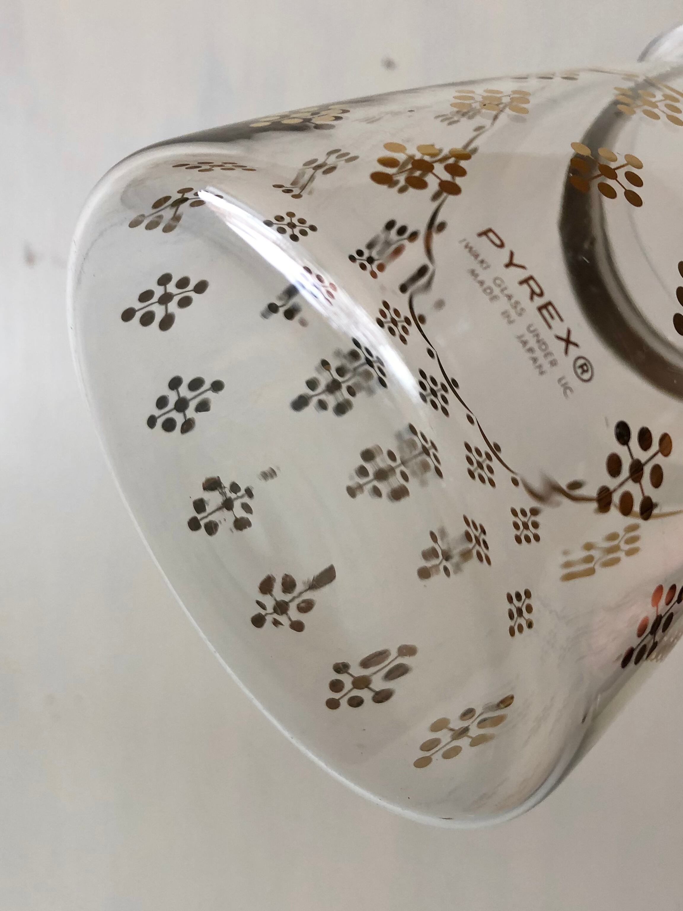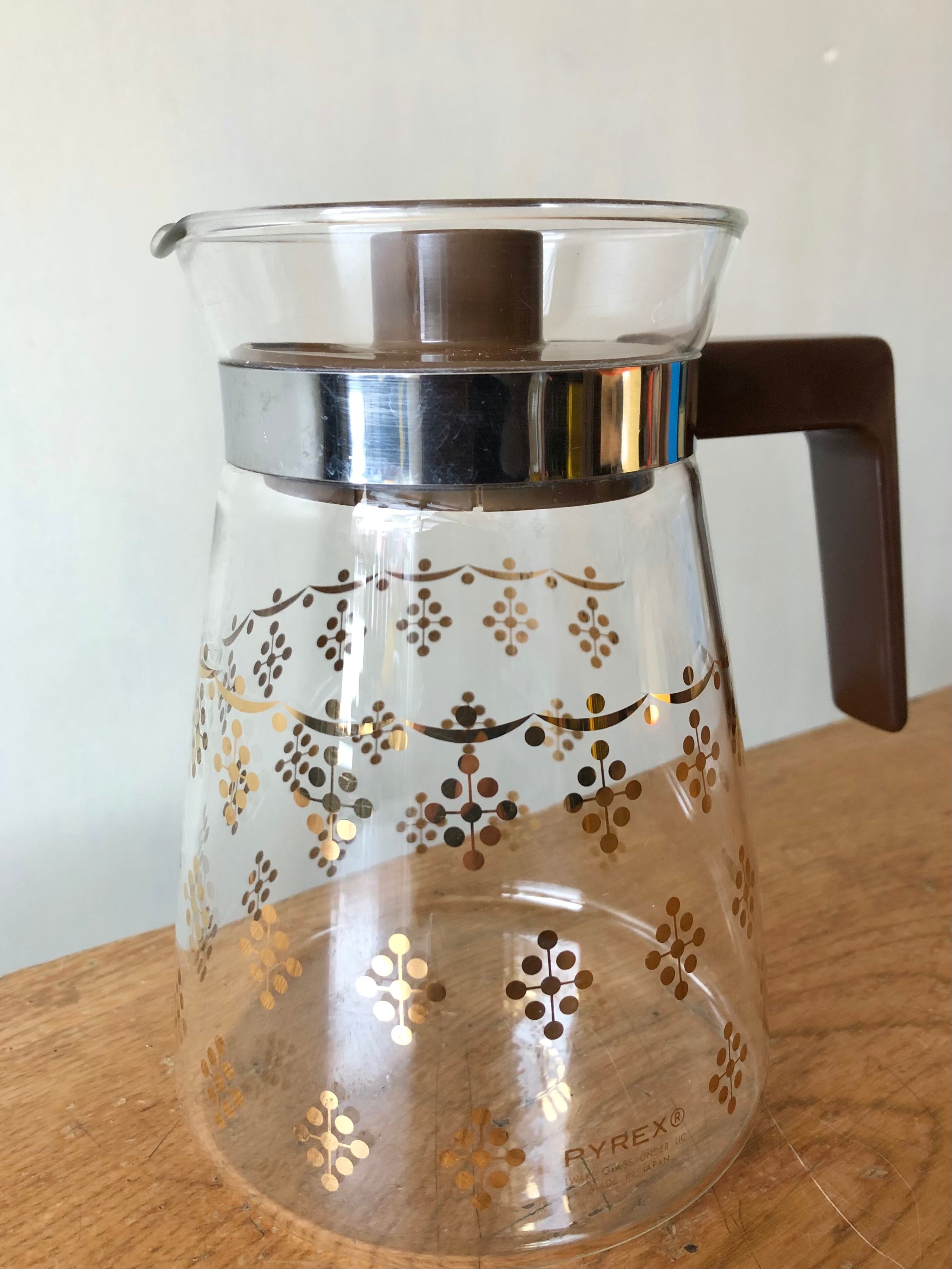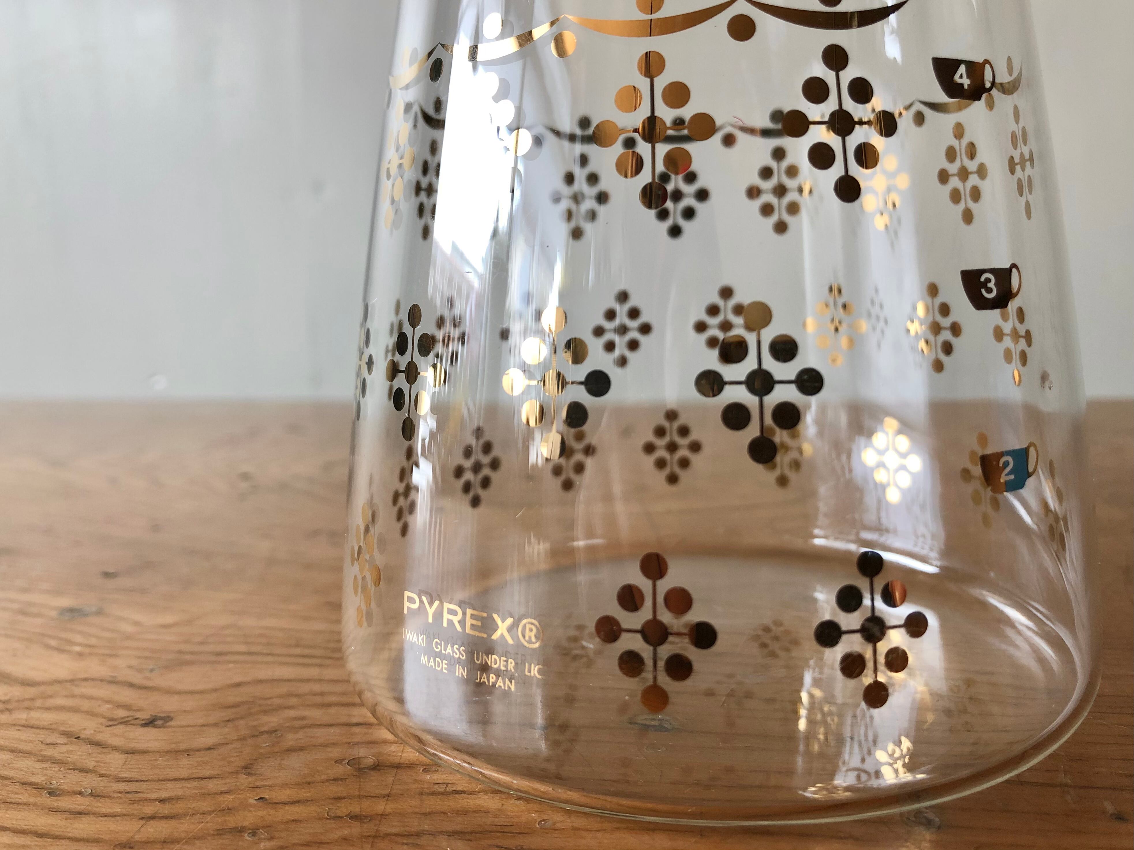 レトロ模様のPYREX耐熱ガラスポット。