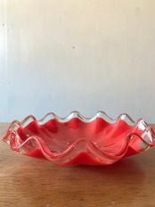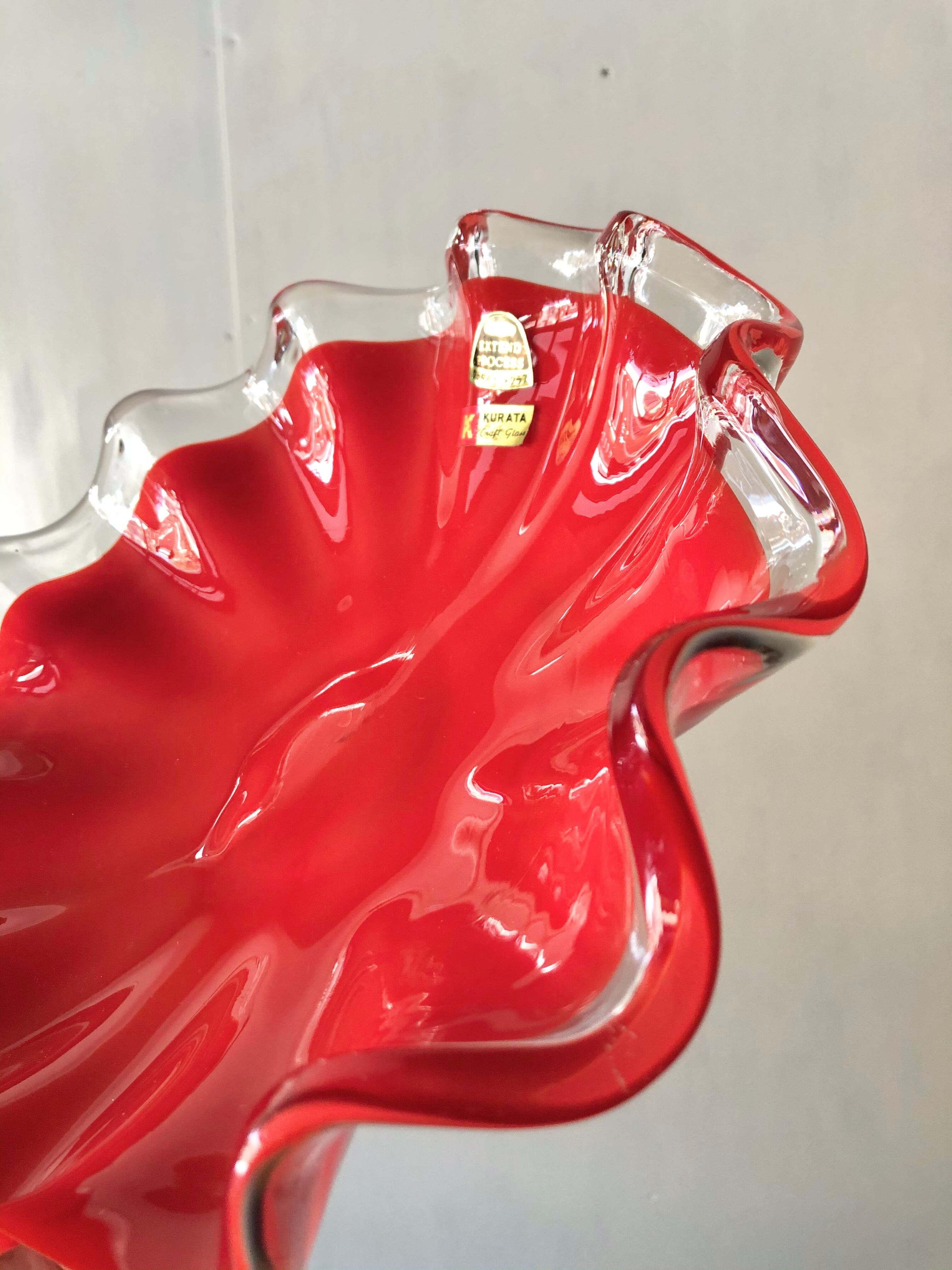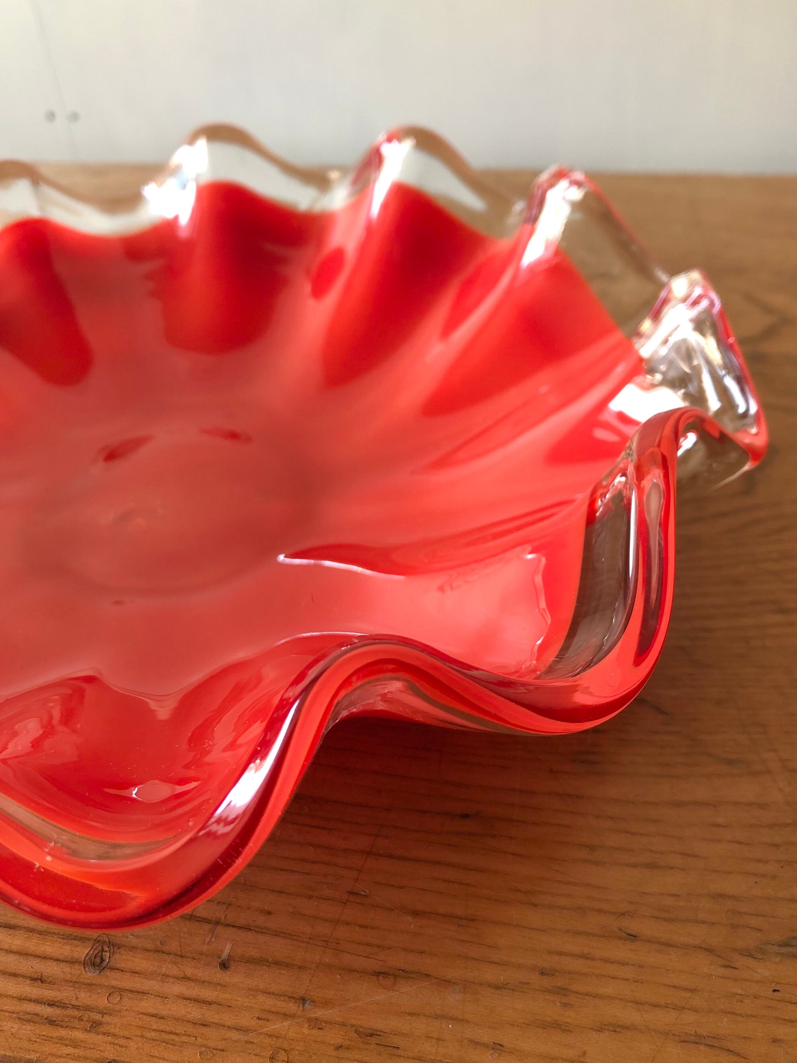 鮮やかな朱色と美しいフォルムの硝子プレート。