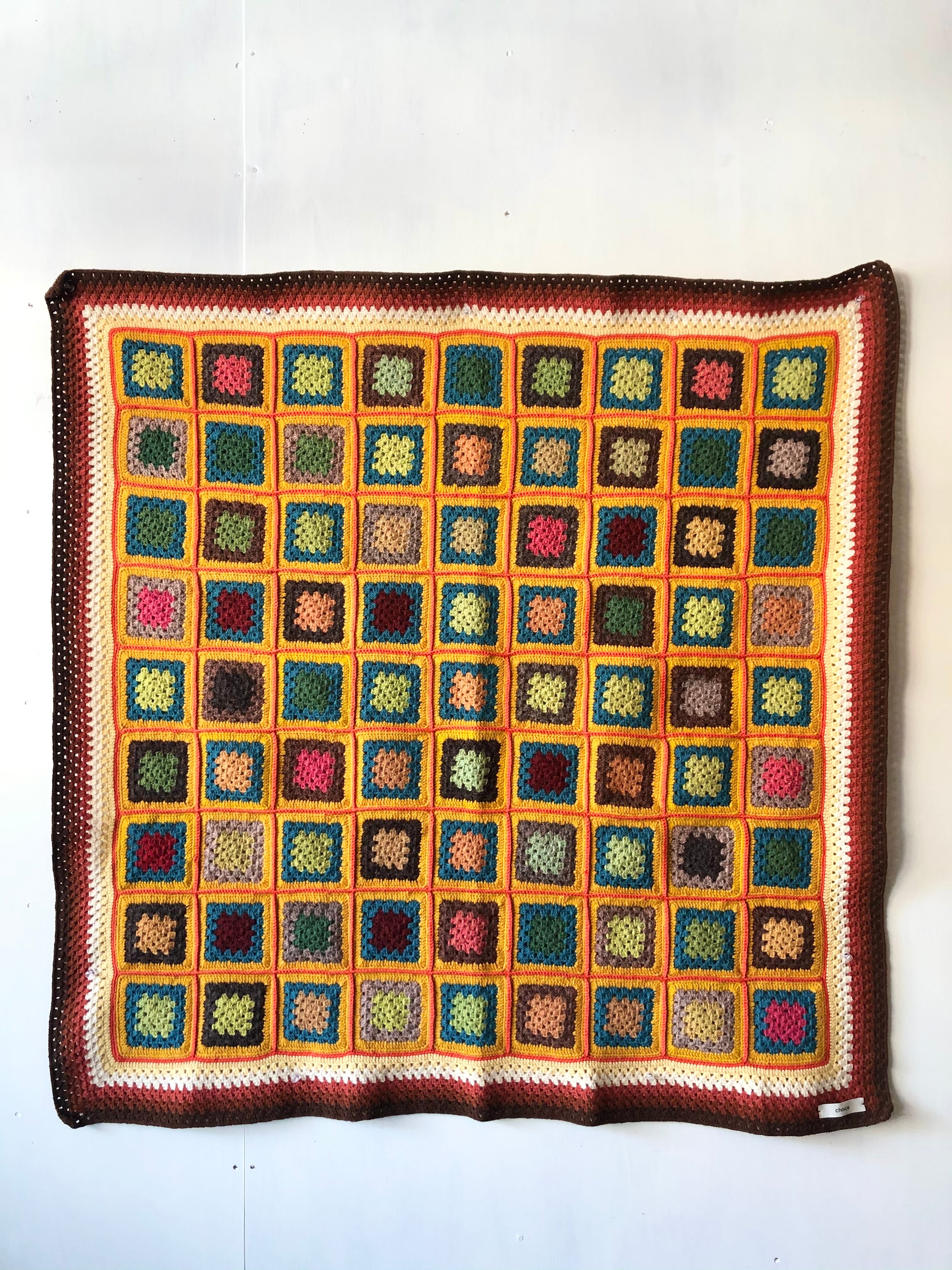 温かみある色彩のモチーフを繋げた 手編みブランケット。
