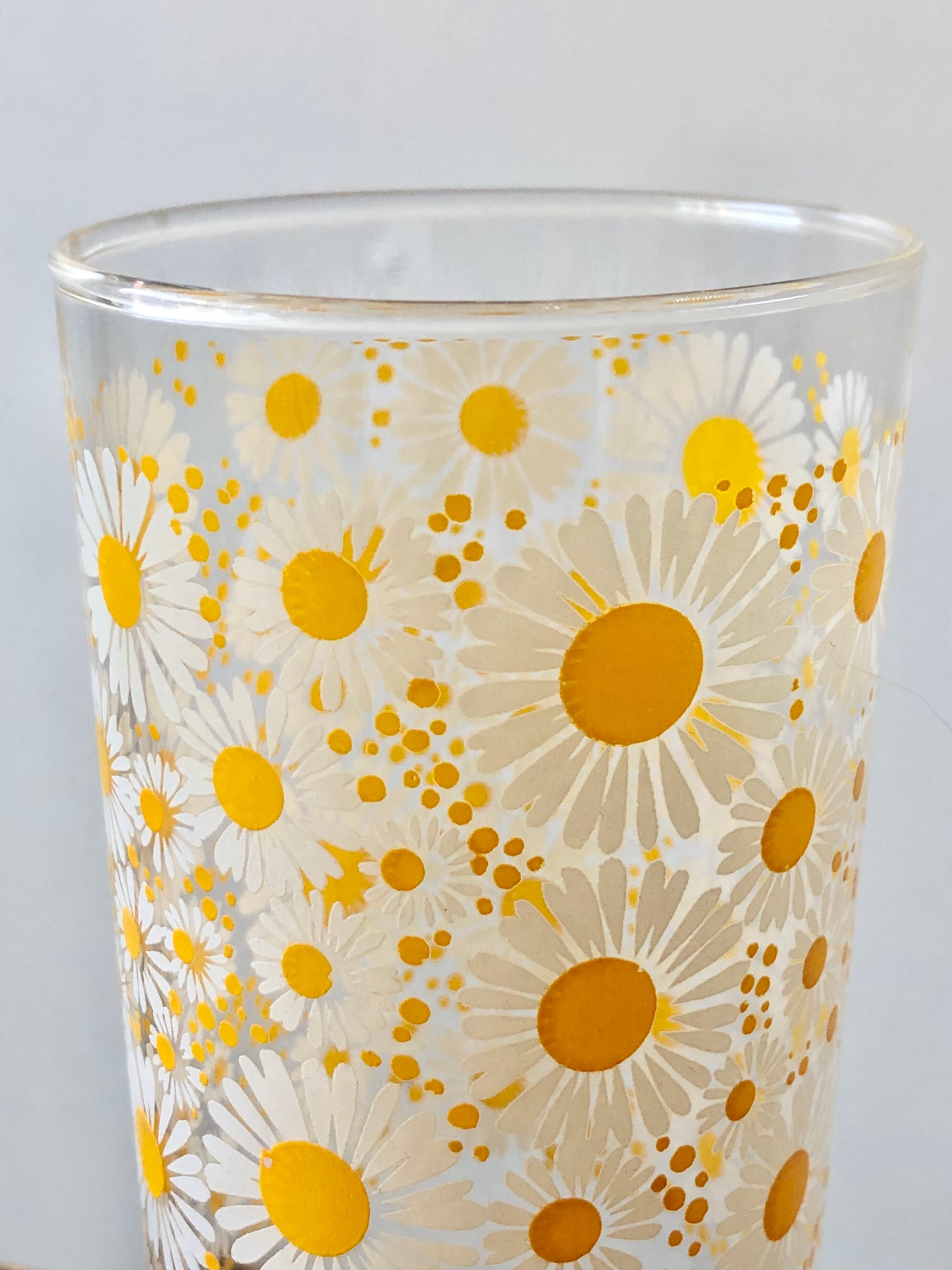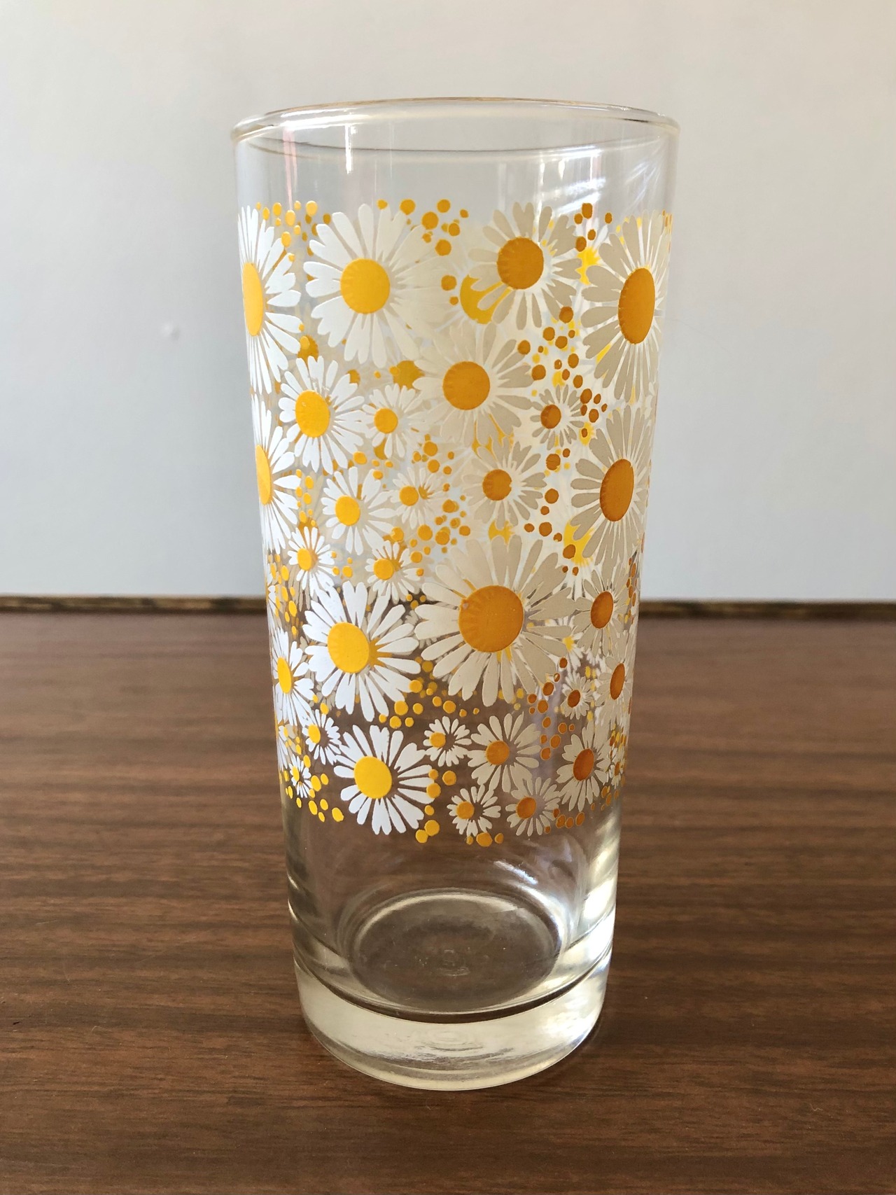 昭和レトロ 70年代 アデリア グラス マーガレット お花 硝子 ガラス コップ レトロポップ 食器 当時物