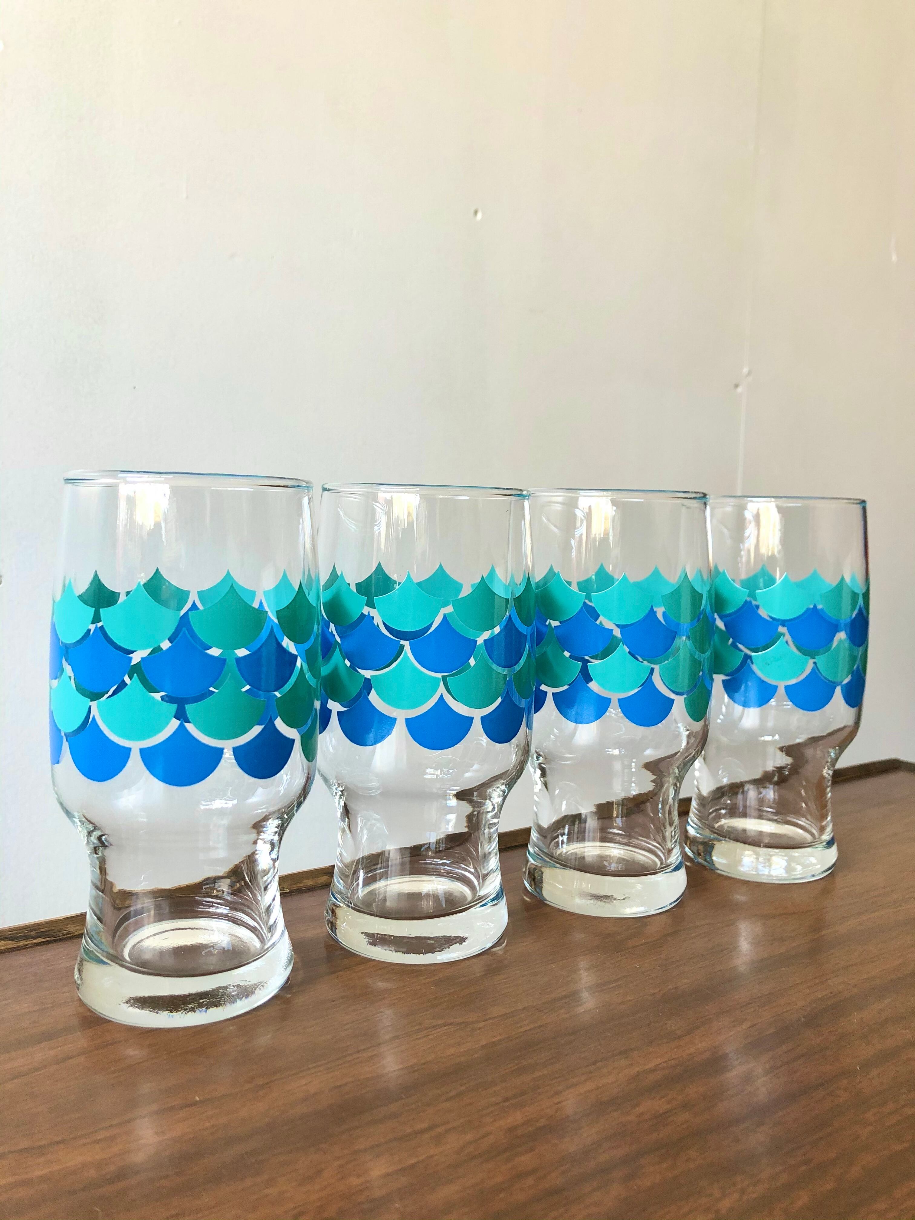昭和レトロ グラス 4個セット おさかな ウロコ 硝子 ガラス コップ レトロポップ 食器 当時物