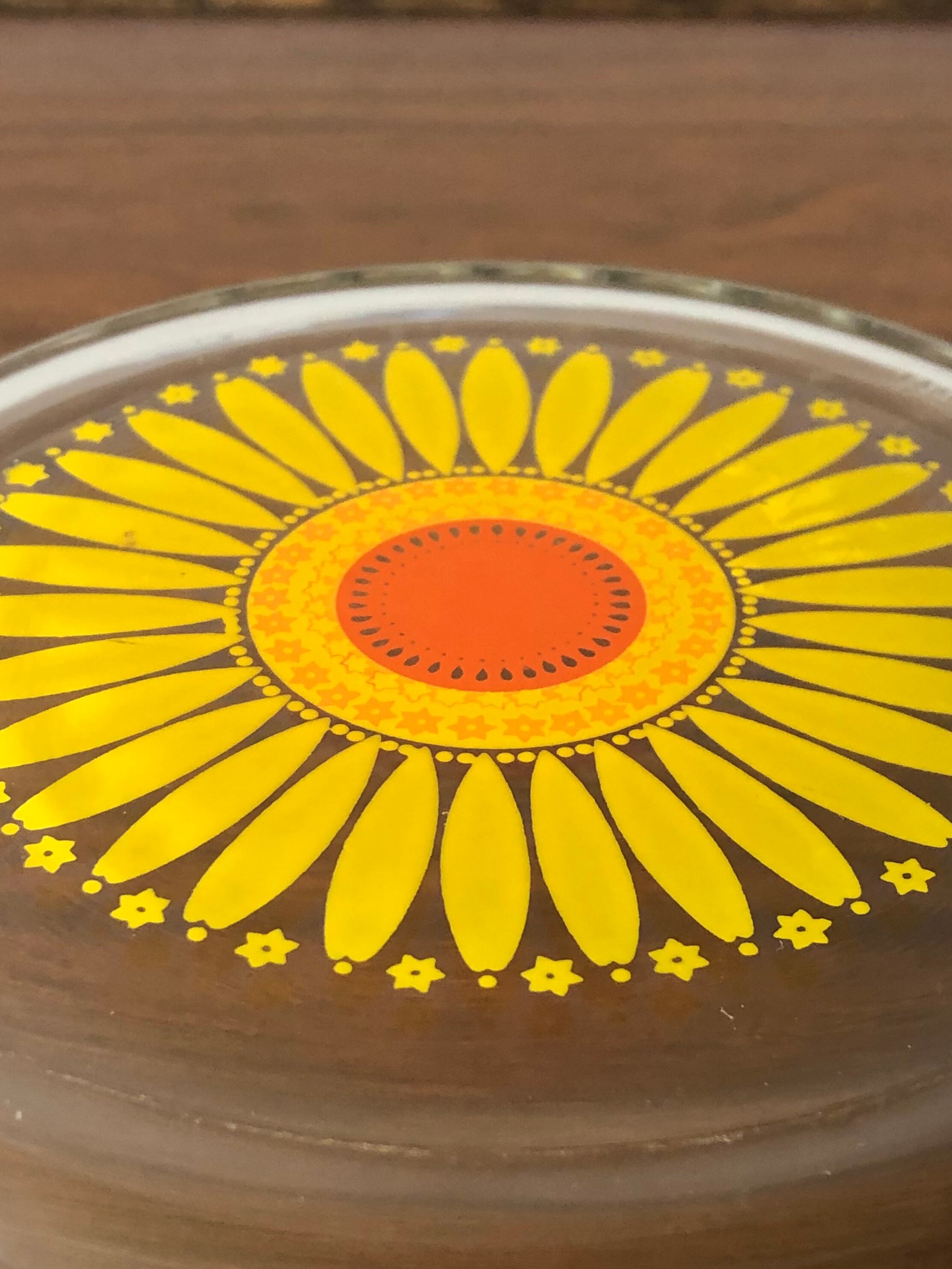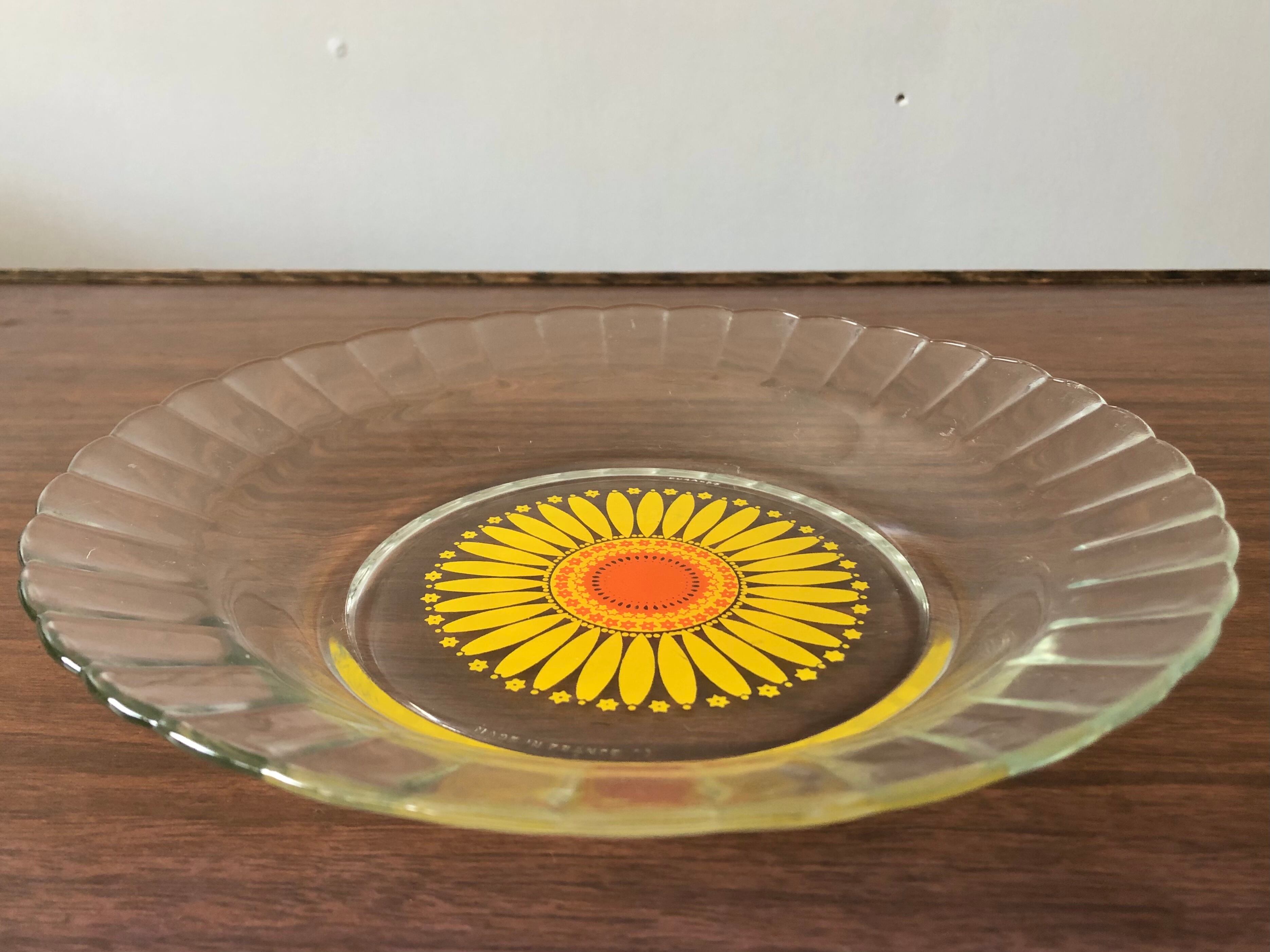フランス製 ビンテージ DURALEX デュラレックス ガラスプレート 皿 お花 プレート レトロポップ ヴィンテージ食器