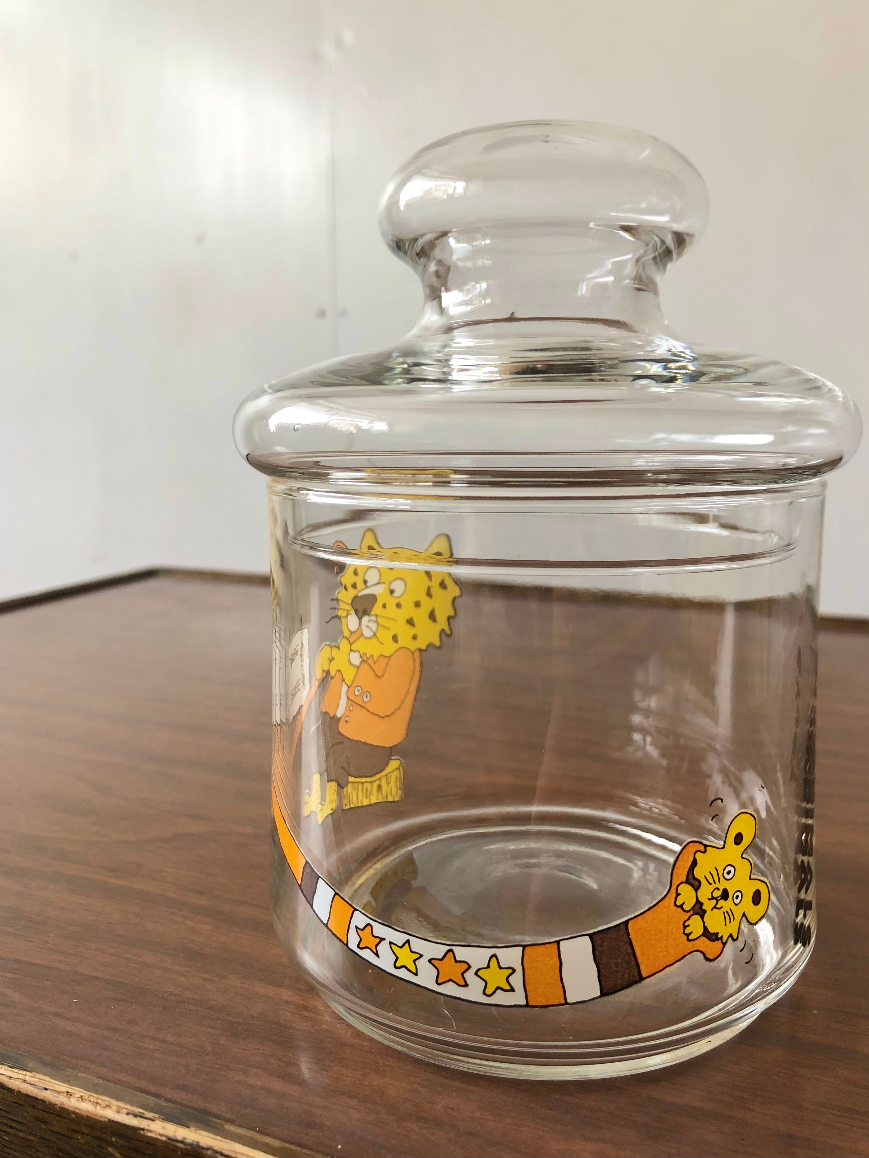昭和レトロ ガラス キャニスター 蓋付き キャンディポット シュガーポット 硝子 小物入れ