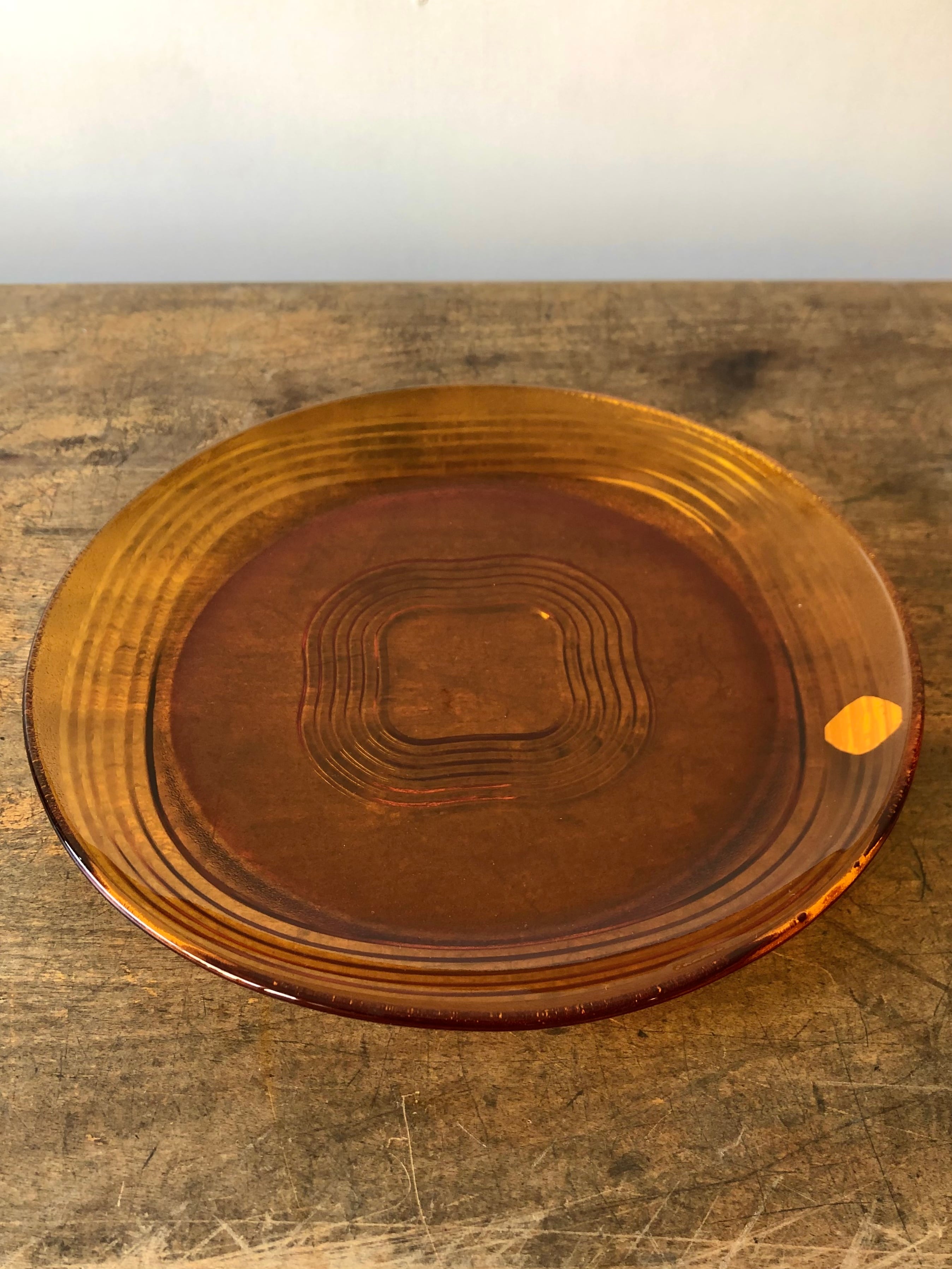 フランス製 DURALEX デュラレックス アンバー ガラスプレート 琥珀色 硝子皿 ヴィンテージ食器 レトロモダン 昭和レトロ