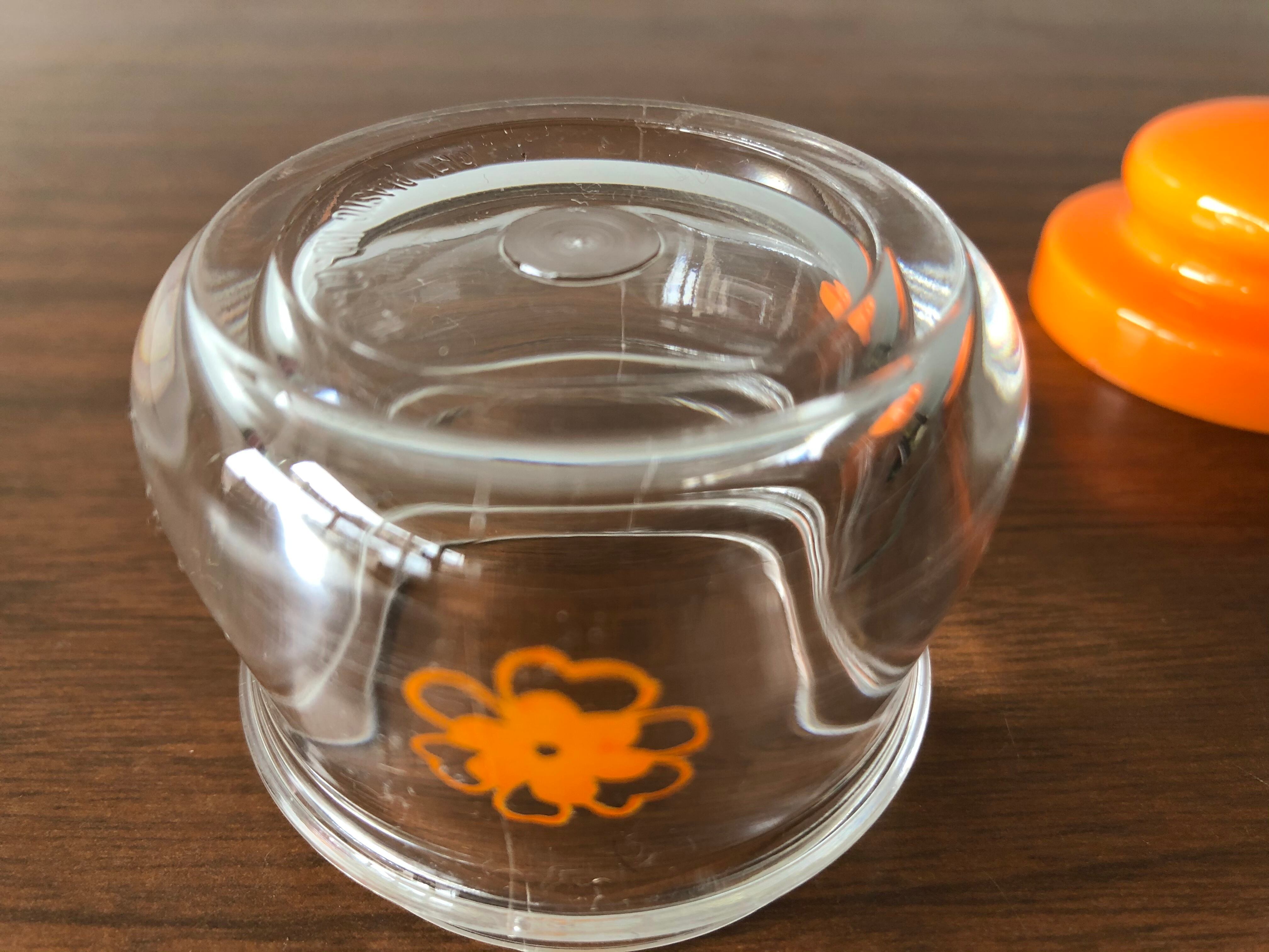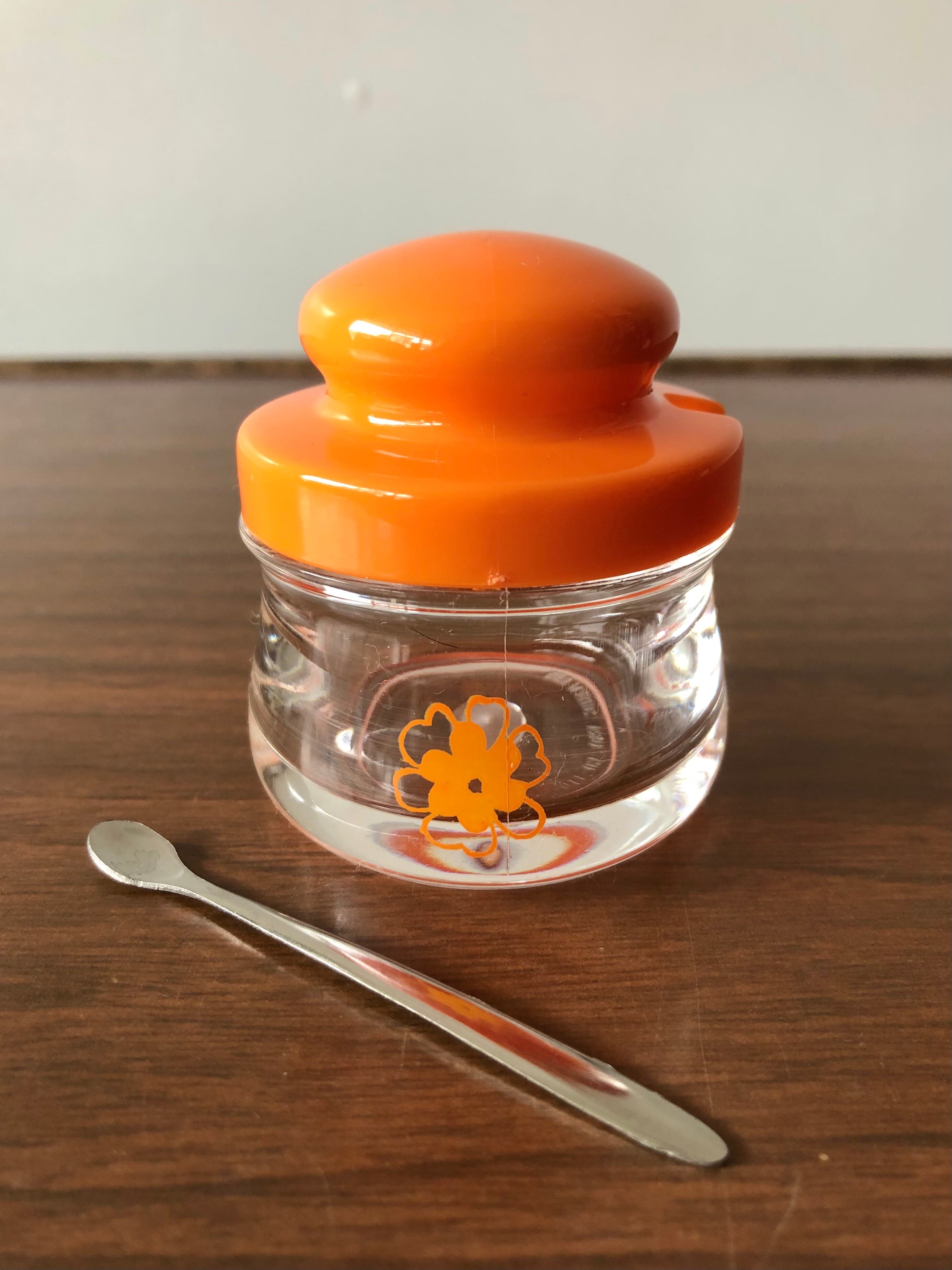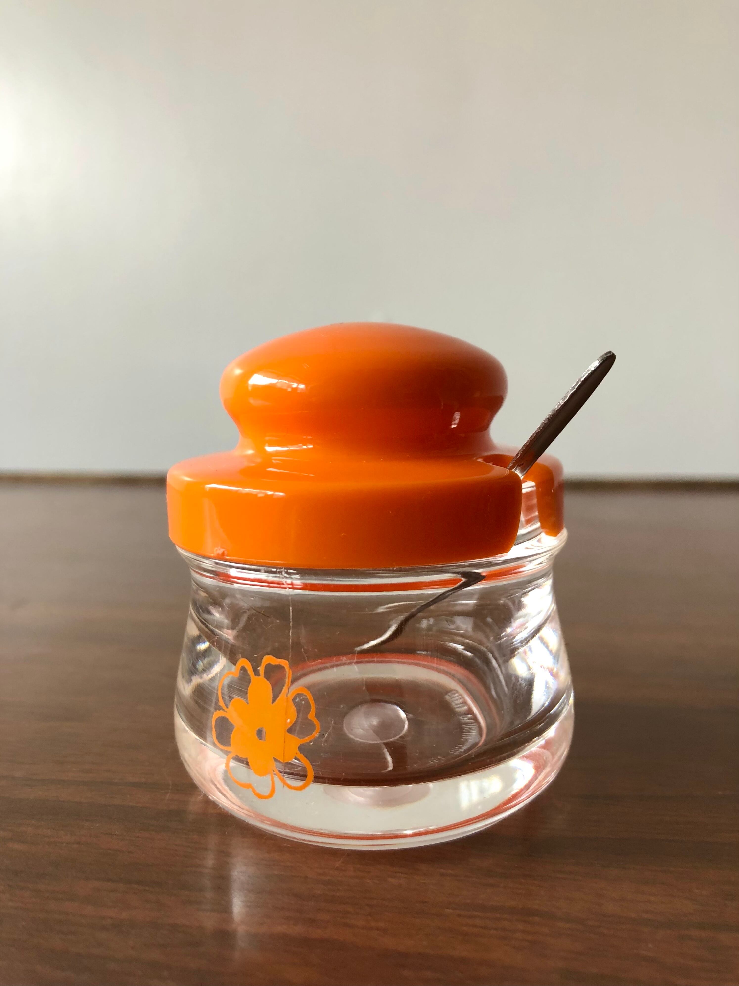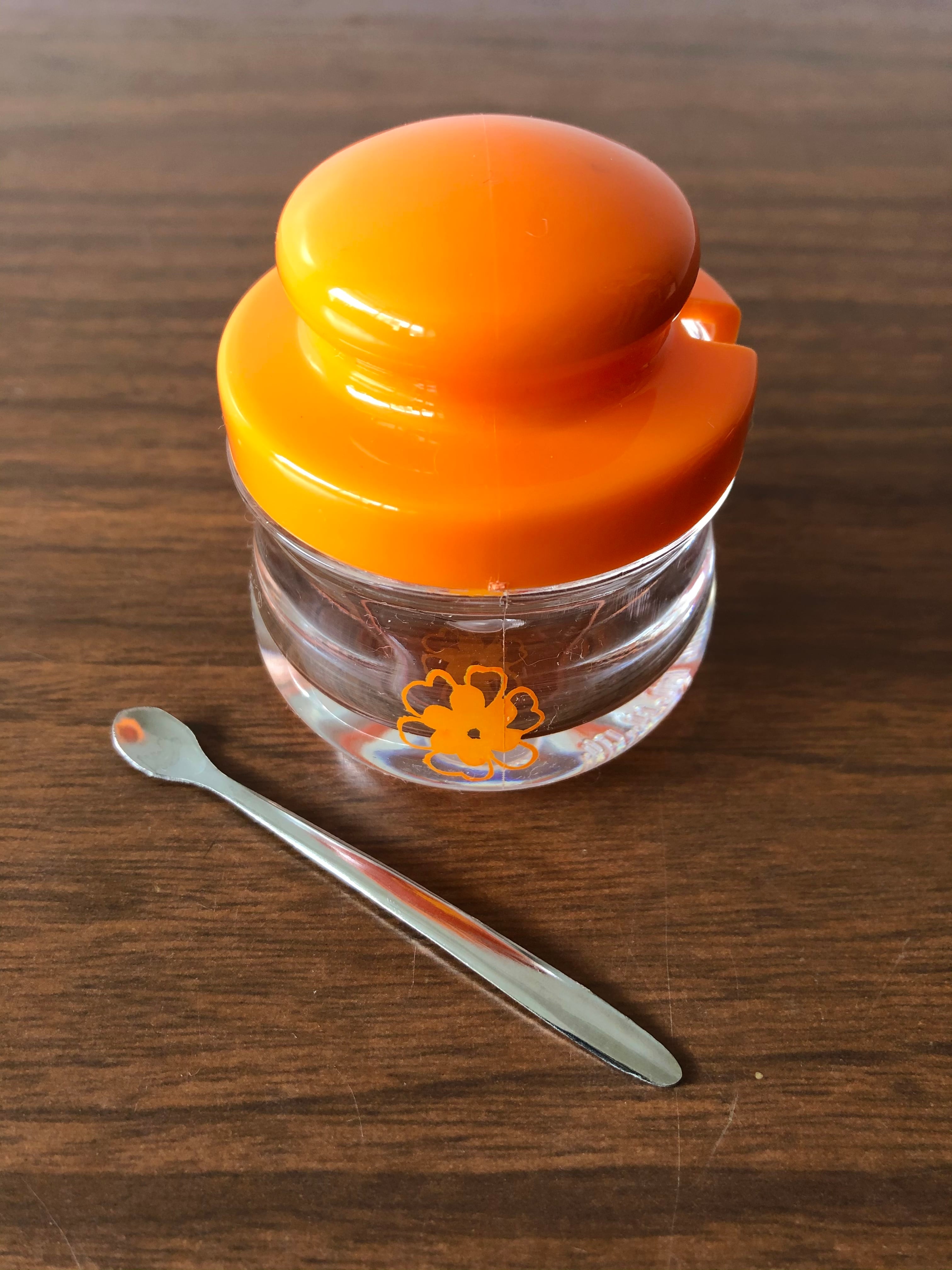 昭和レトロ リス トレビアン 花柄 オレンジ 調味料入れ 薬味入れ スプーン付き レトロポップ キッチン雑貨 当時物