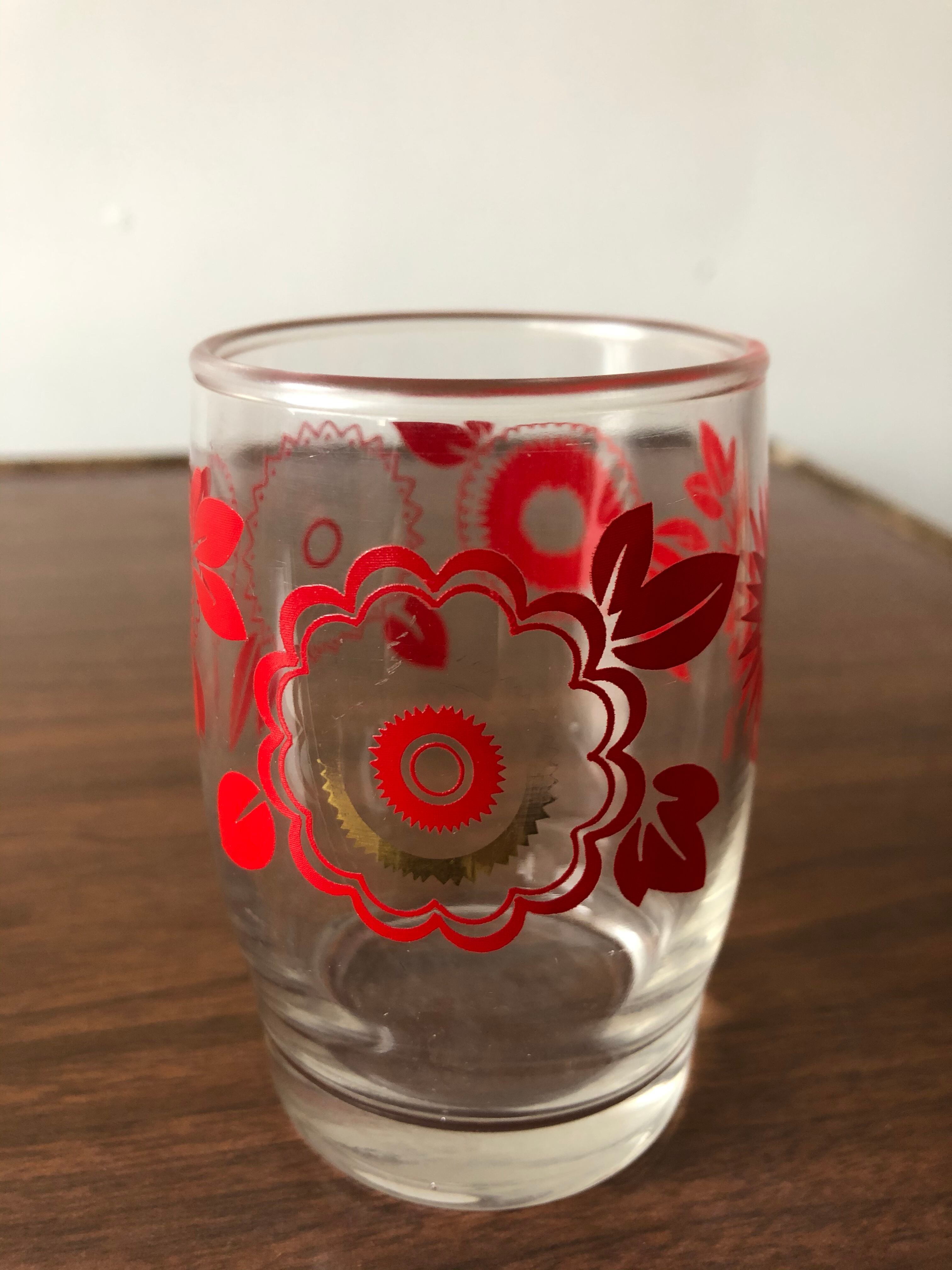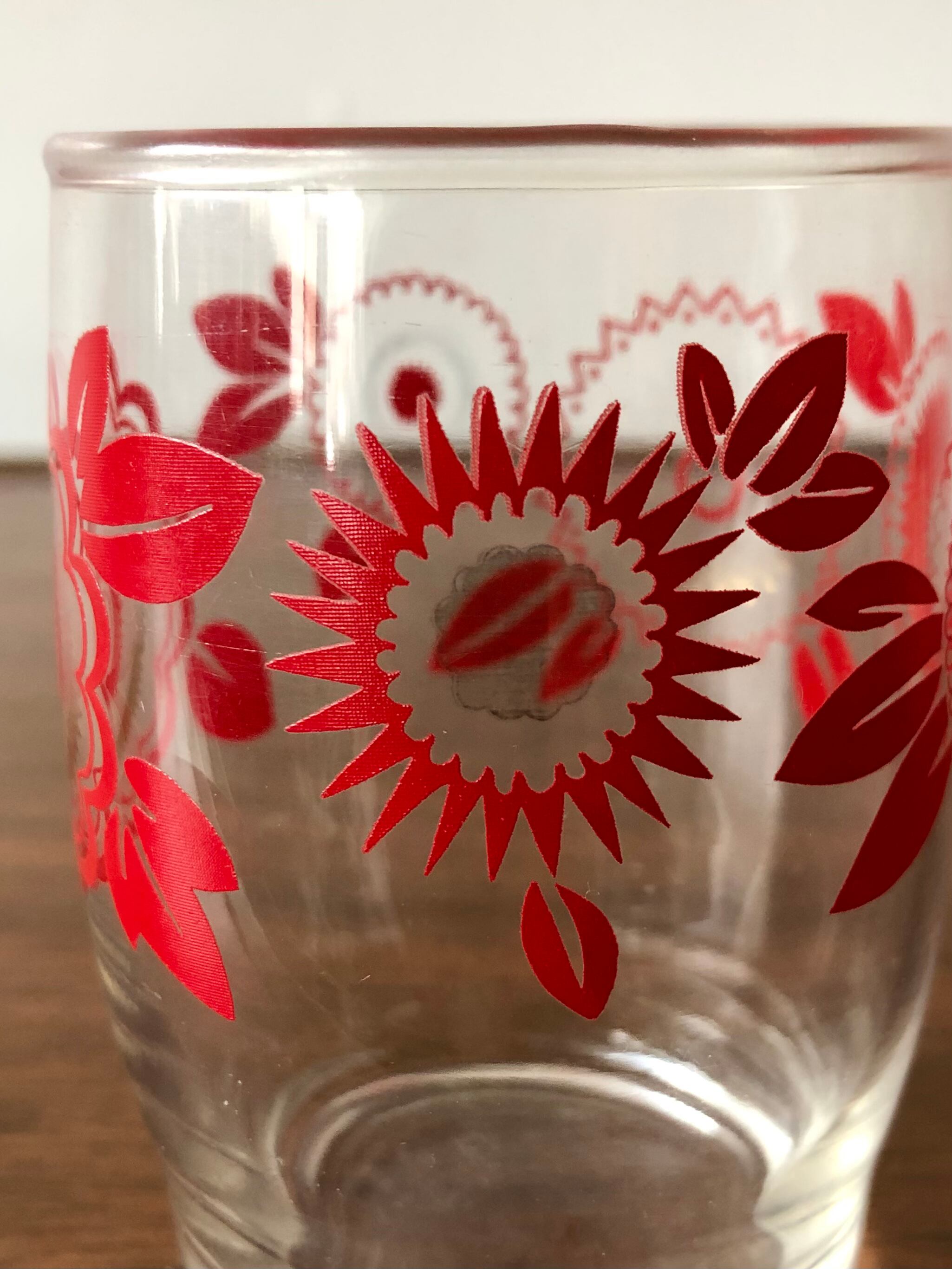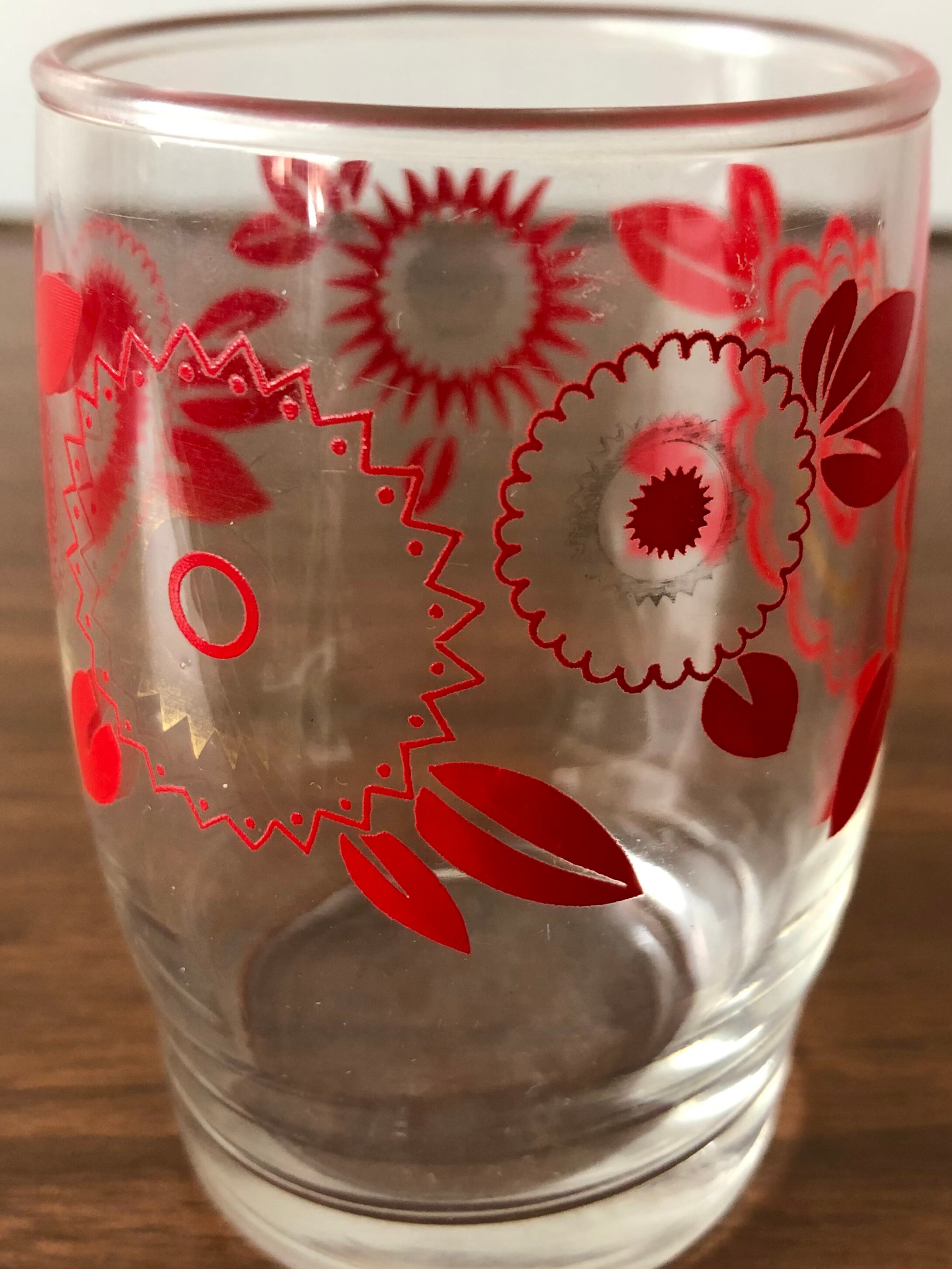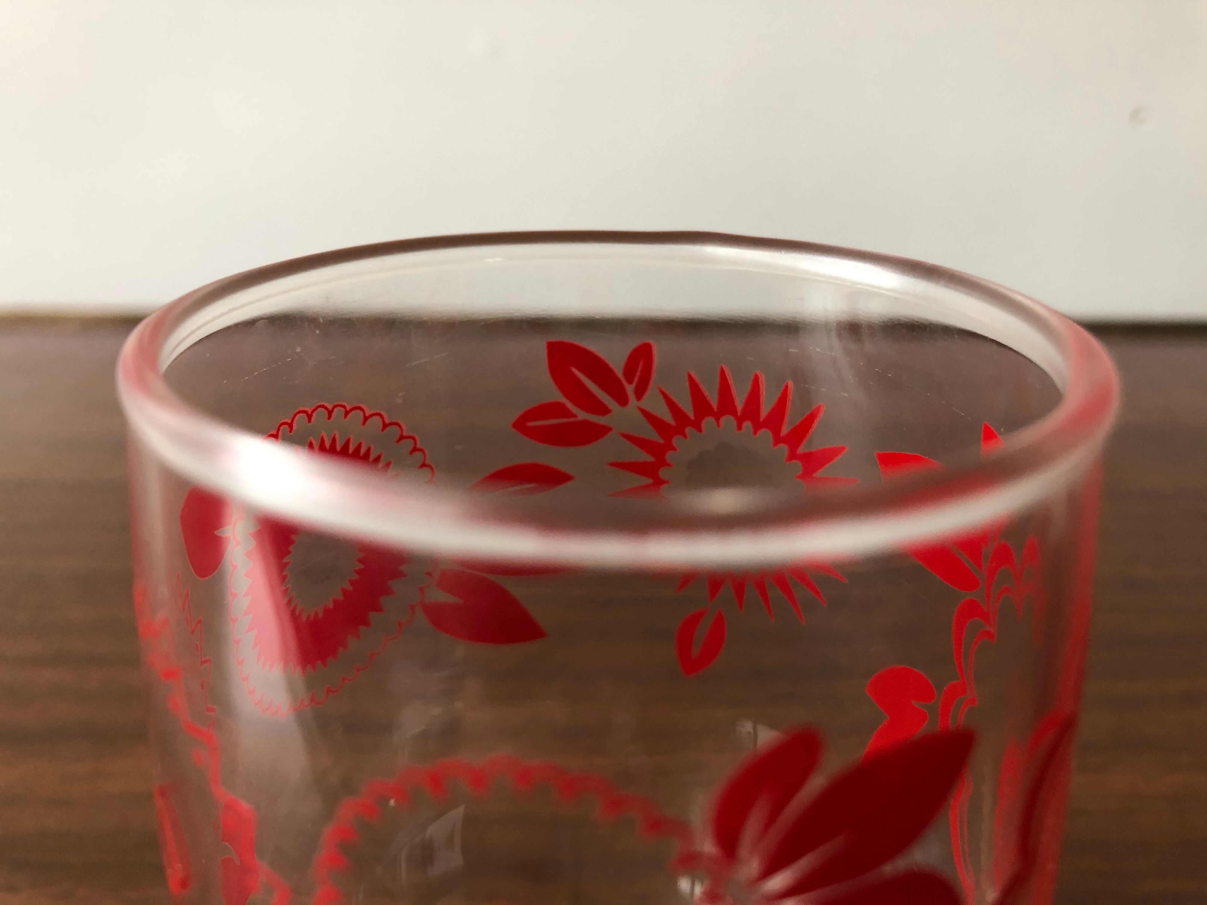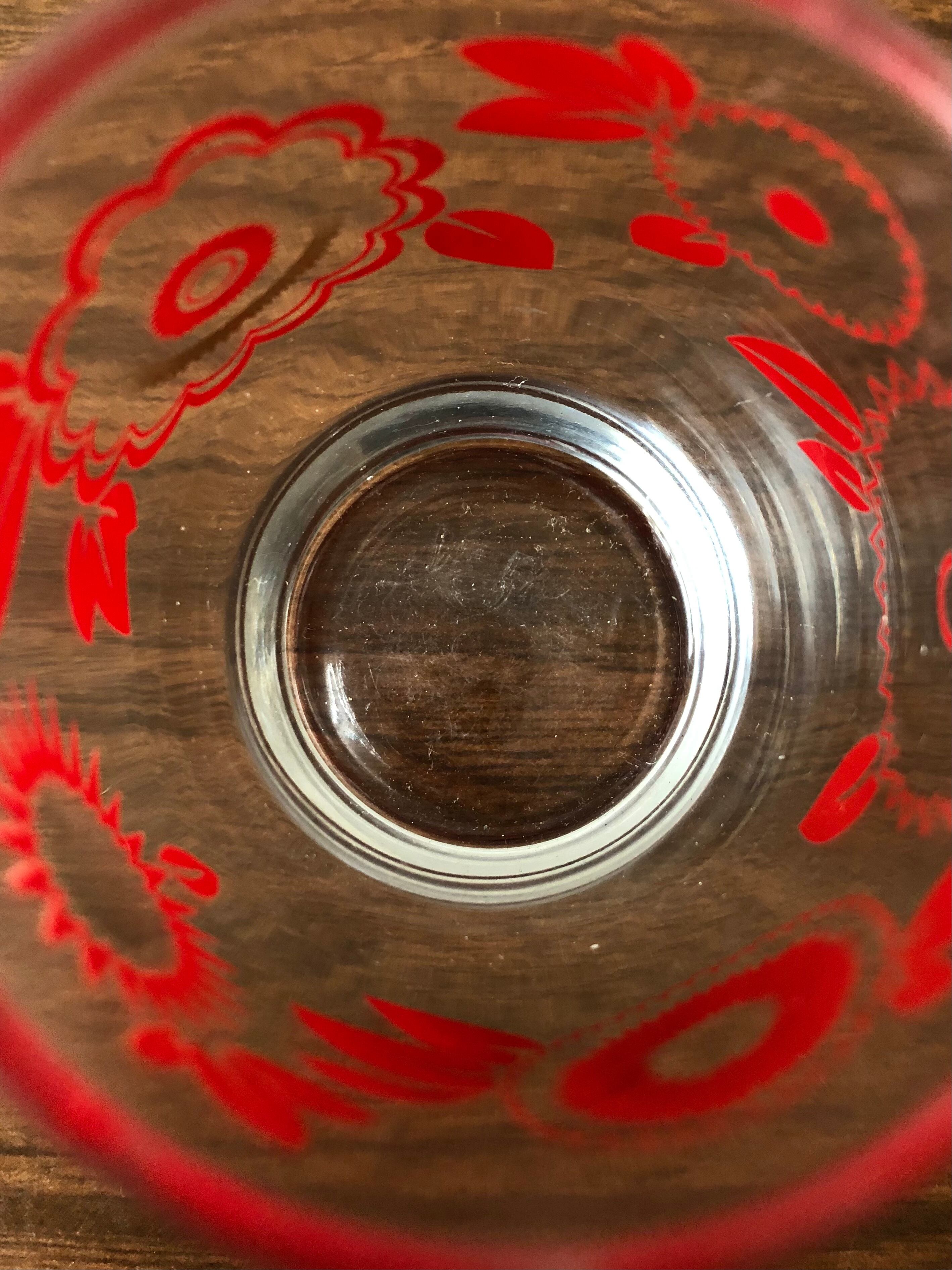 レトロな可愛いお花がガラスに描かれたアデリアレトログラス。70年代当時の物です。