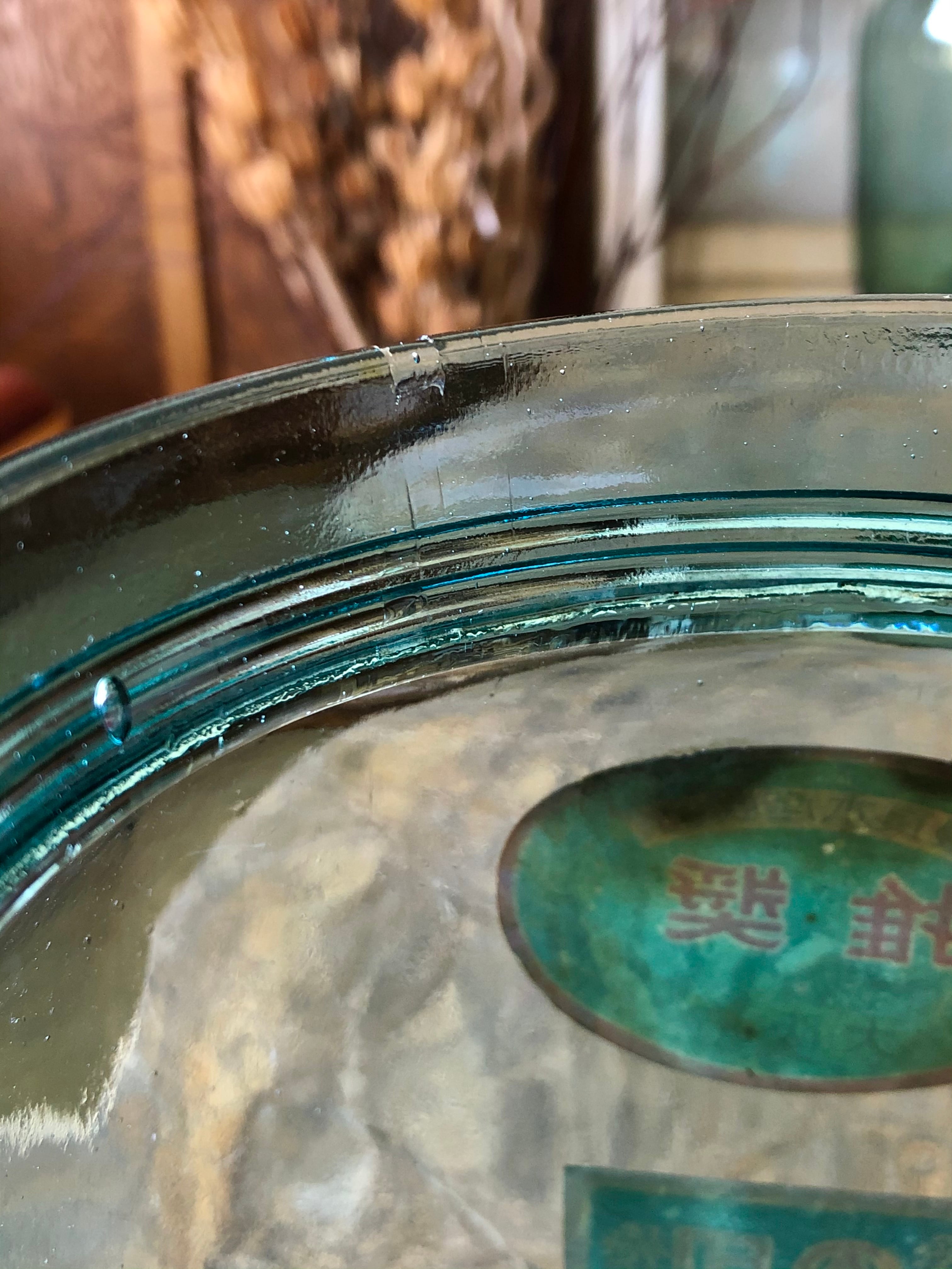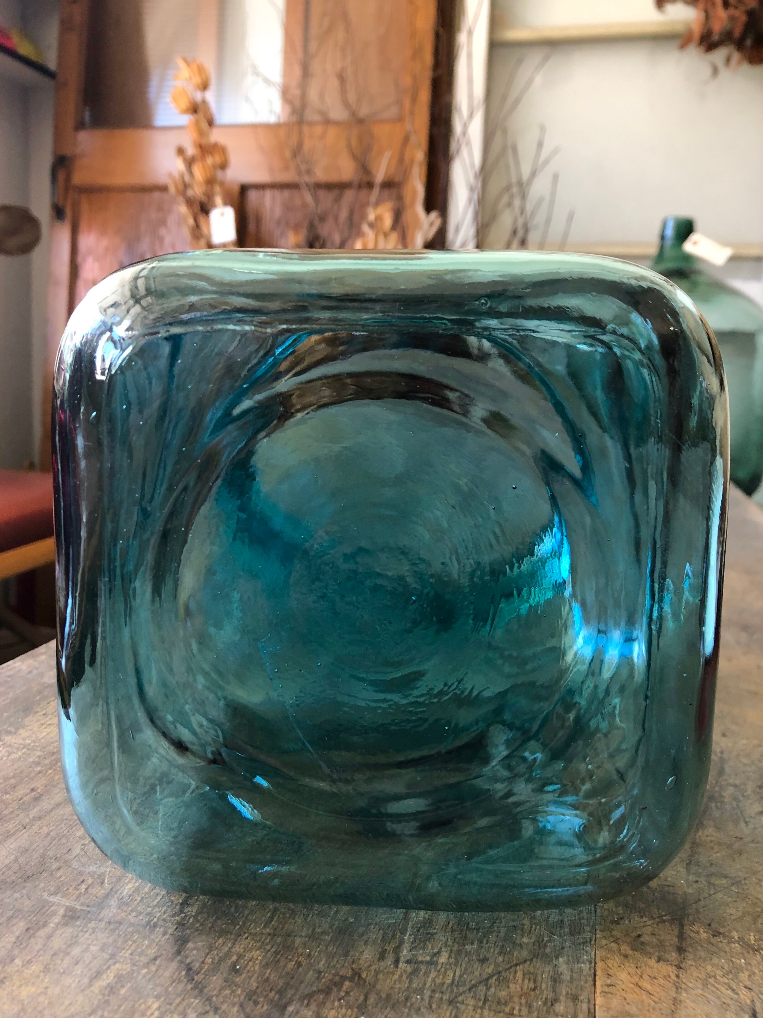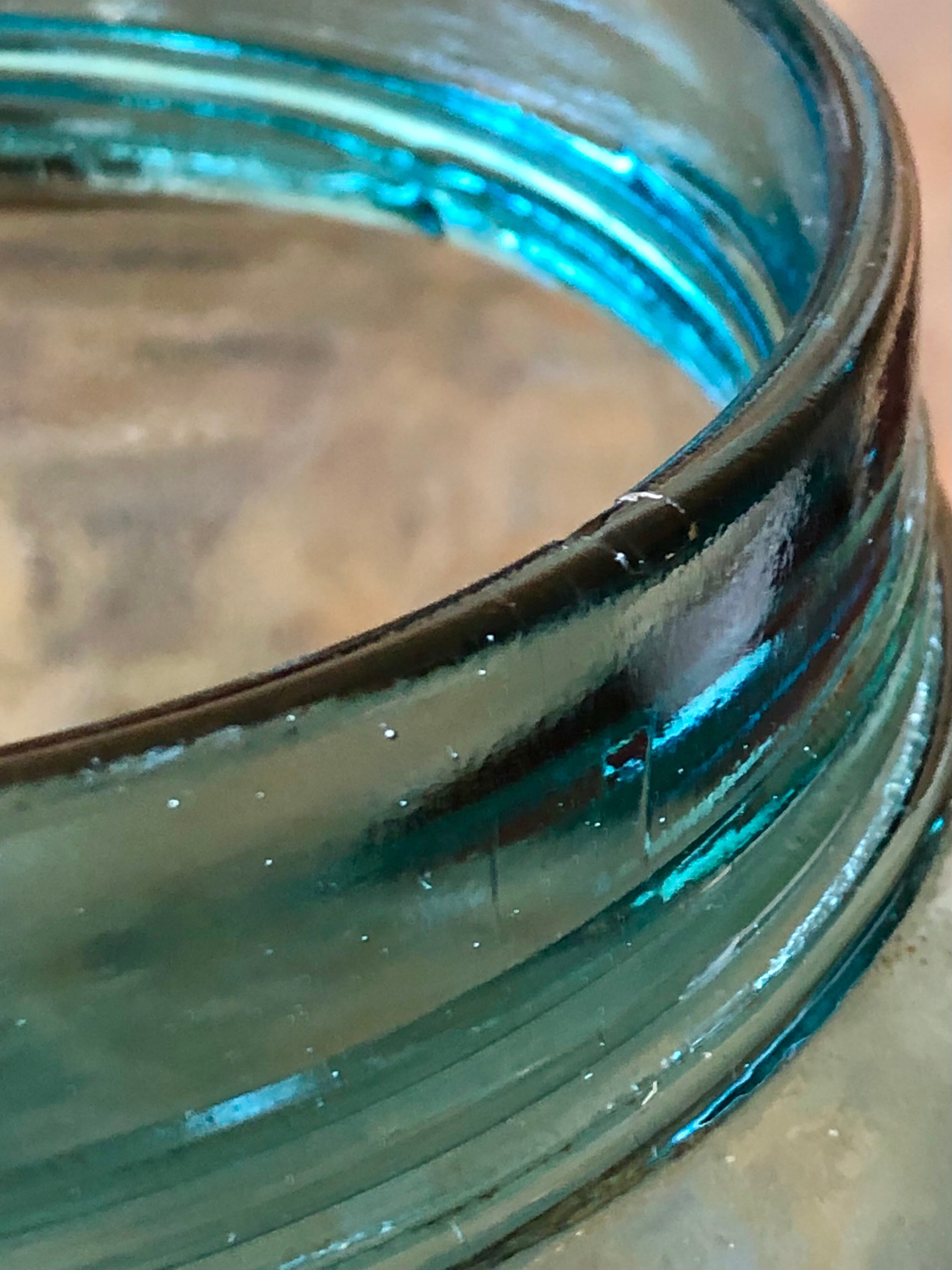 ゆらゆら味わい深い 美しい青緑色の硝子です。