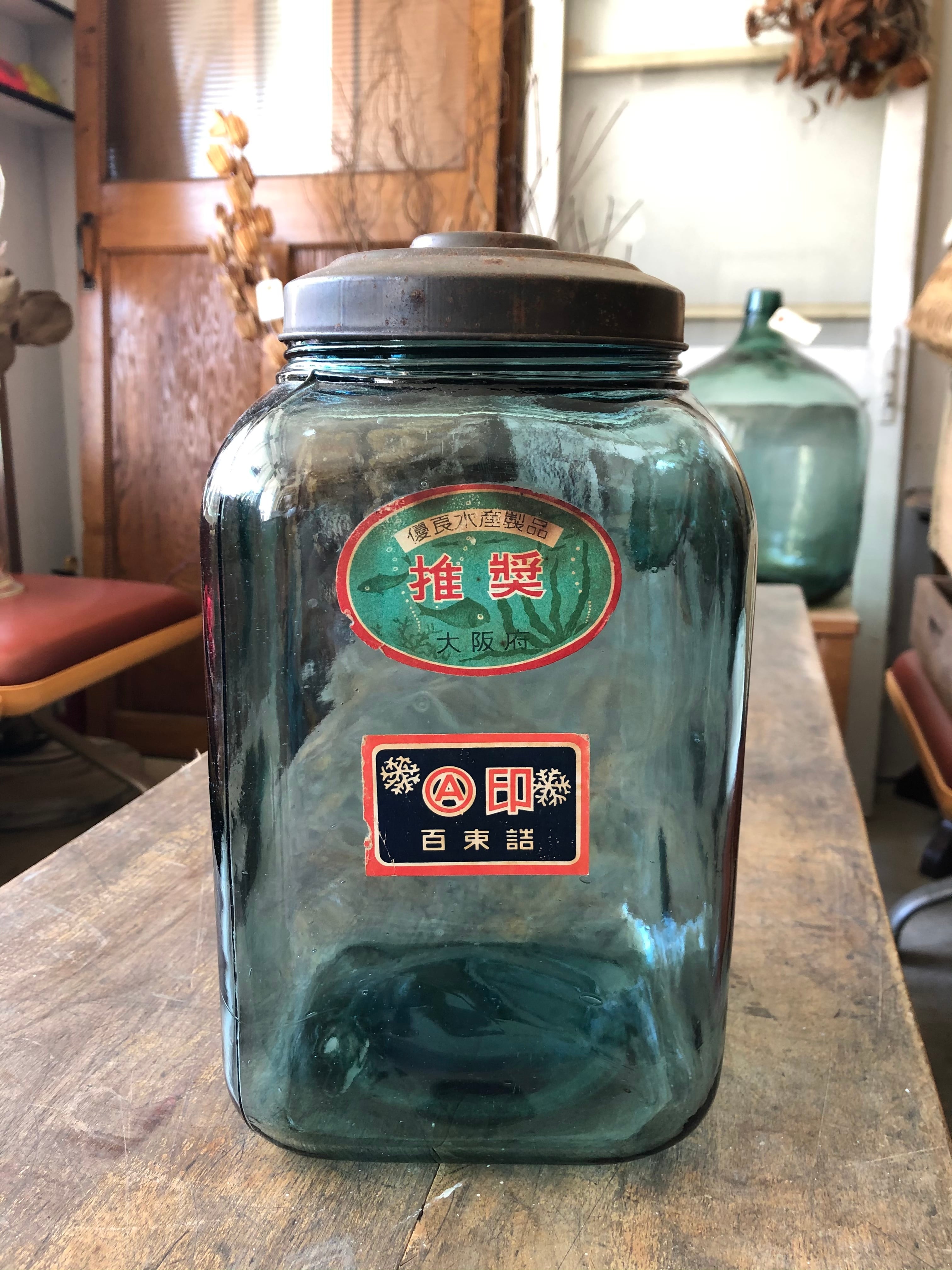 昭和レトロ 古い硝子瓶 ガラス瓶 気泡入り お菓子瓶 駄菓子屋瓶 古道具