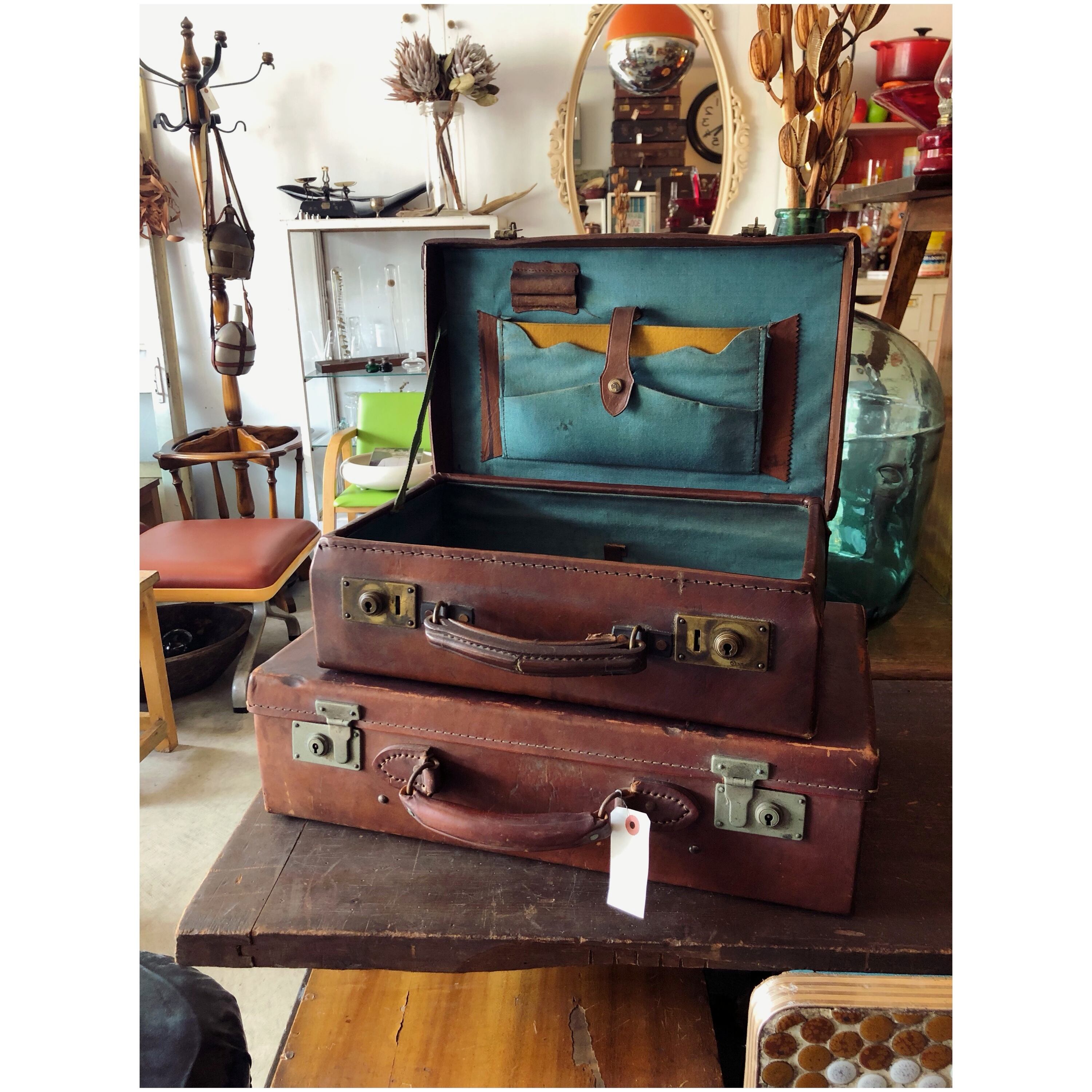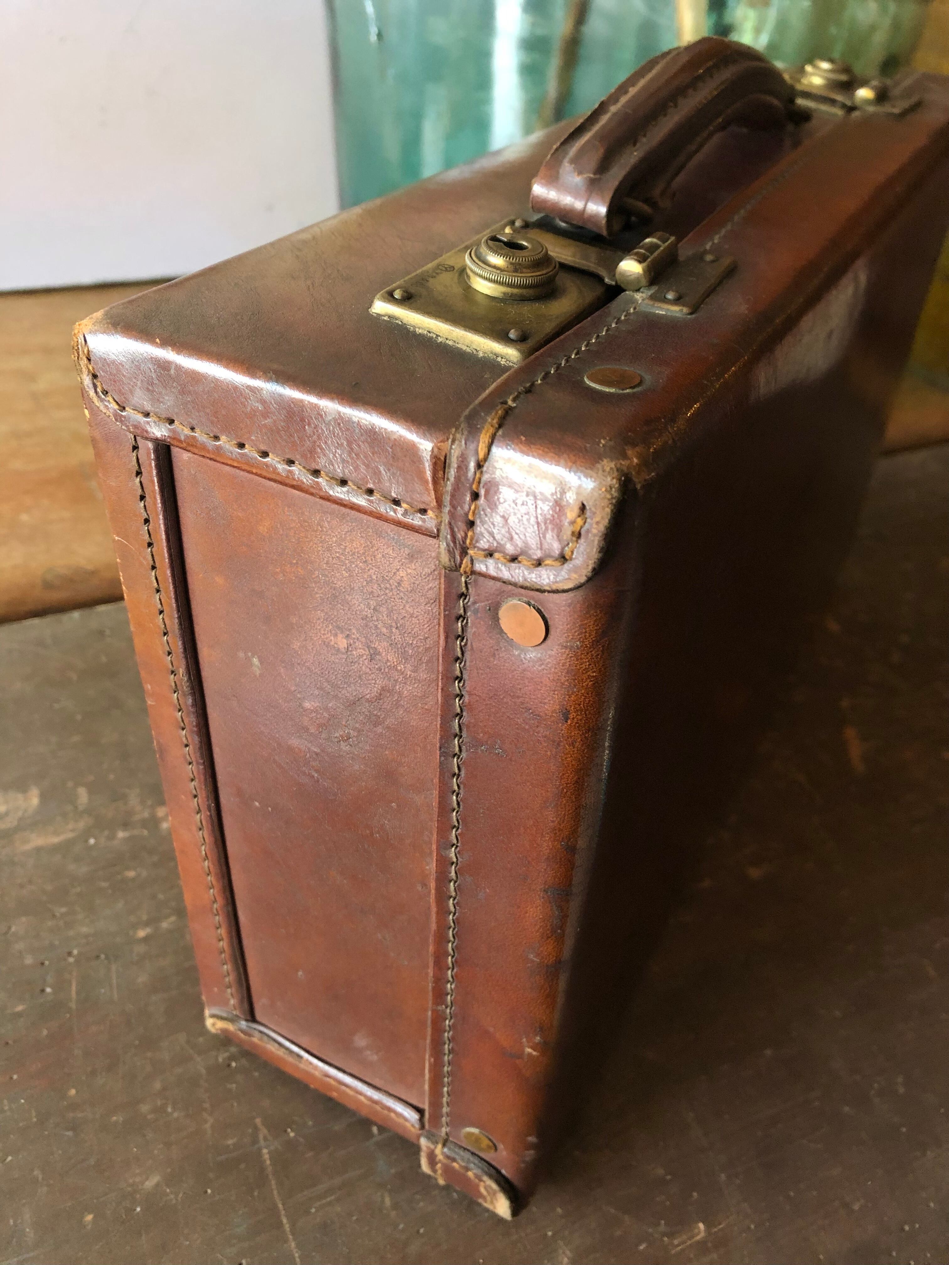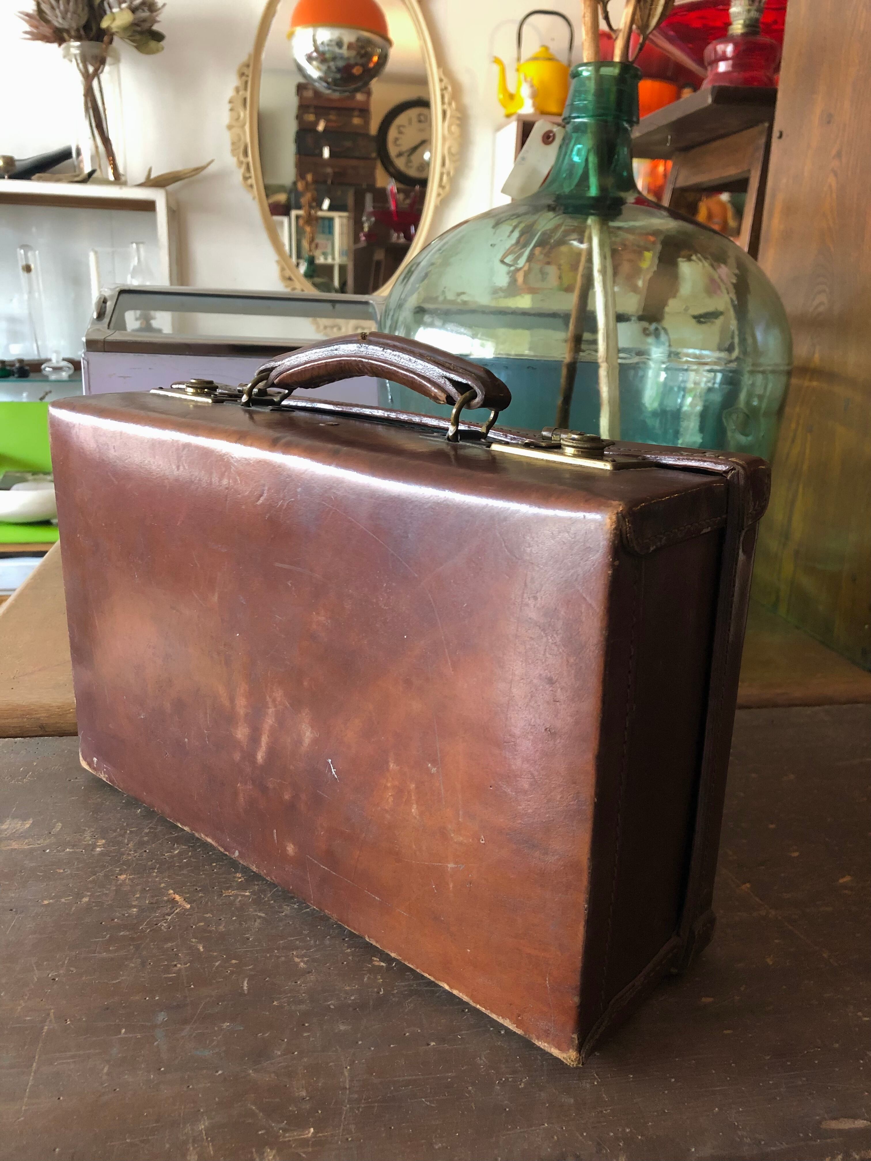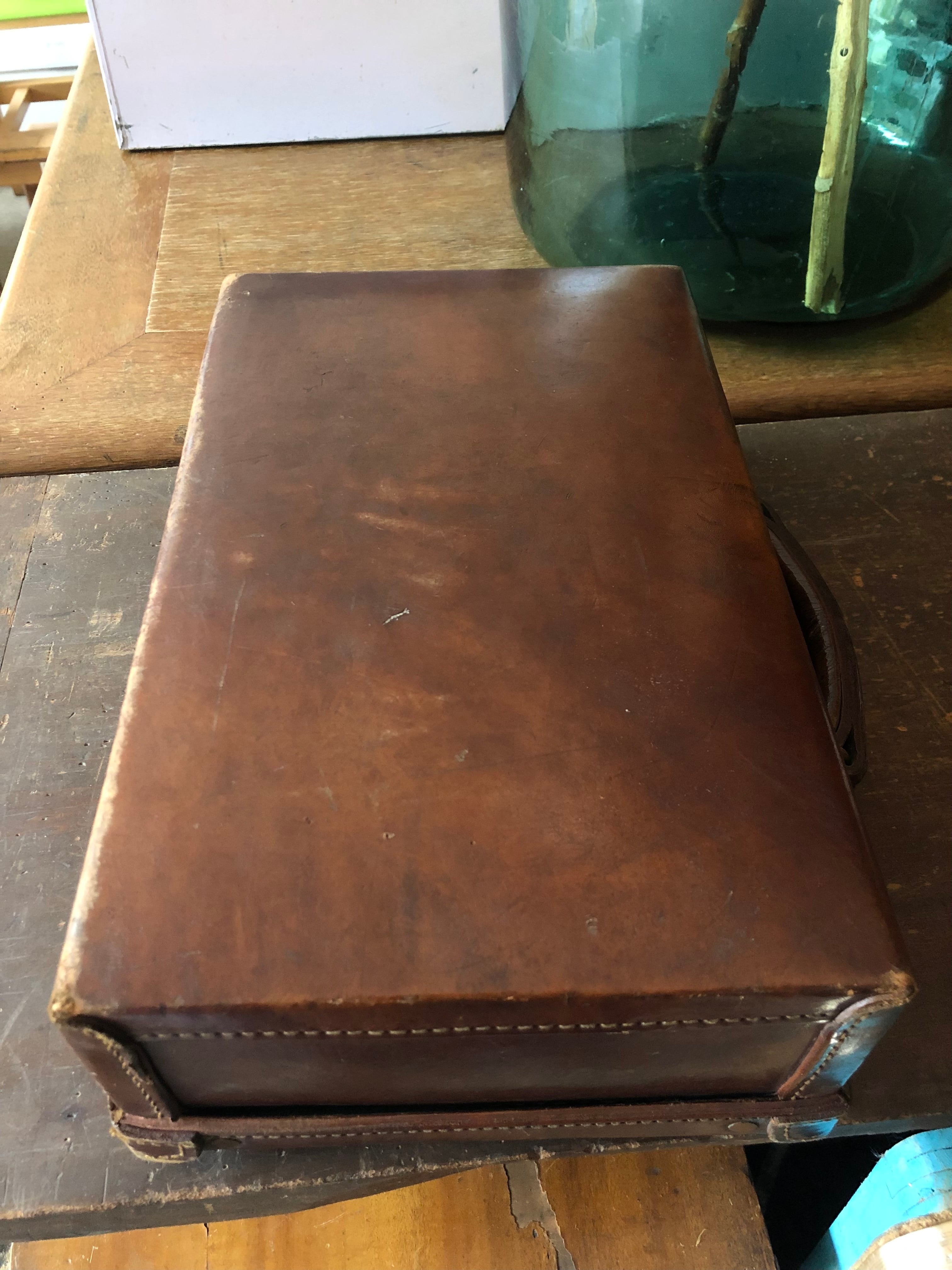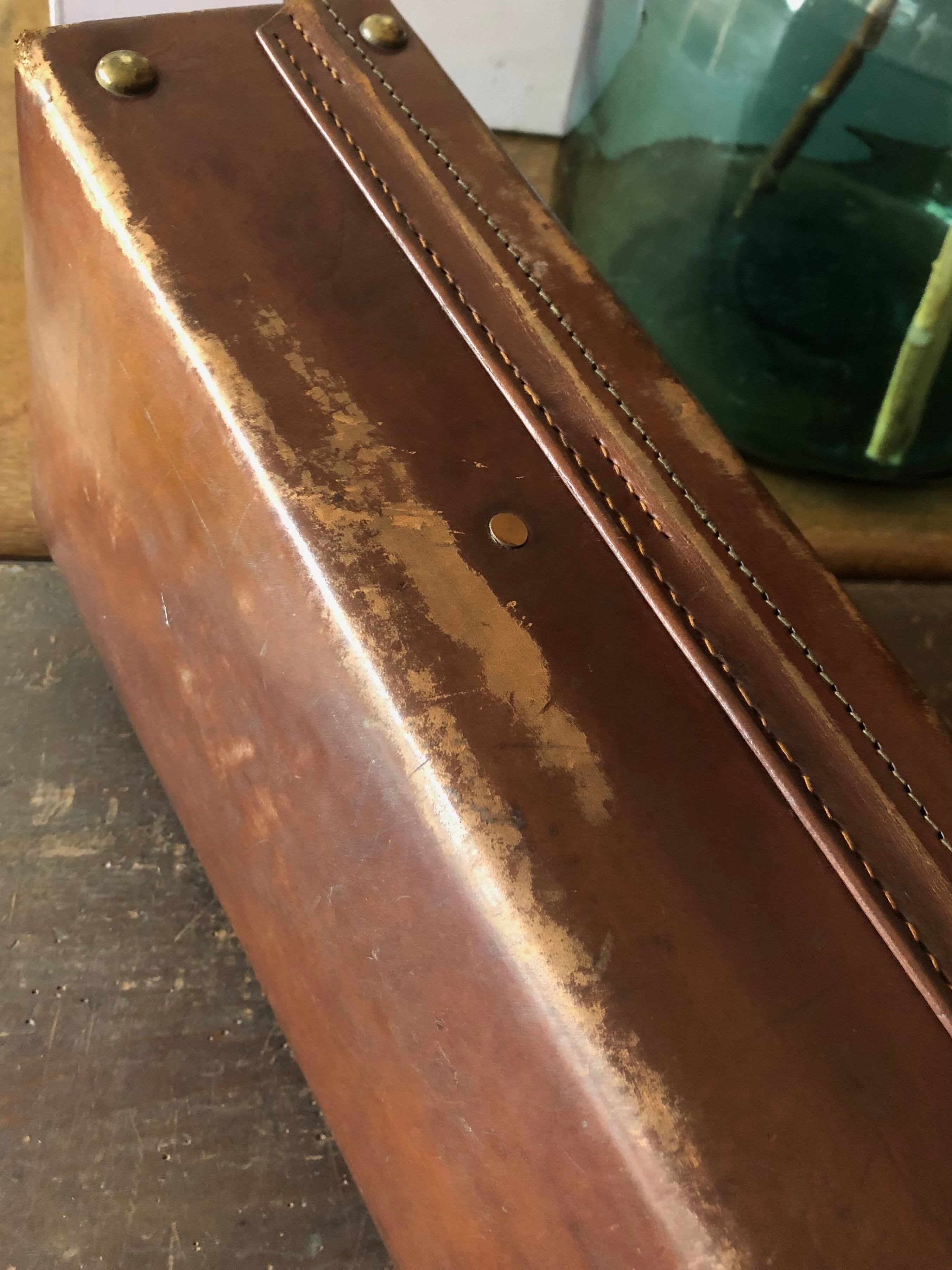 小さめ 古いトランク 革トランク 昭和レトロ 古道具
