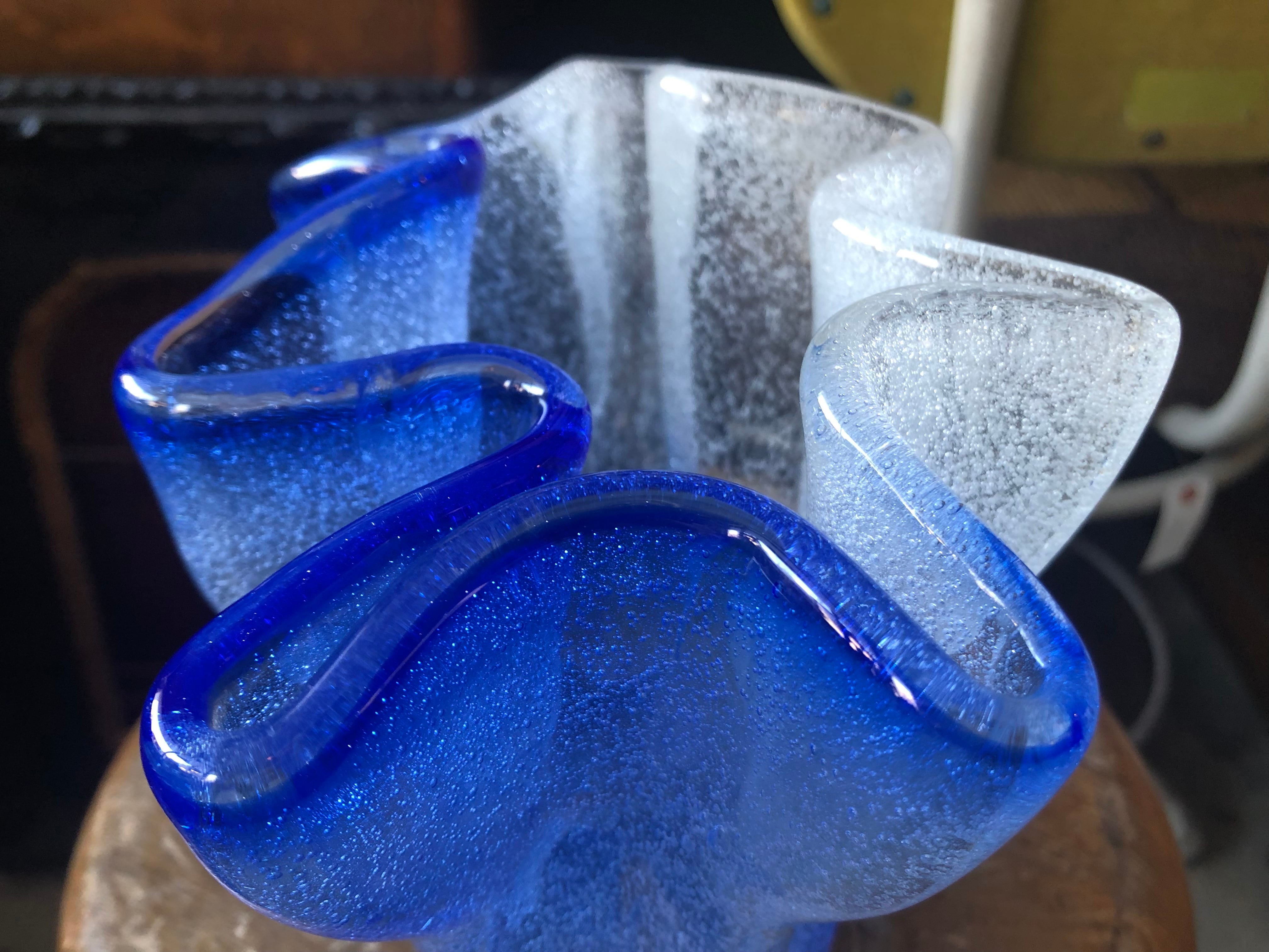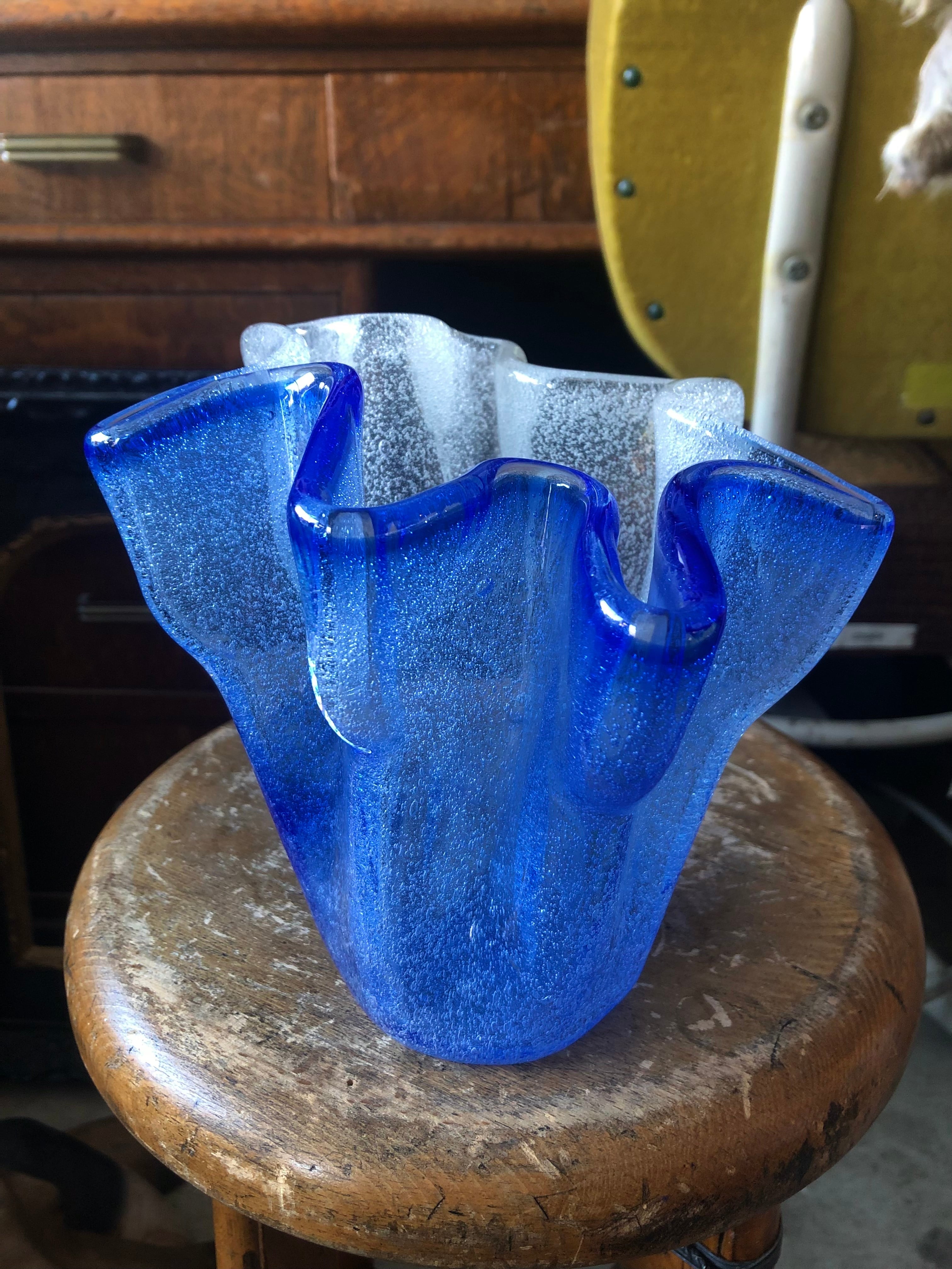 昭和レトロ 花瓶 波型クラフトガラス ヴィンテージ フラワーベース