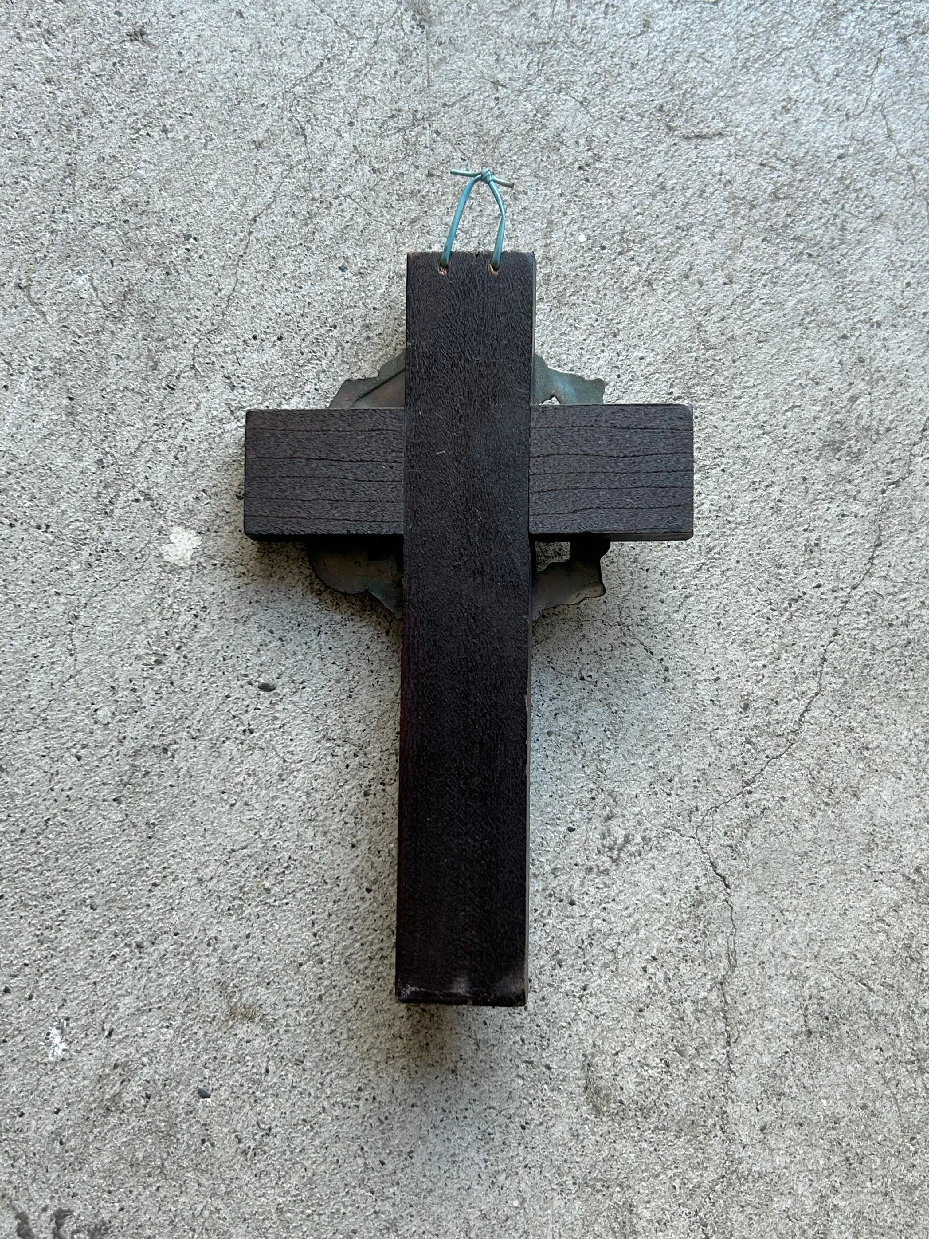 ウッドクロスにステンレス鋼の十字架とキリストを打ち付けたものです。
