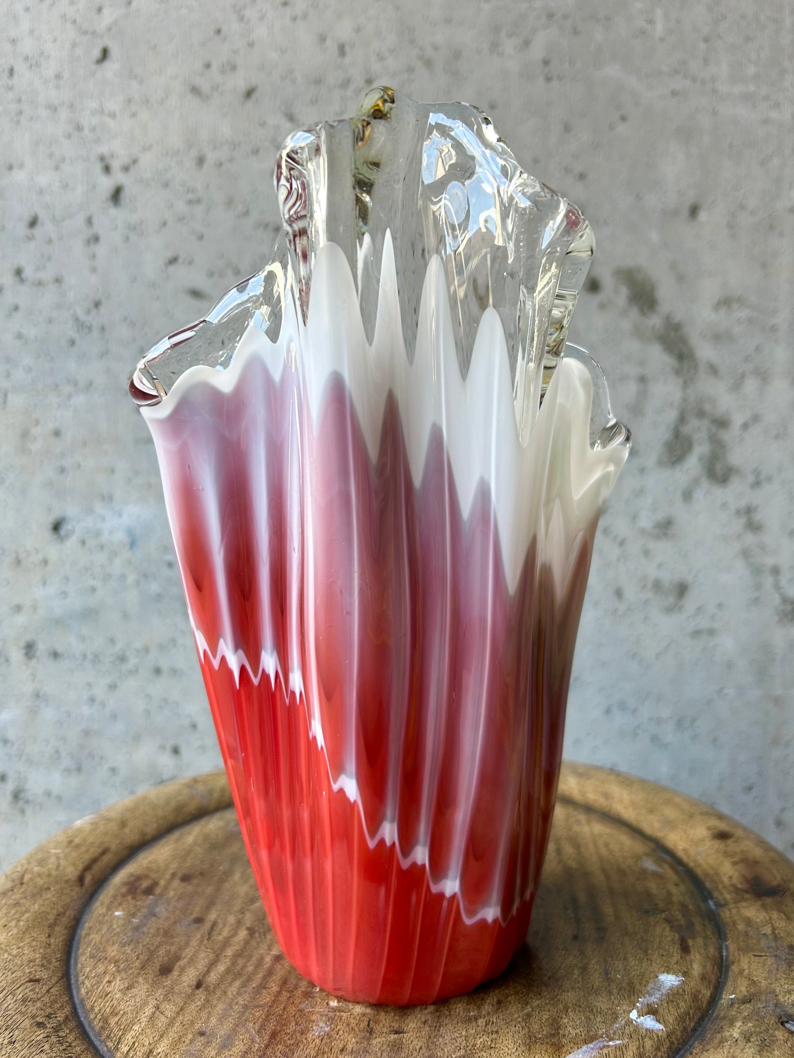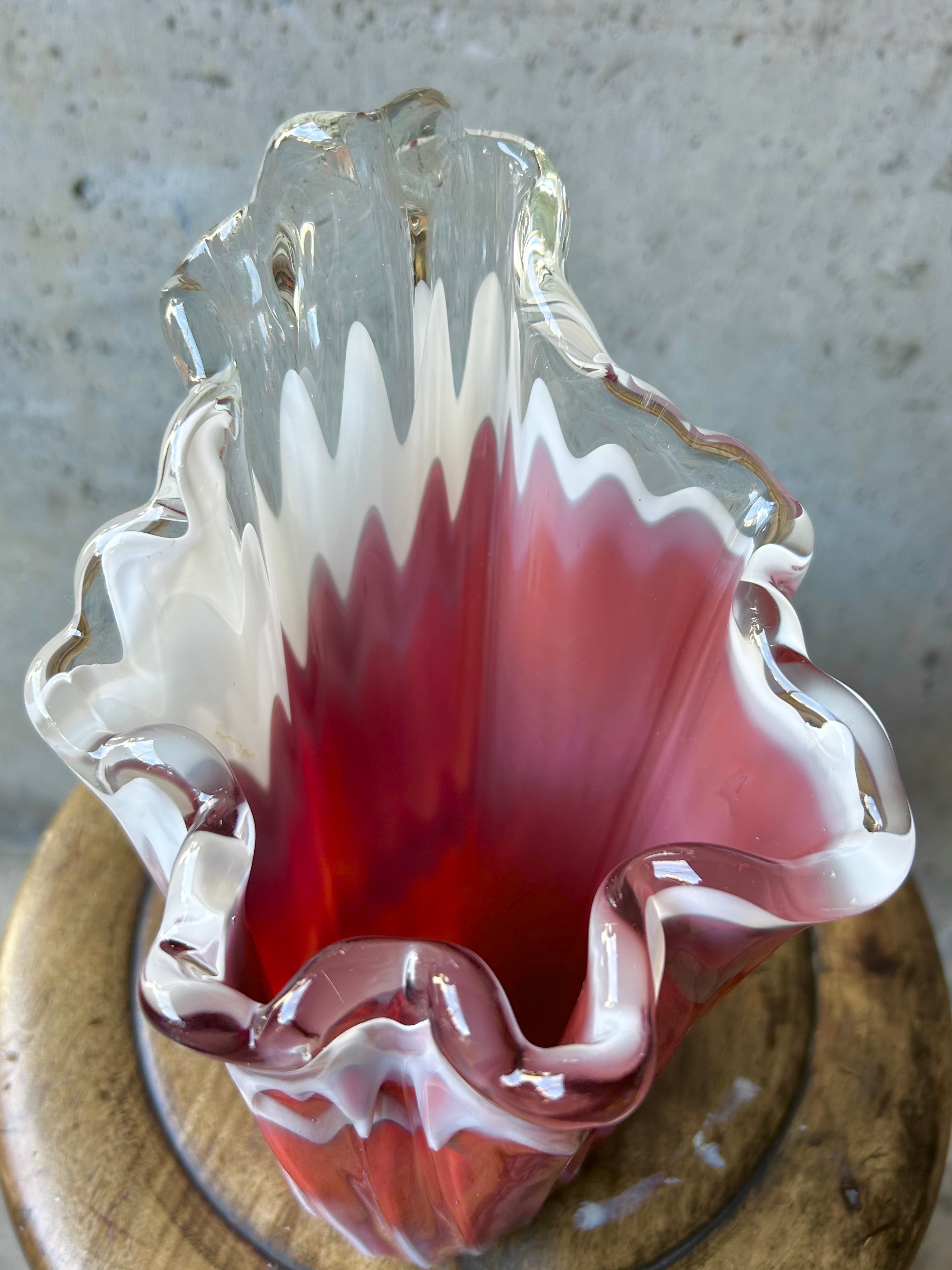 昭和レトロ 硝子の花瓶 波型クラフトガラス フラワーベース