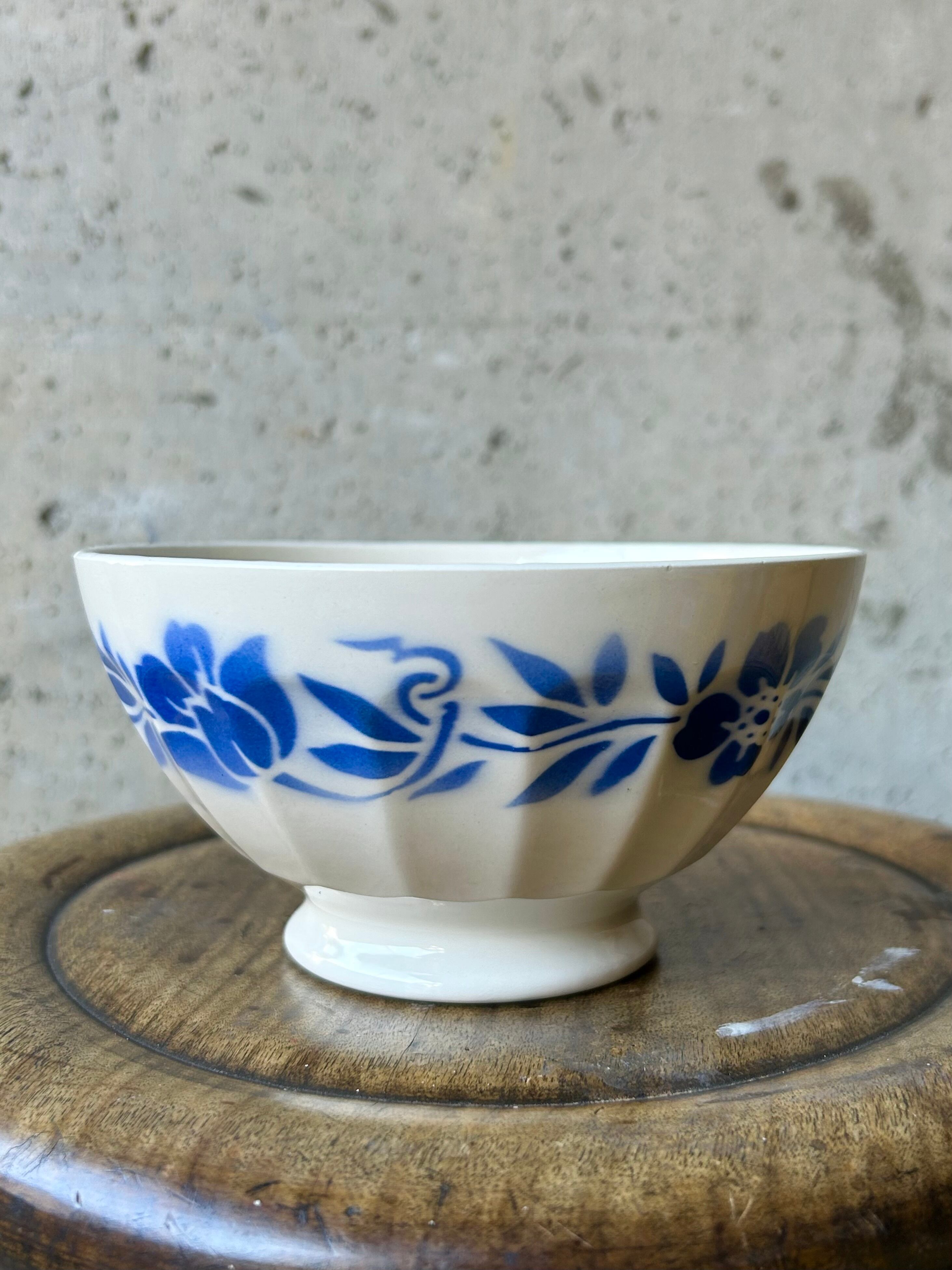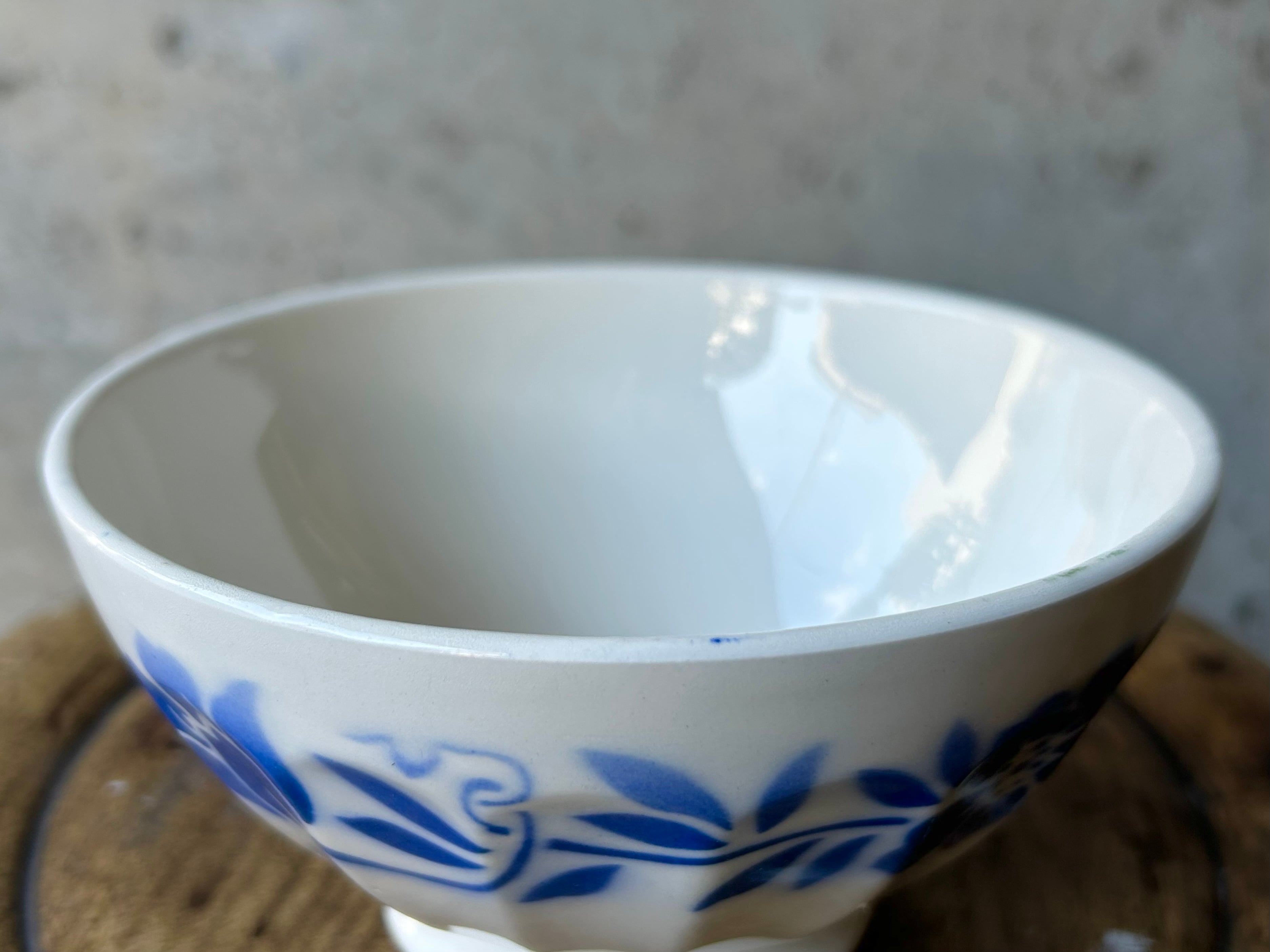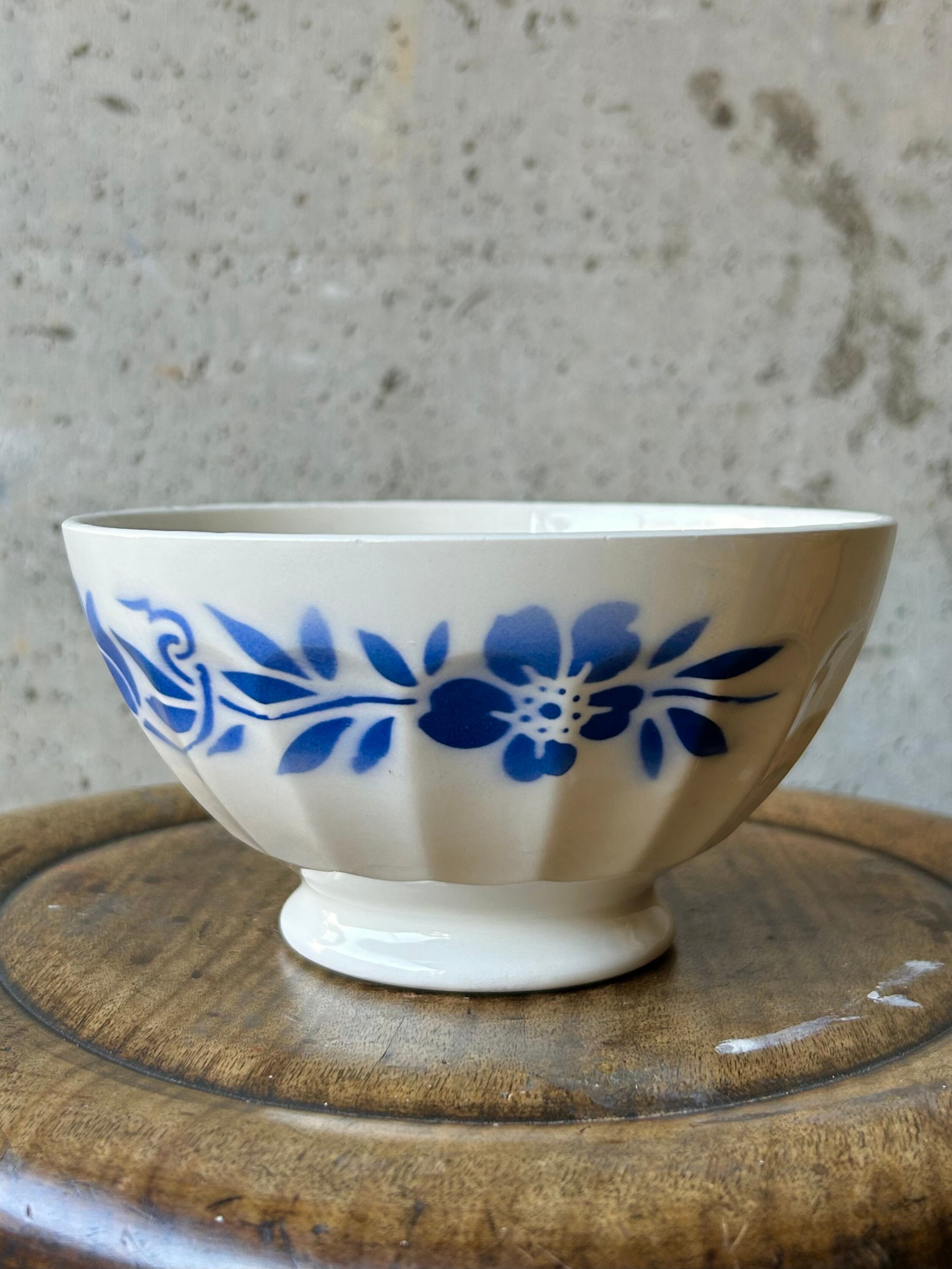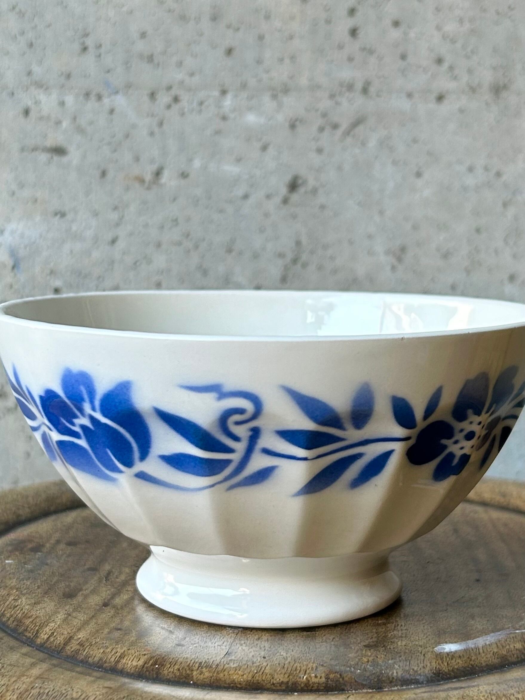 ステンシルプリントの青いお花模様がとても素敵なカフェオレボウル。
