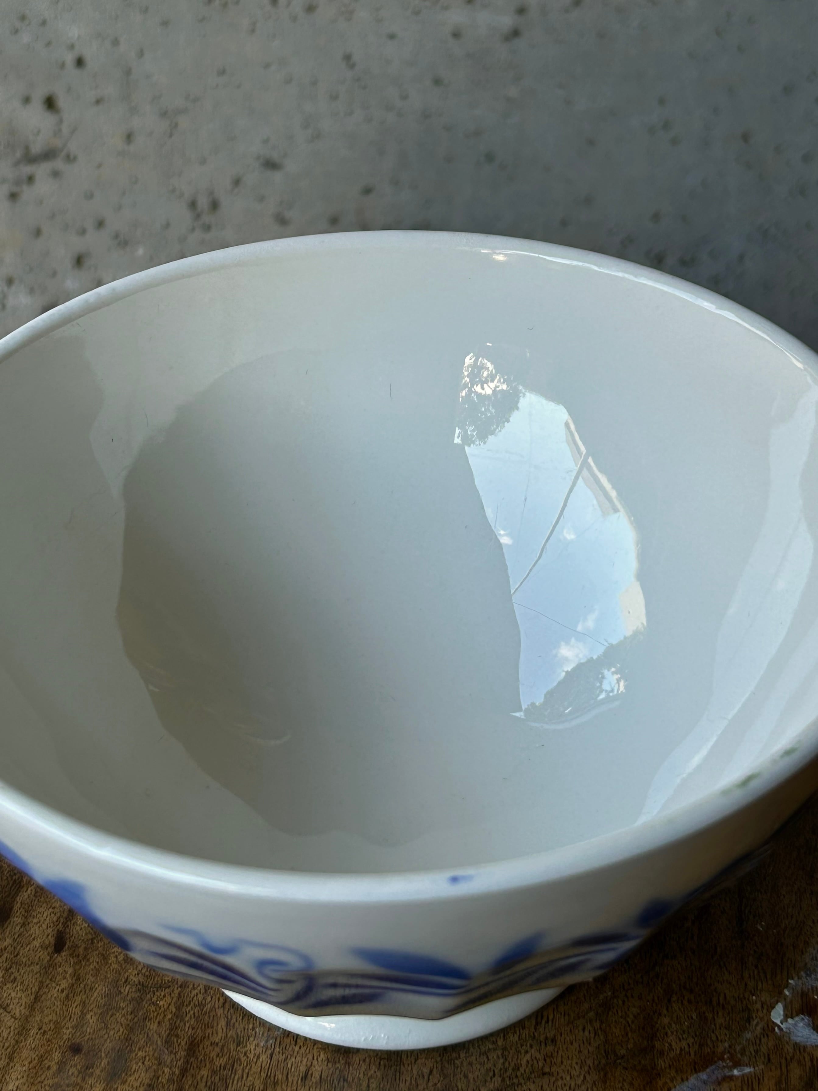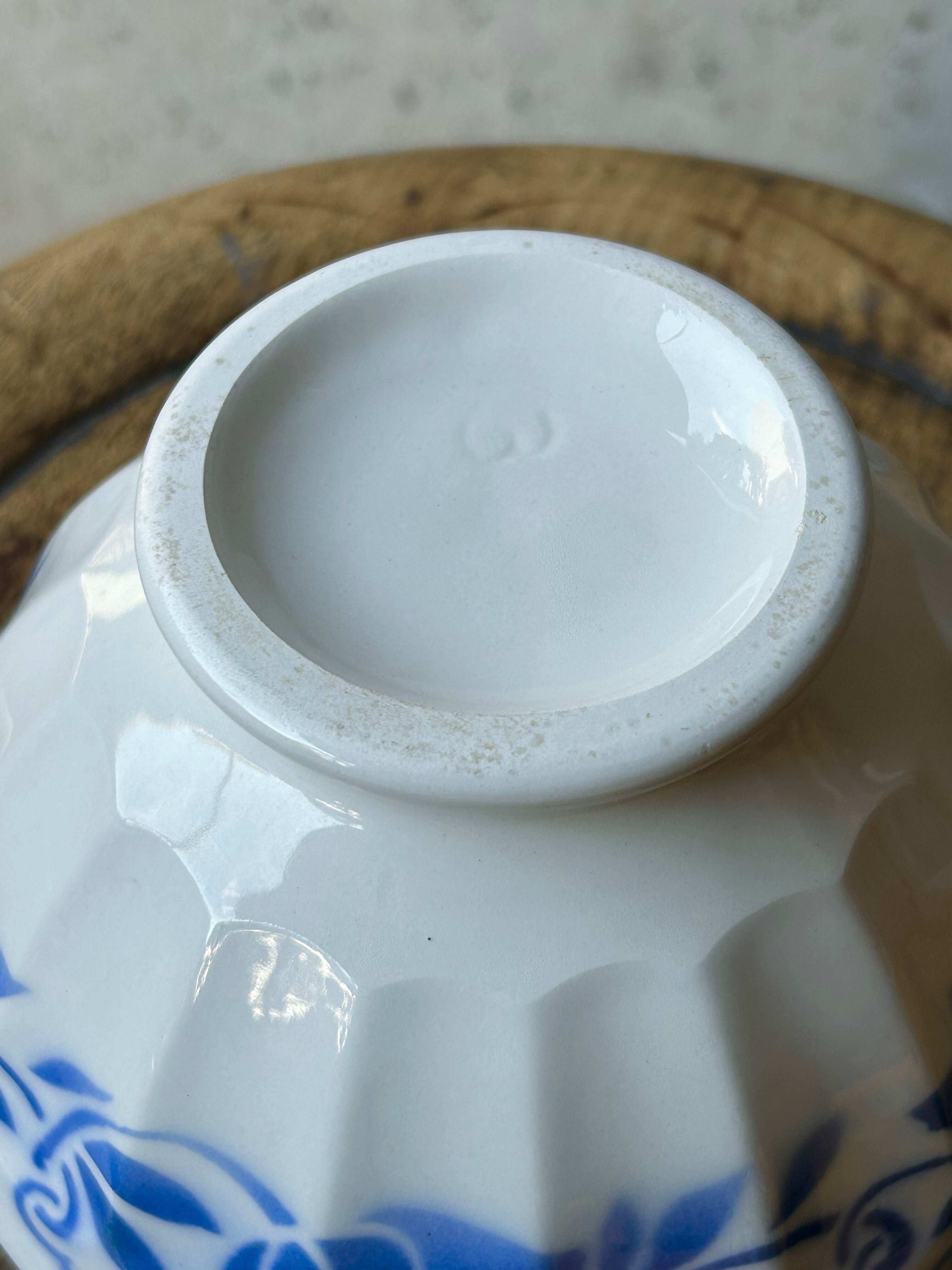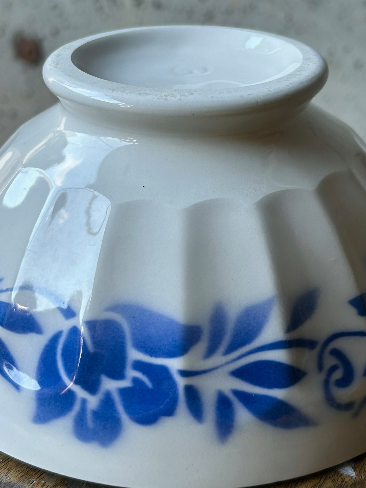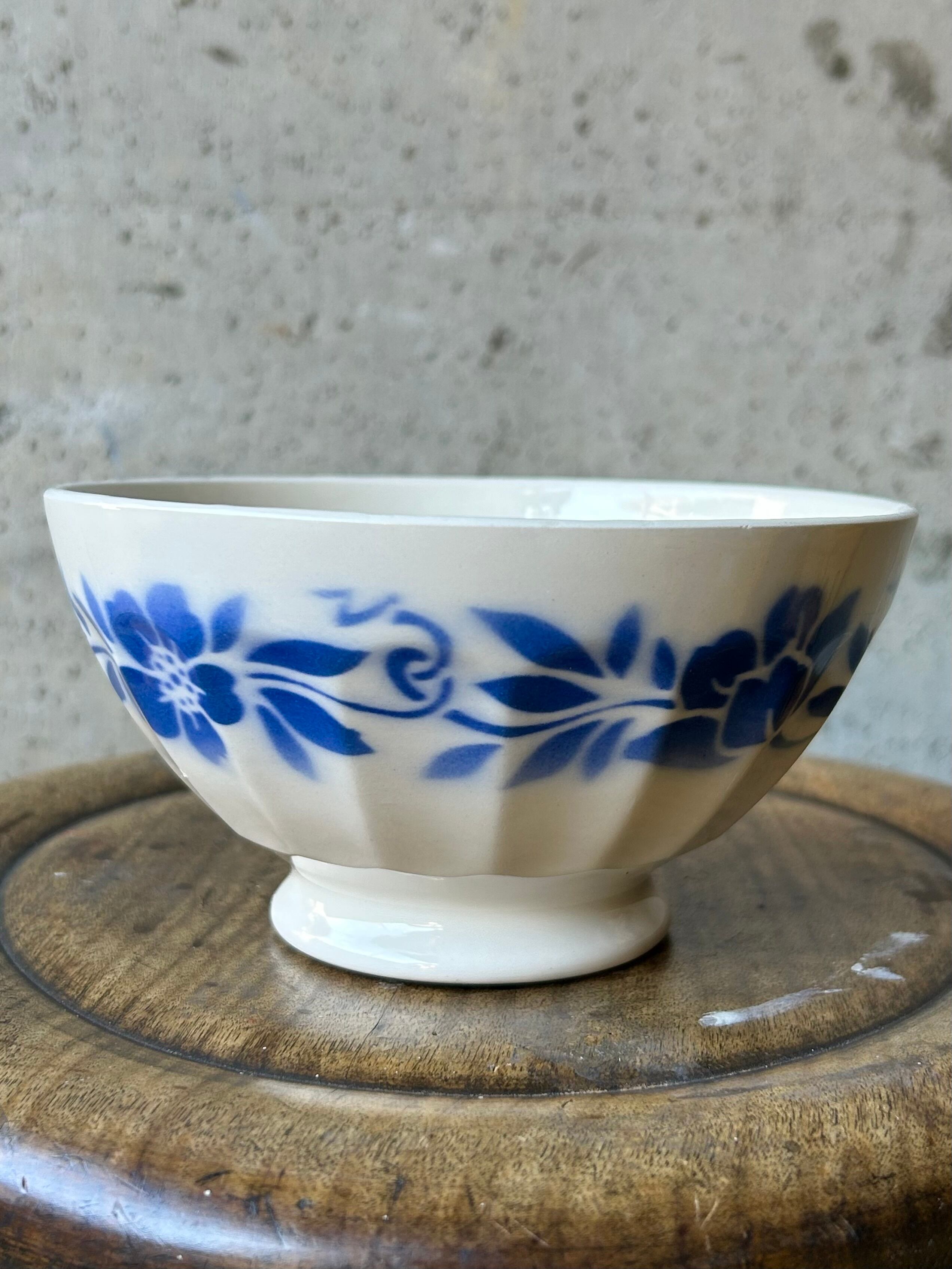 ステンシルプリントの青いお花模様がとても素敵なカフェオレボウル。