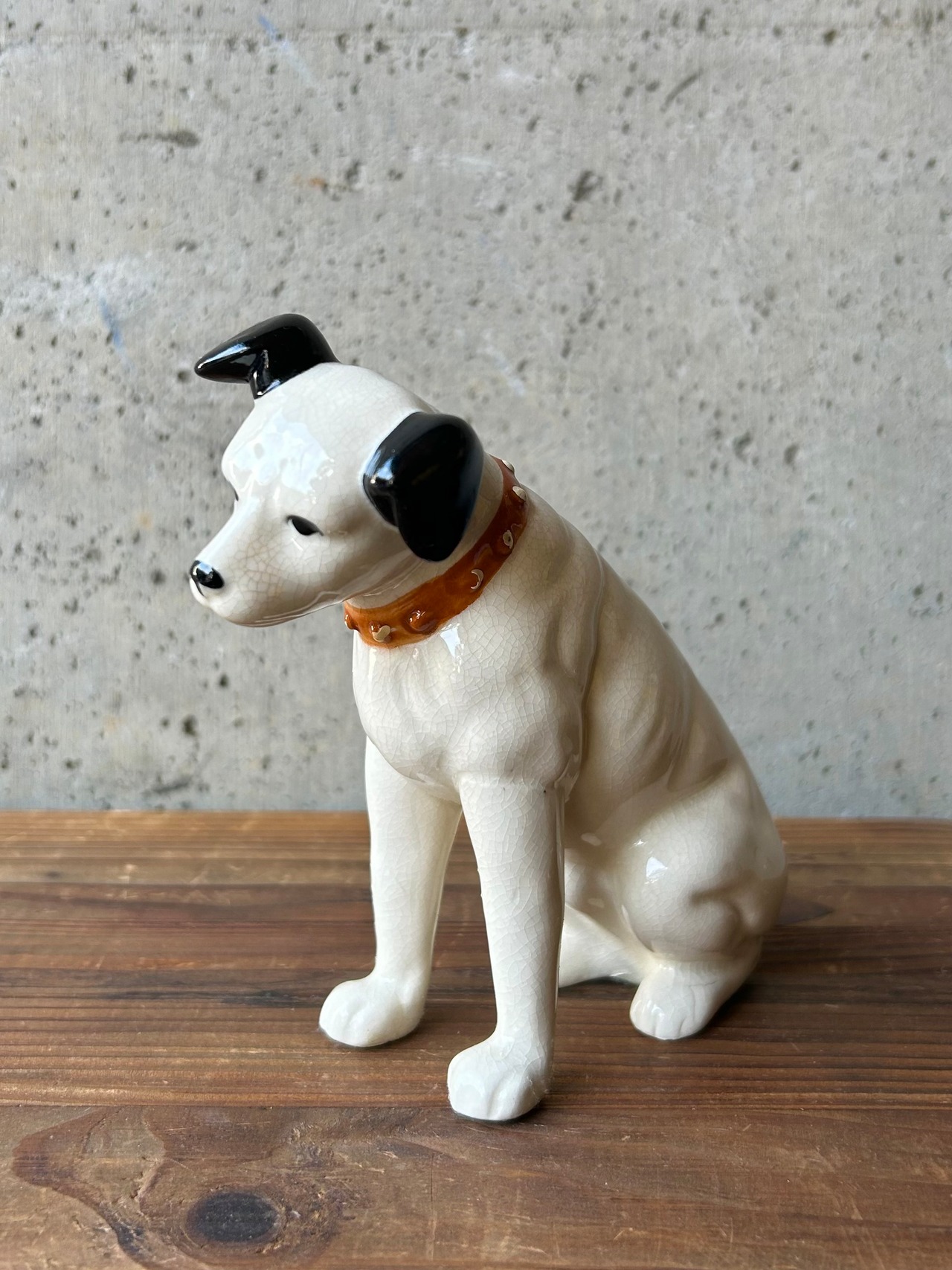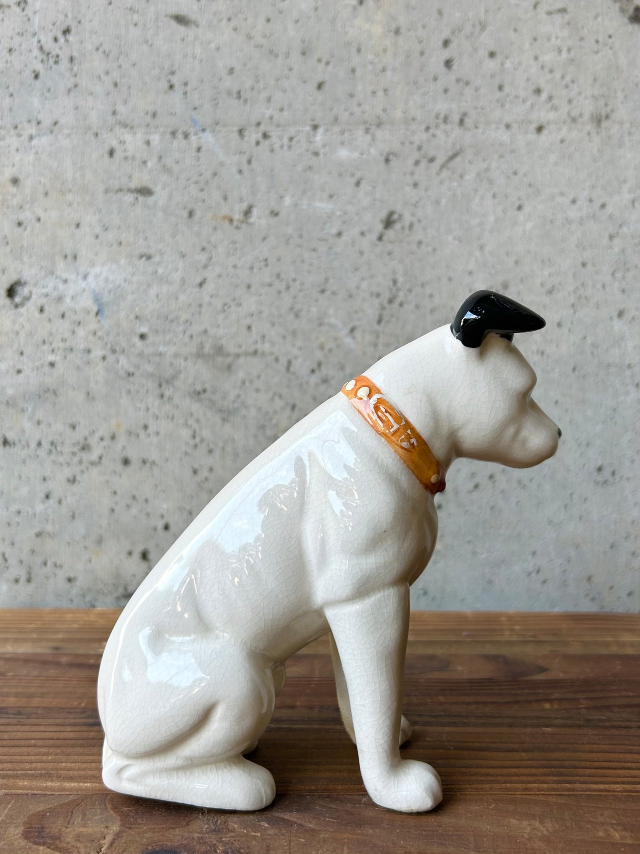蓄音器に耳を傾けている姿でお馴染みの ニッパーくん。陶器製の置物です。