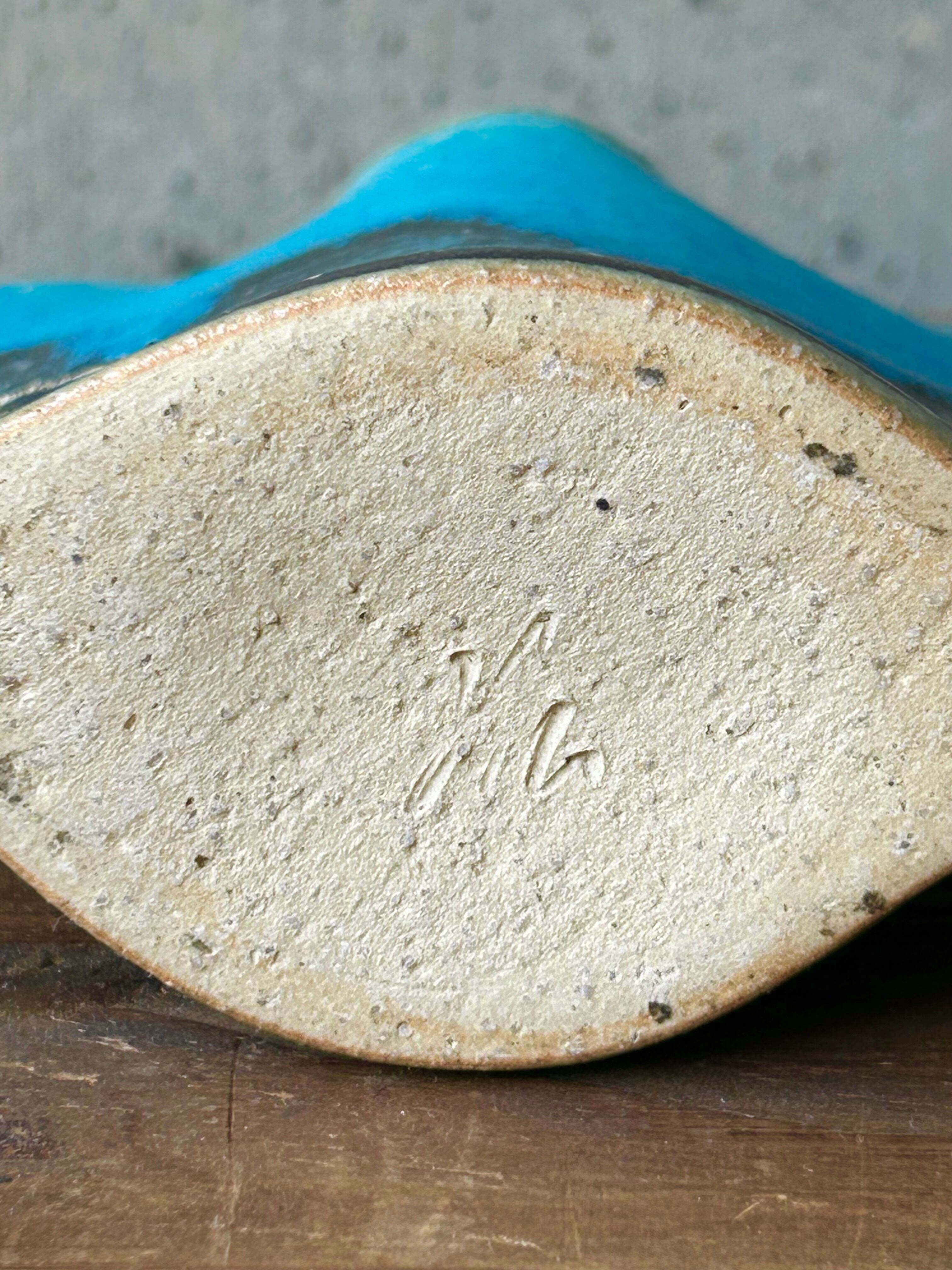 焼き物 花器 陶器 ターコイズブルー フラワーベイス 花瓶
