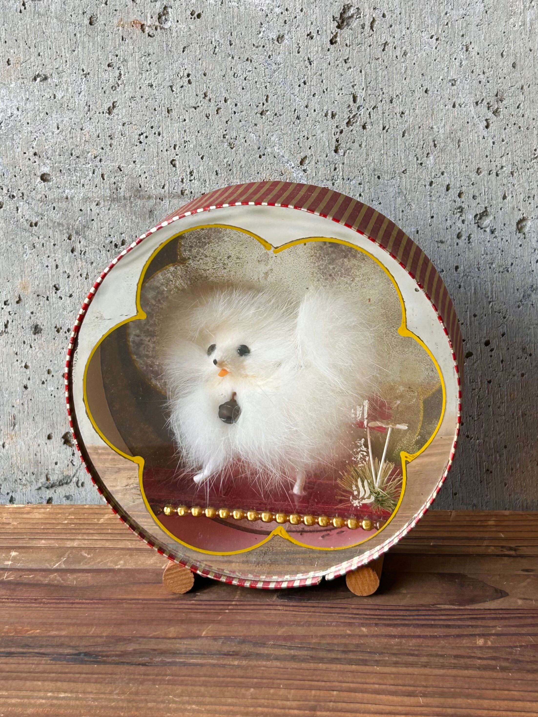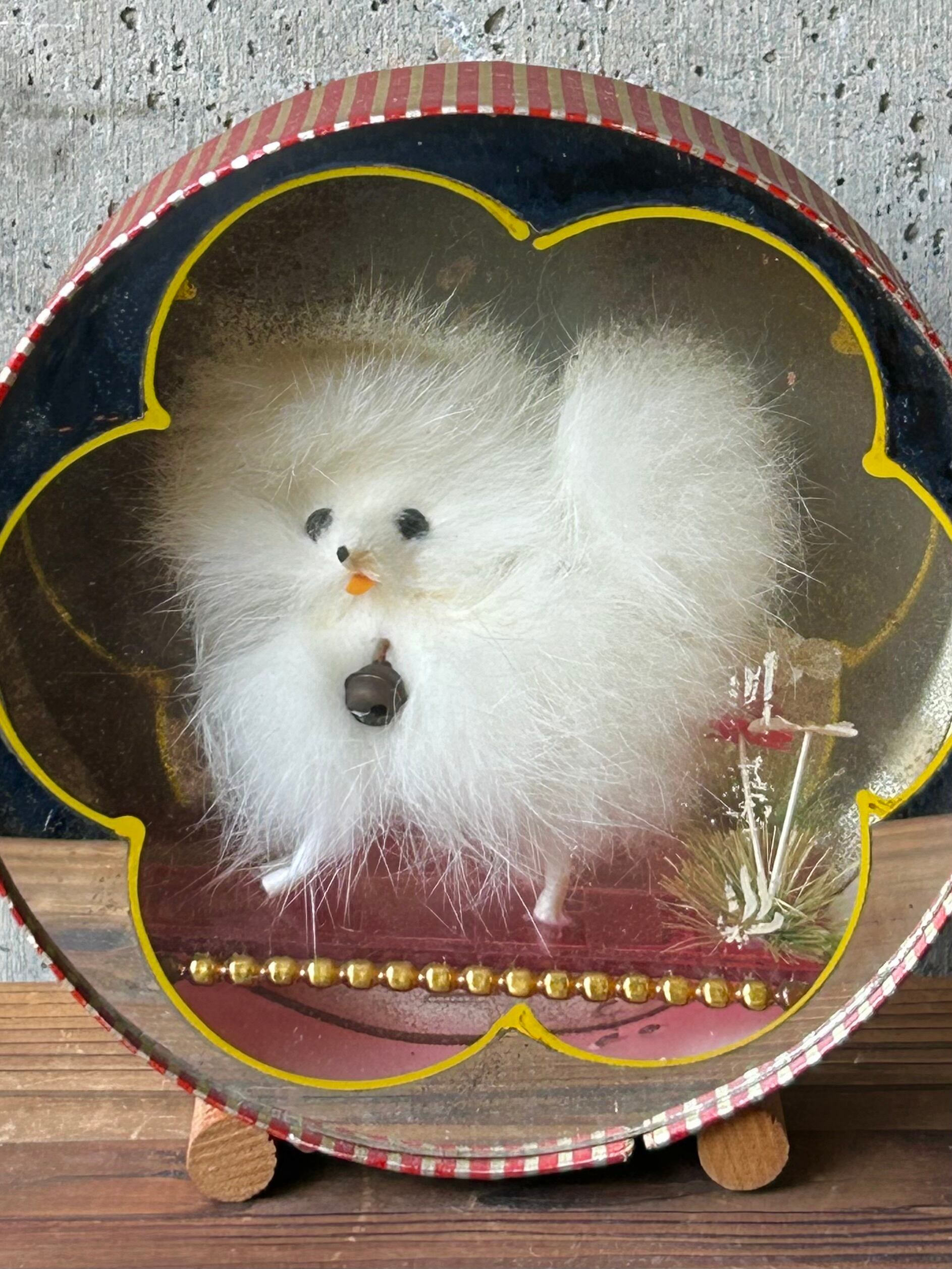昭和レトロ 丸型ガラスケース スピッツ 置物 土産物 ファンシー雑貨